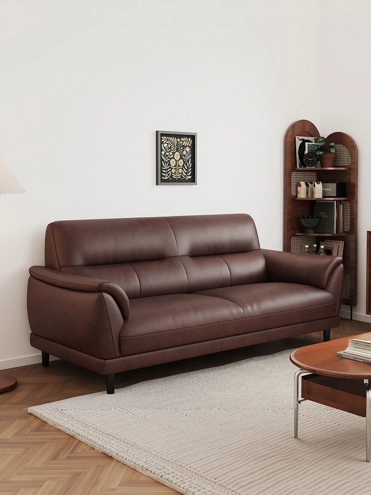 見葉本革ソファ イタリアンミニマリズム リビングルーム用 ヴィンテージ風 小型スペースにぴったり 上質なトップグレイン牛革使用 直線的なデザイン 三人掛け皮革ソファ