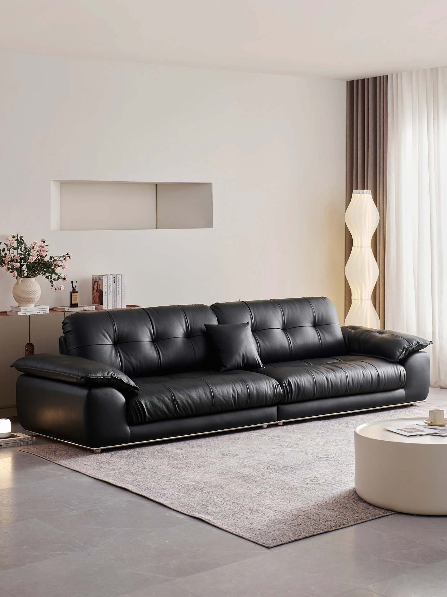 オパイ直排クラウド本革スターリーホワイトソファ、小型住宅向け、黒色トップグレイン牛革、イタリアンヴィンテージスタイル、広々とした座面と深いクッションで快適なひとときを。