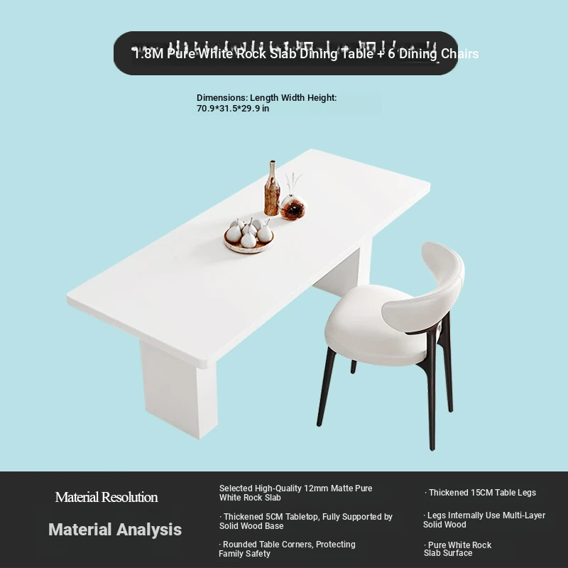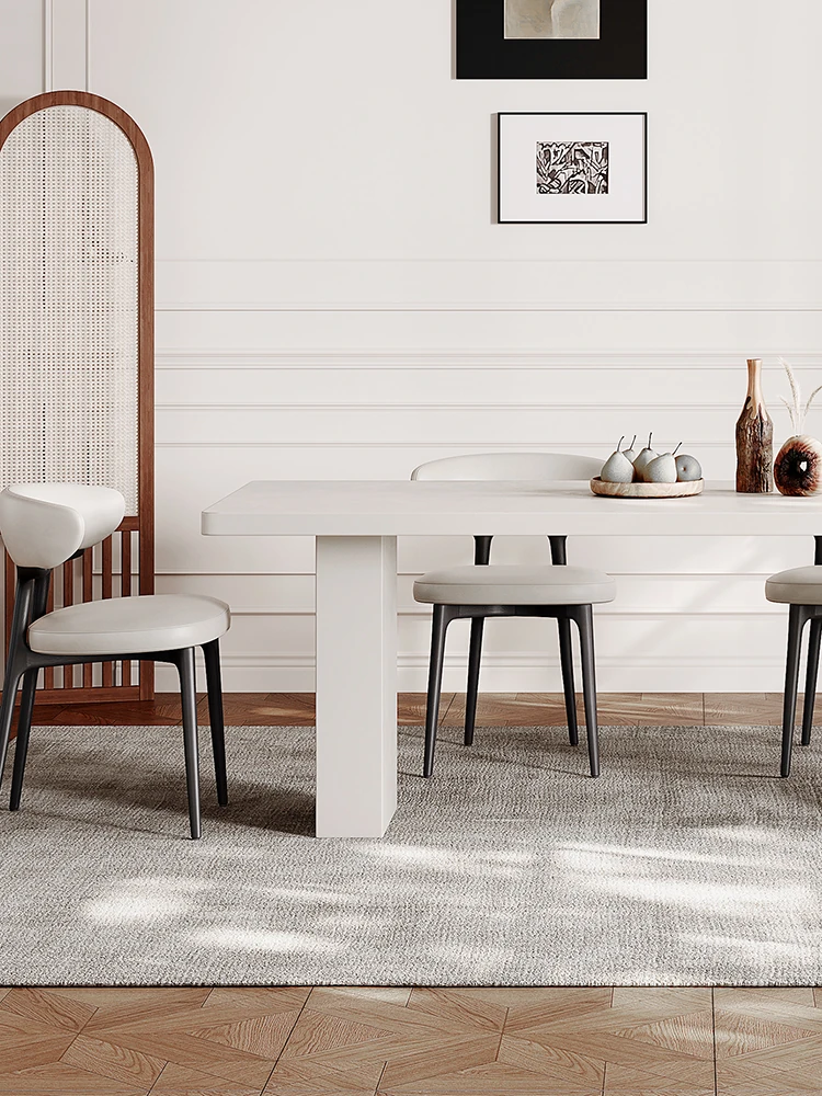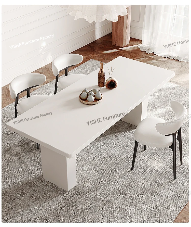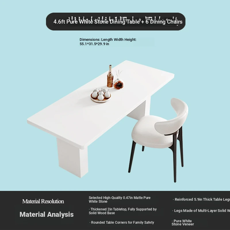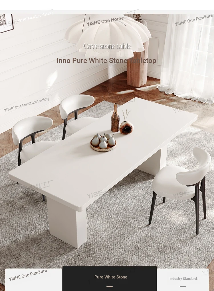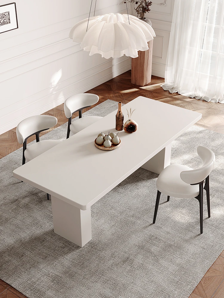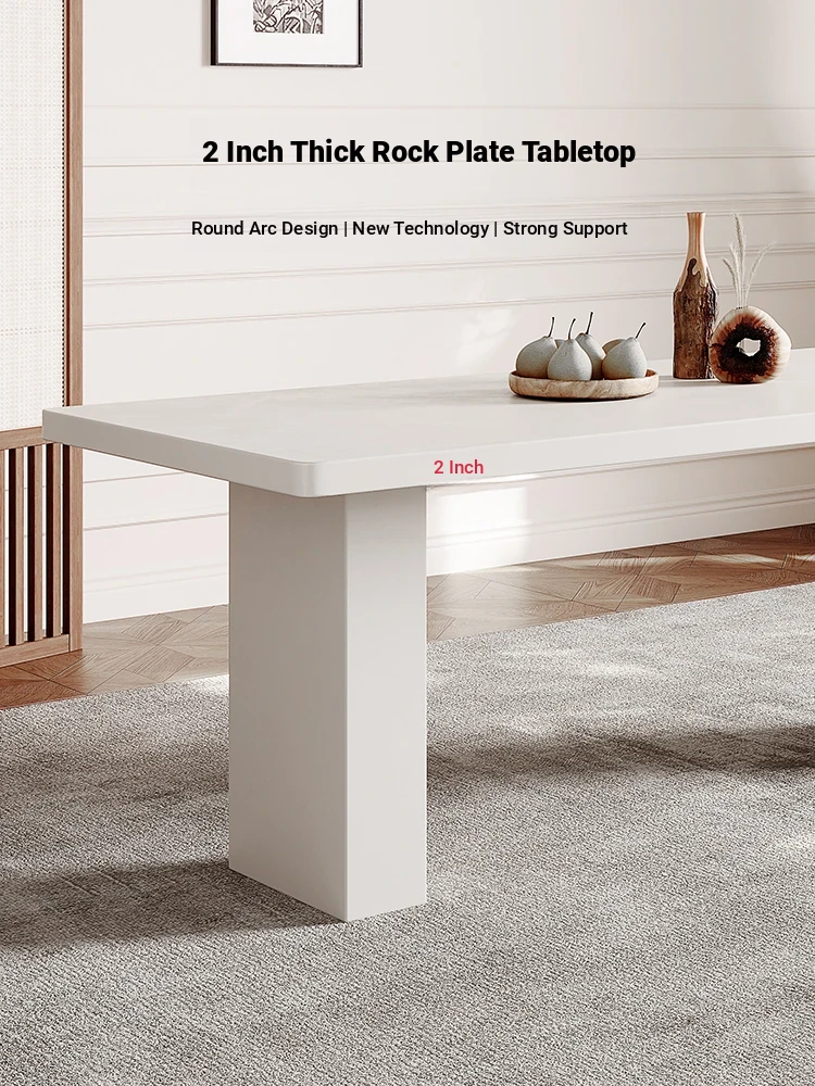 2025 New Thickened Pure White Rock Slab Dining Table - Modern Minimalist Italian Style Rectangular Table for Home Use, Creamy Aesthetic