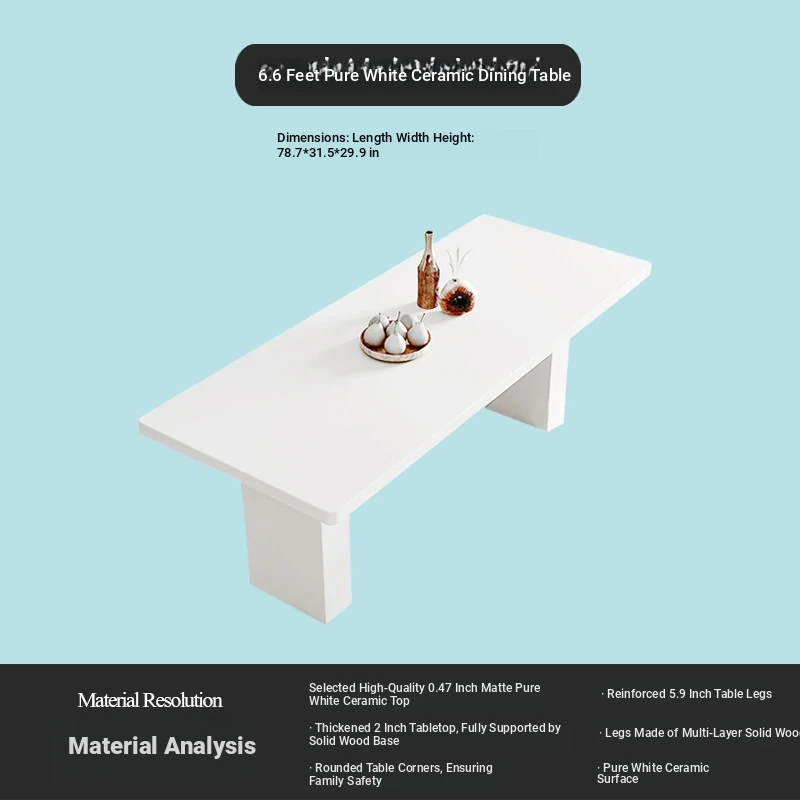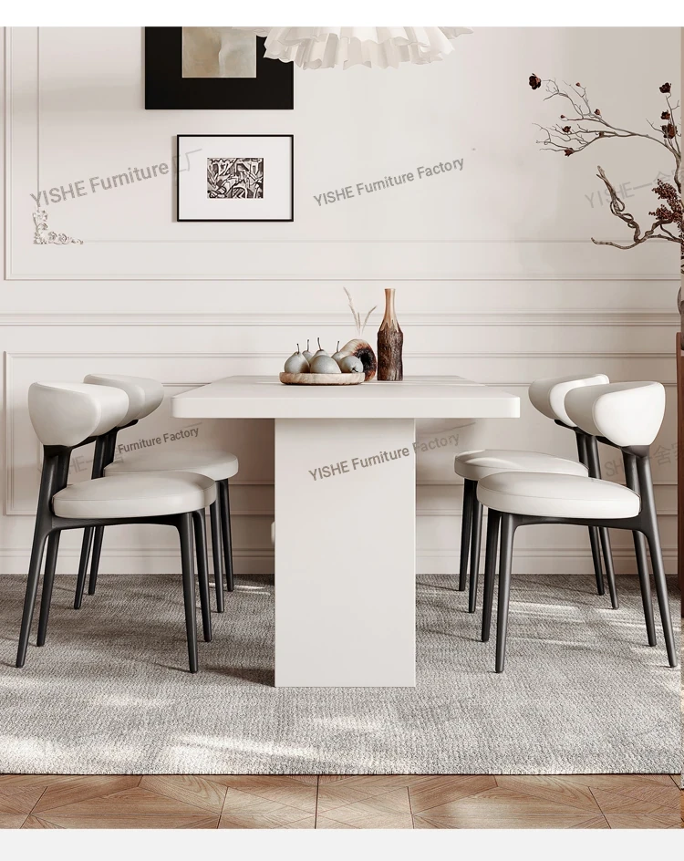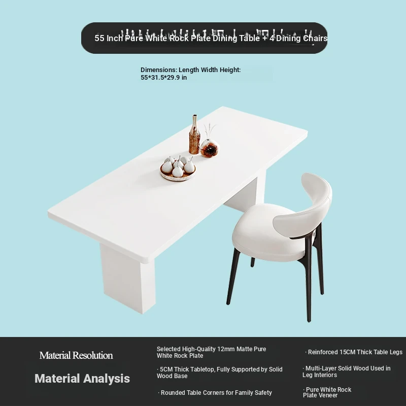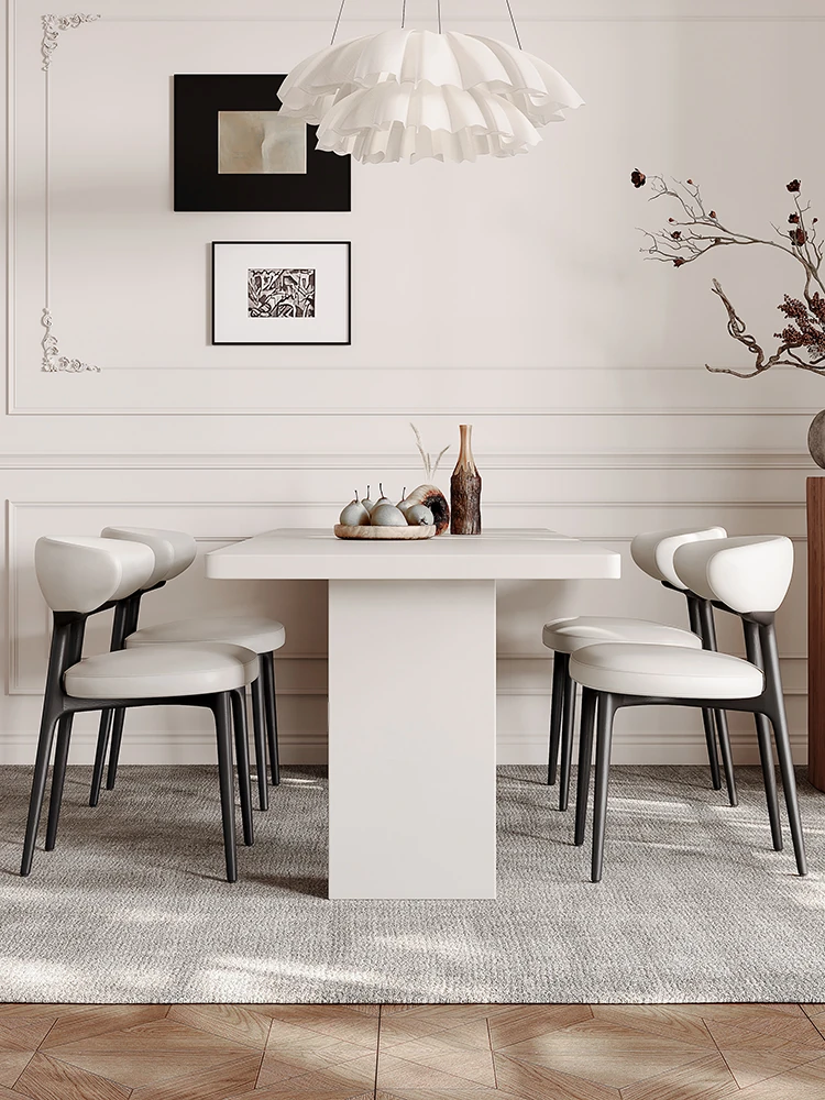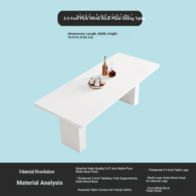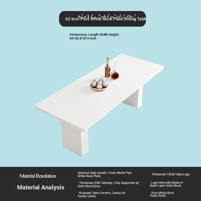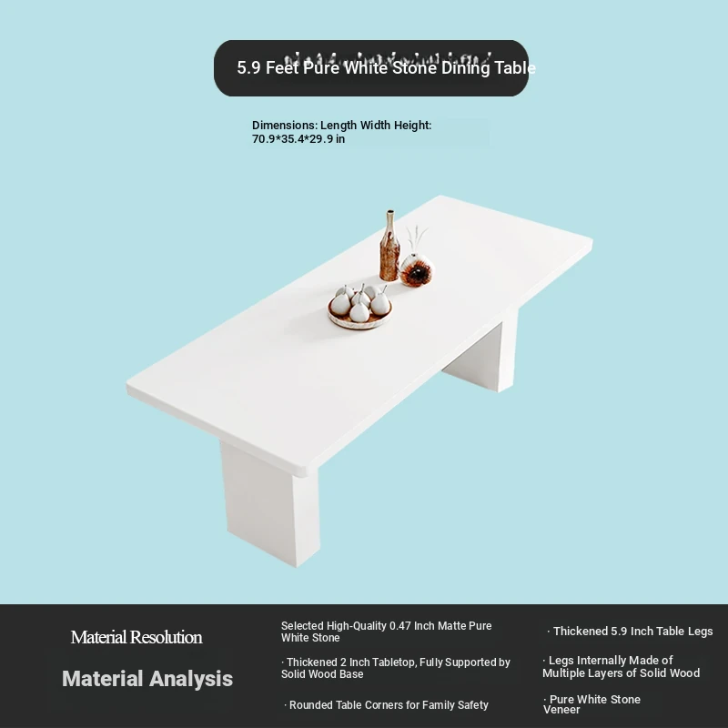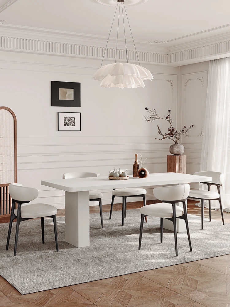 2025 New Thickened Pure White Rock Slab Dining Table - Modern Minimalist Italian Style Rectangular Table for Home Use, Creamy Aesthetic