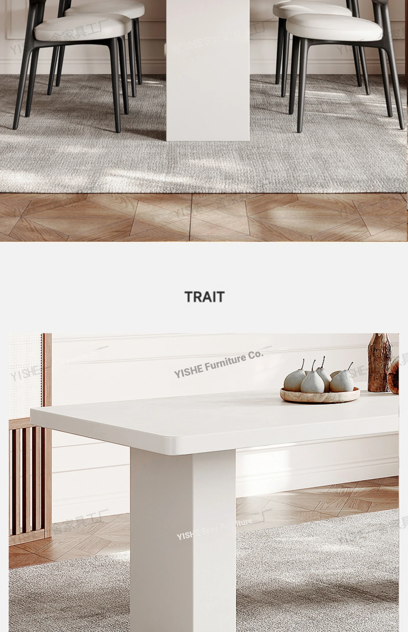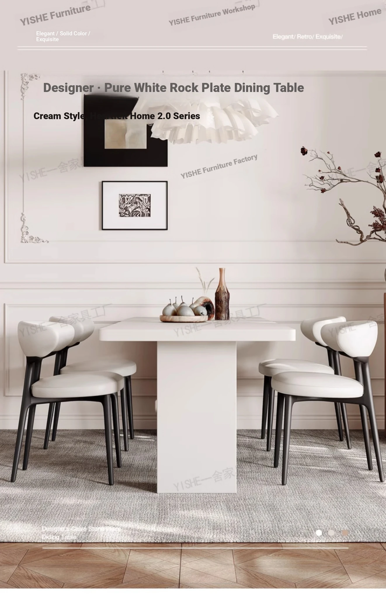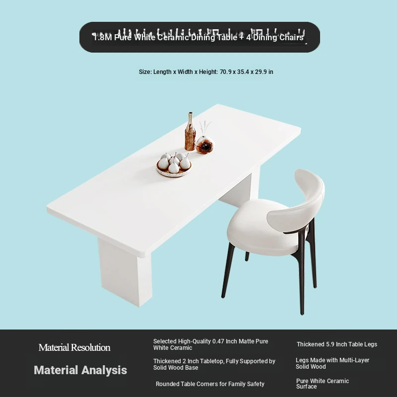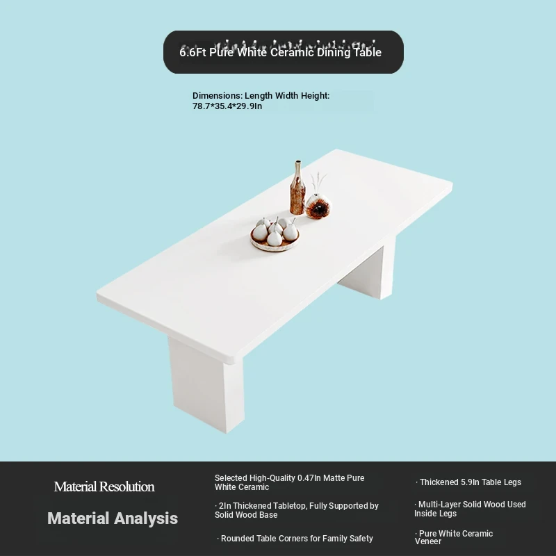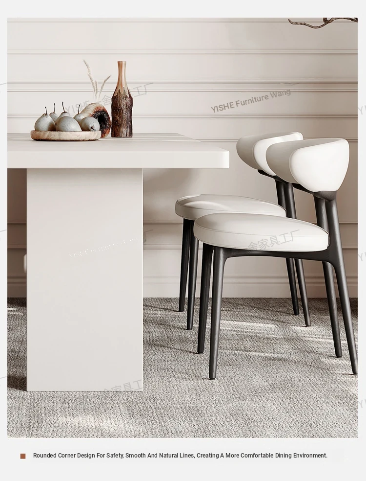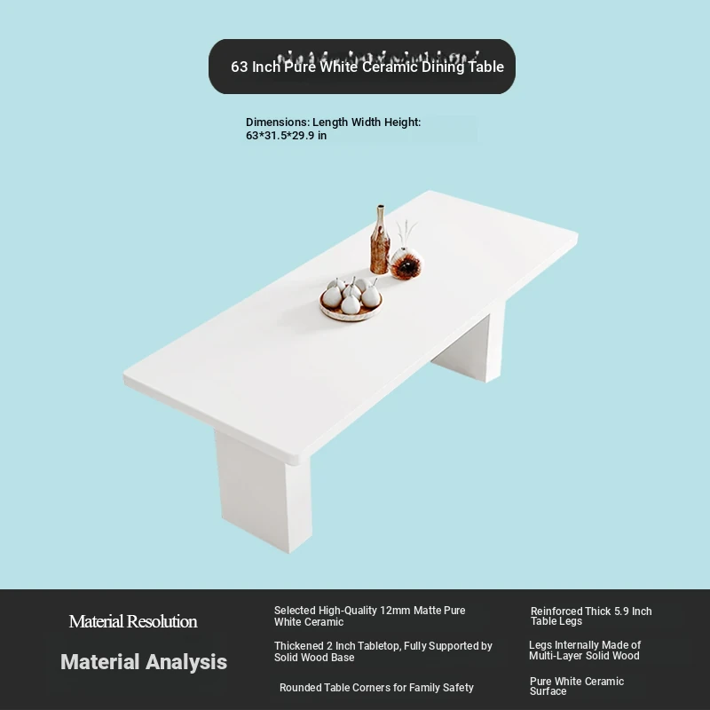 2025 New Thickened Pure White Rock Slab Dining Table - Modern Minimalist Italian Style Rectangular Table for Home Use, Creamy Aesthetic