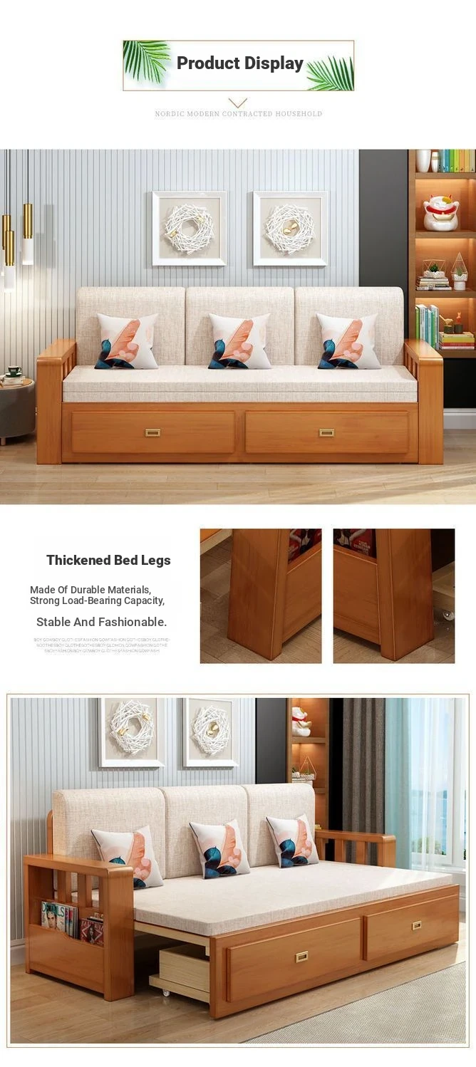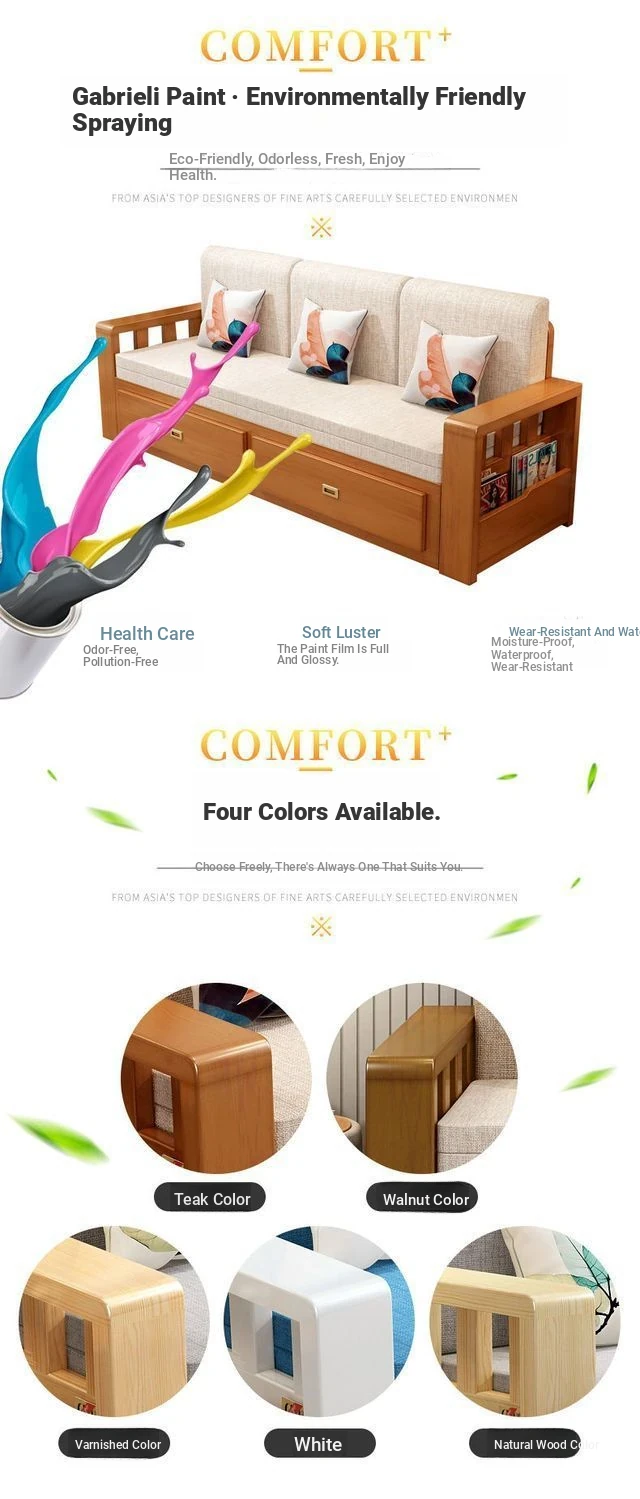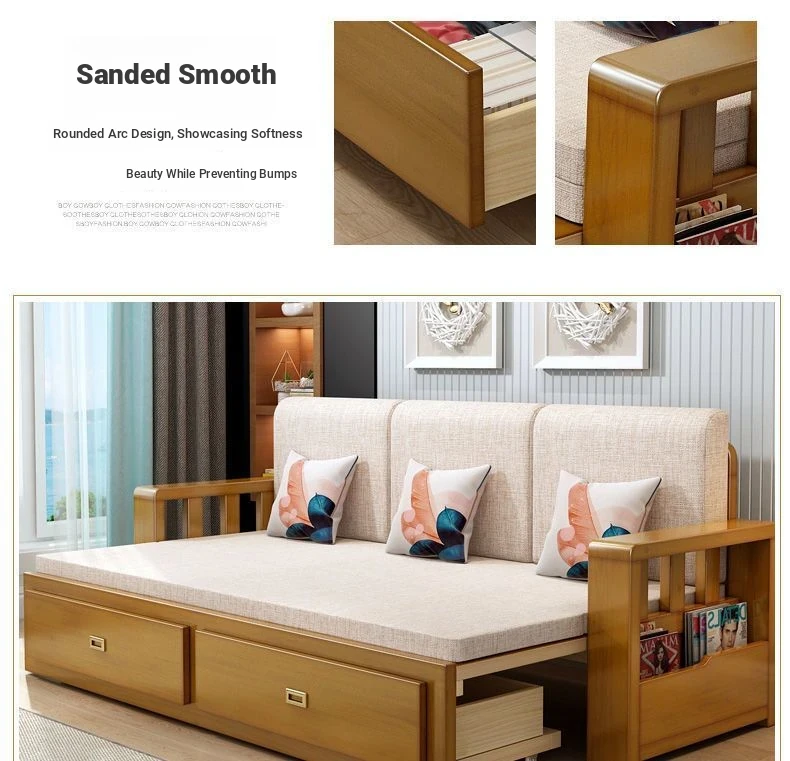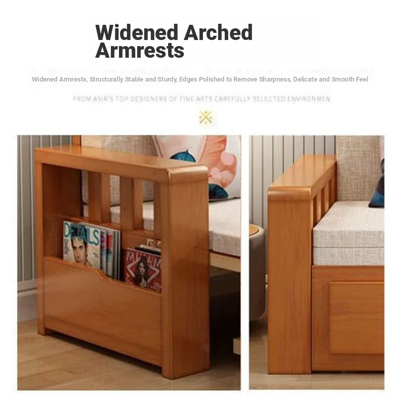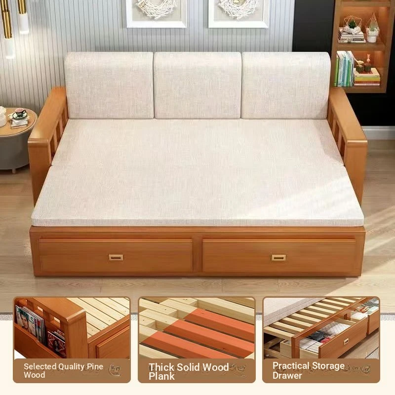 Foldable Solid Wood Sofa Bed with Storage – Multi-Functional, Space-Saving Design for Small Living Rooms, Free Shipping to Hong Kong and Macau