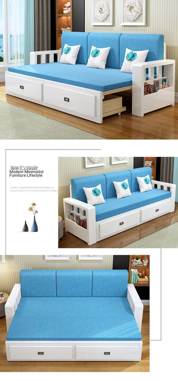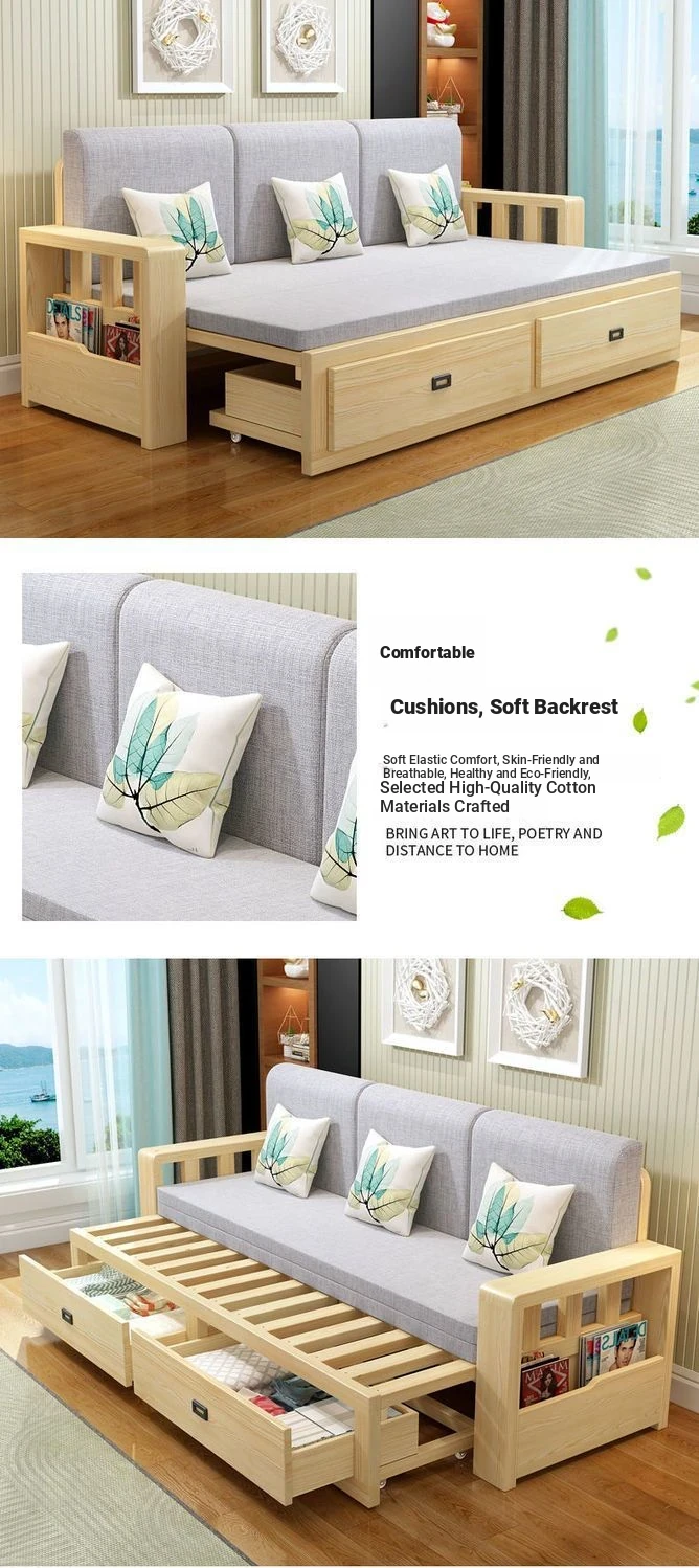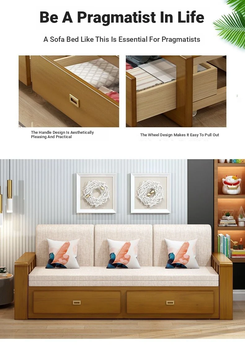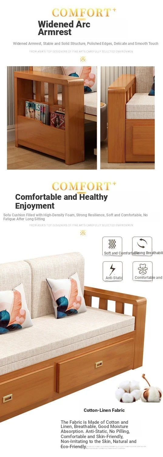Foldable Solid Wood Sofa Bed with Storage – Multi-Functional, Space-Saving Design for Small Living Rooms, Free Shipping to Hong Kong and Macau
