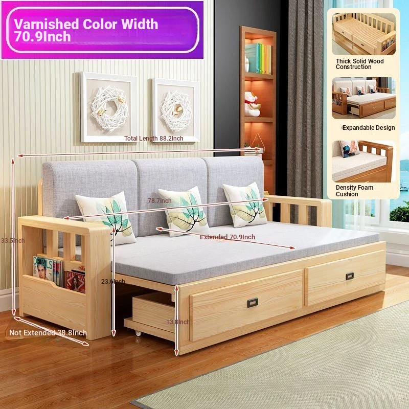 1.8x 88.19 in [Retractable + Multifunctional] Free Installation/Varnish [Solid Wood Sofa Bed] + Removable Mattress + Multiple Gift