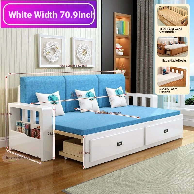 1.8x 88.19 in [Retractable + Multifunctional] Free Installation/White Paint [Solid Wood Sofa Bed] + Removable Mattress + Multiple Gift