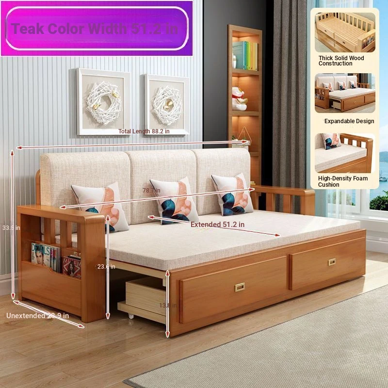 51.18inX88.19in [Retractable + Multifunctional] Free Installation/Teak [Solid Wood Sofa Bed] + Removable Mattress + Multiple Gift