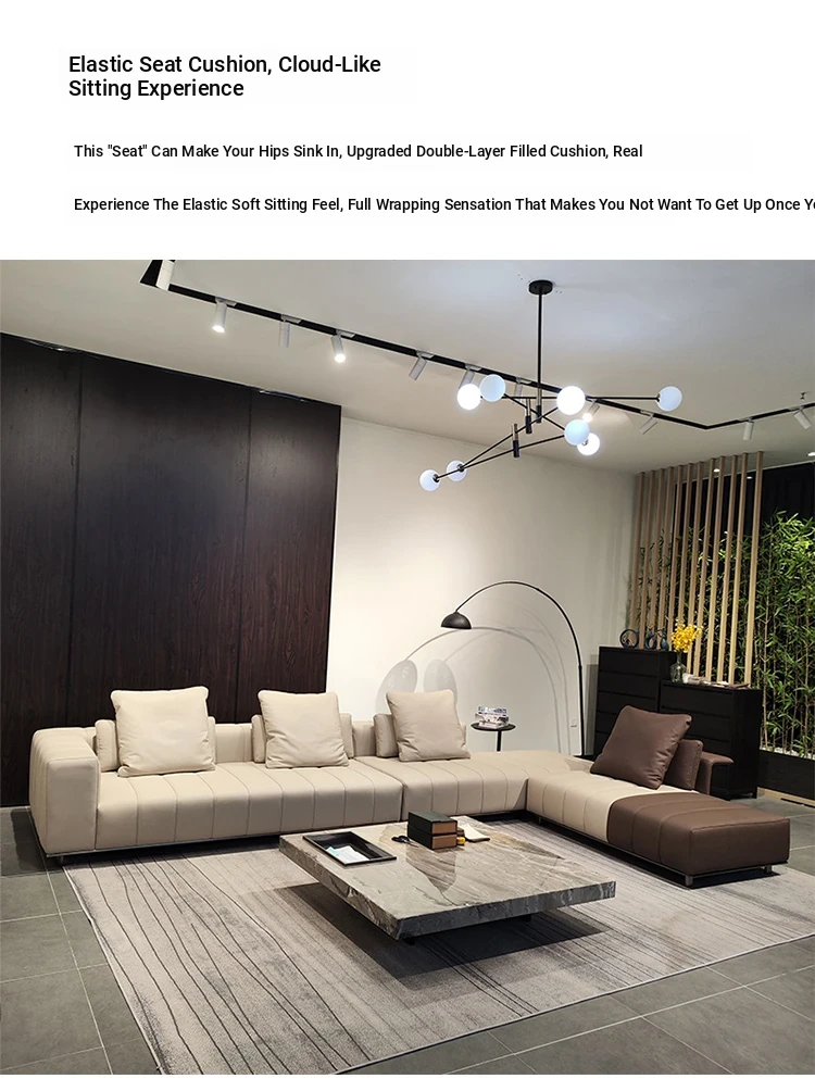 Genuine Leather Piano Key Sofa - Italian Minimalist Milo Ti Design for Spacious Luxury Villas and Large Apartments