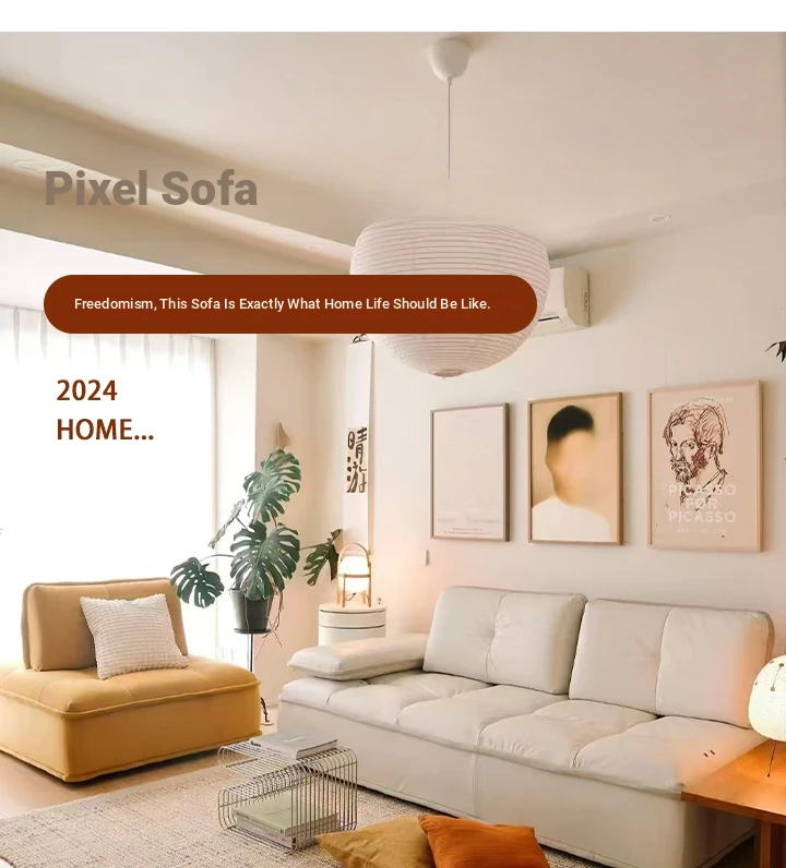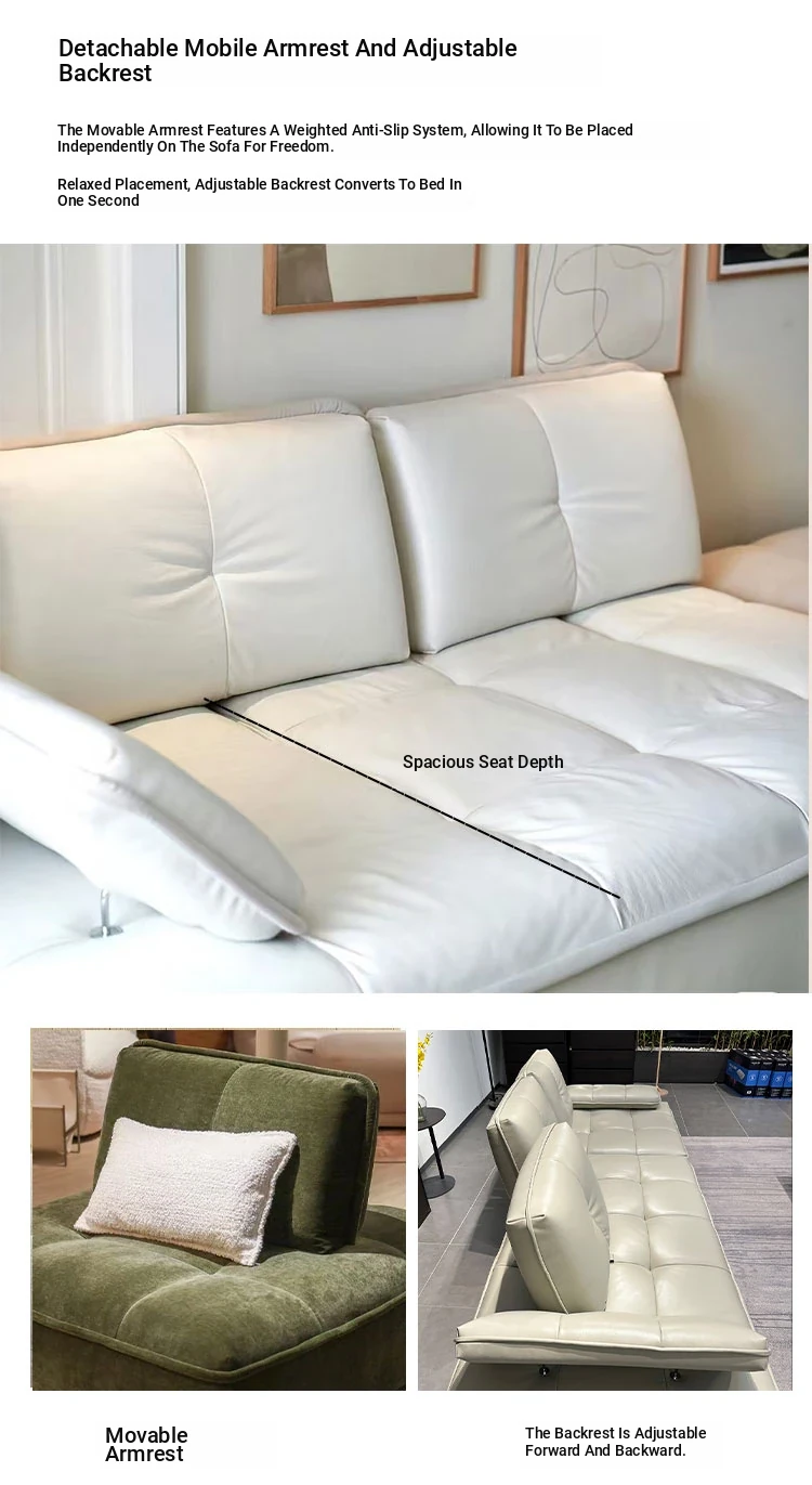 Italian C294 Pixel Sofa with Removable Backrest - Luxurious Cream Real Leather, Spacious Deep Seating, Versatile Modular Design for Ultimate Comfort and Style