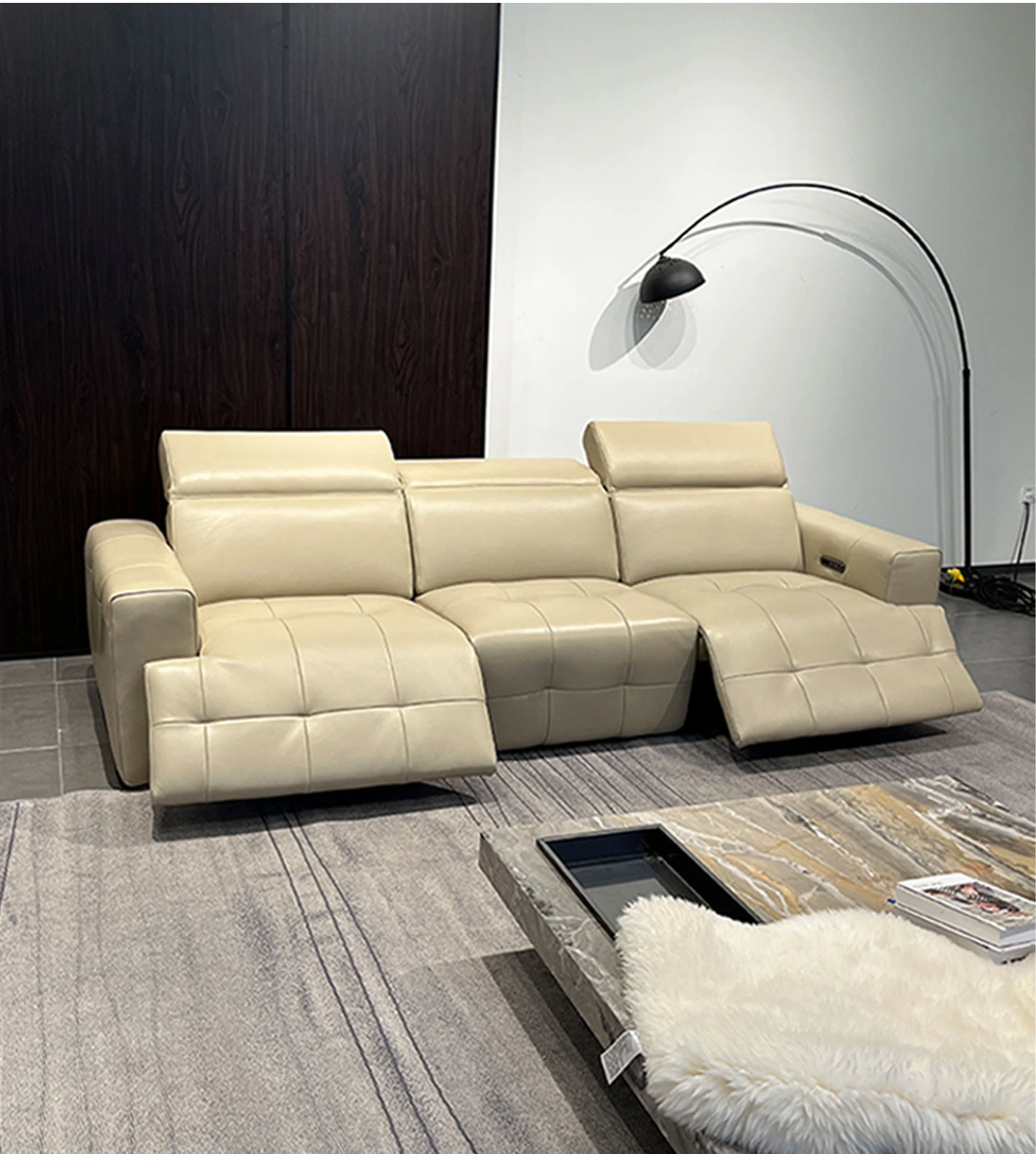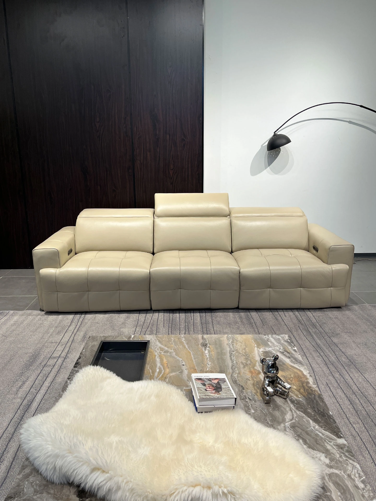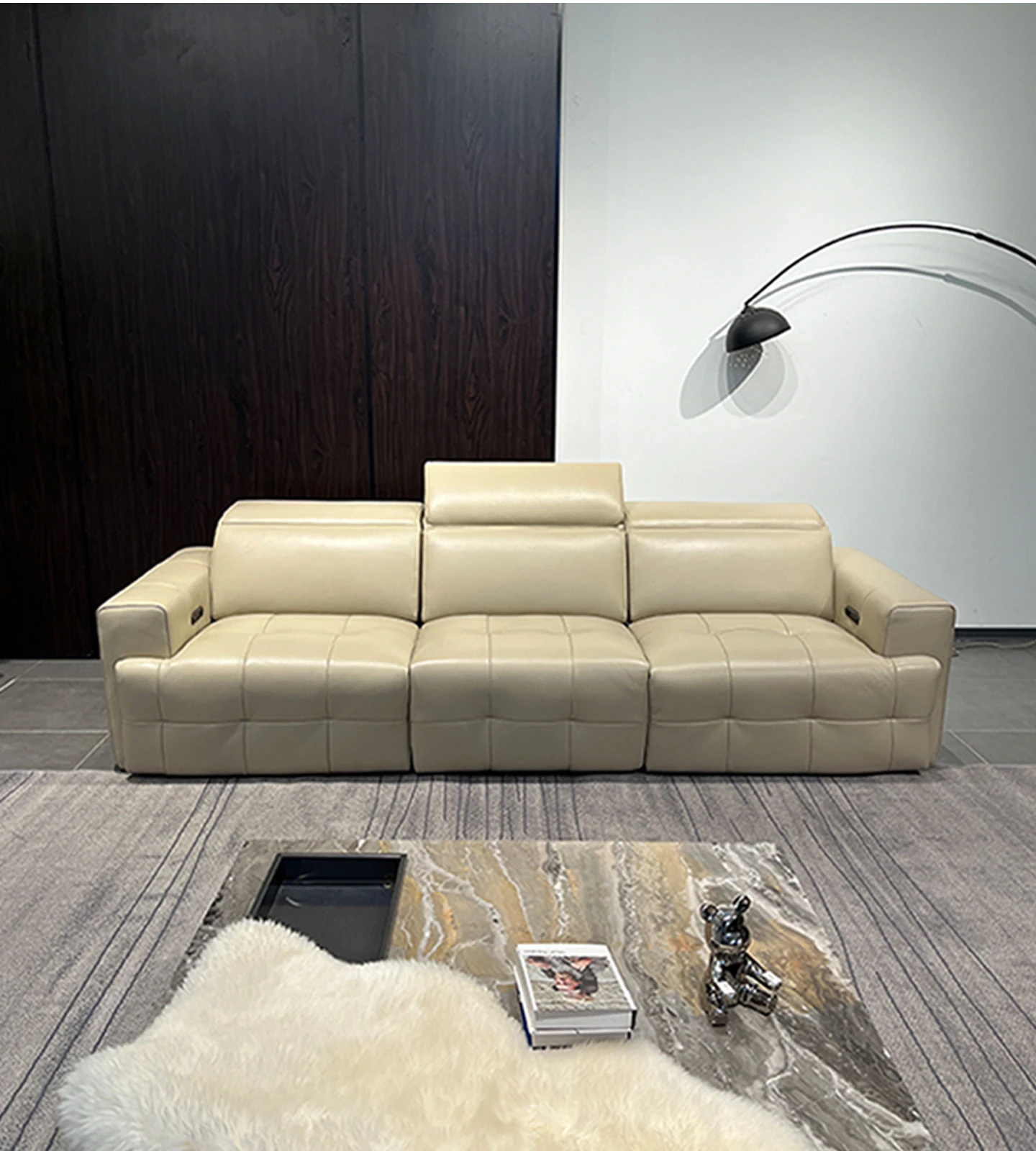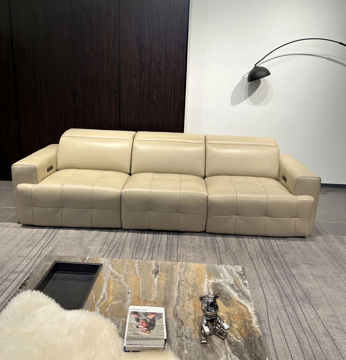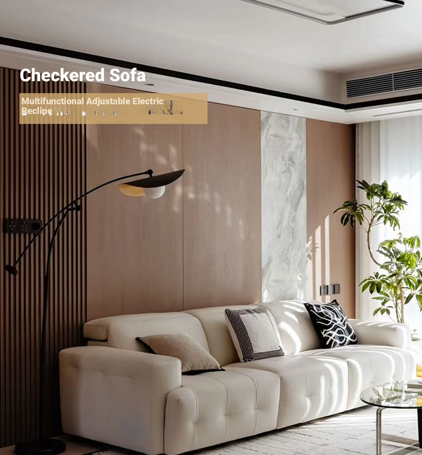 Italian Minimalist Electric Adjustable Sofa - Genuine Leather Checkered Design for Small to Medium Spaces - Model C157