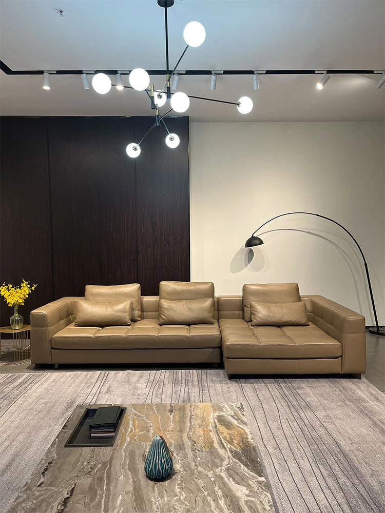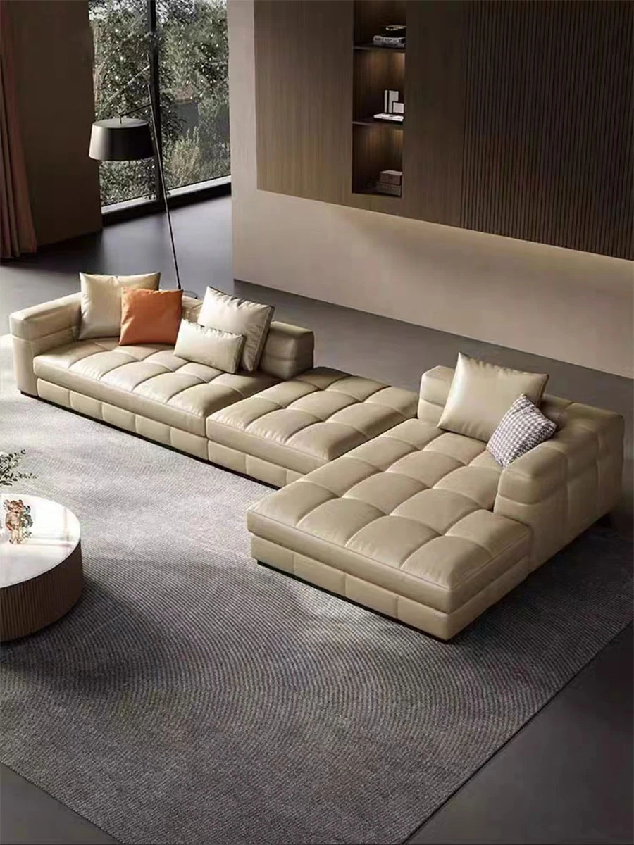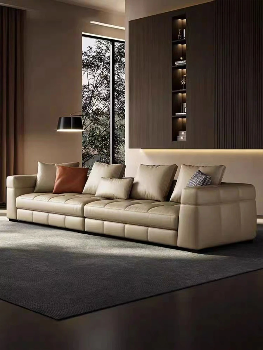 Italian Minimalist Genuine Leather Blazer Sofa - Luxurious and Stylish Living Room Furniture for Spacious Villas and Large Apartments