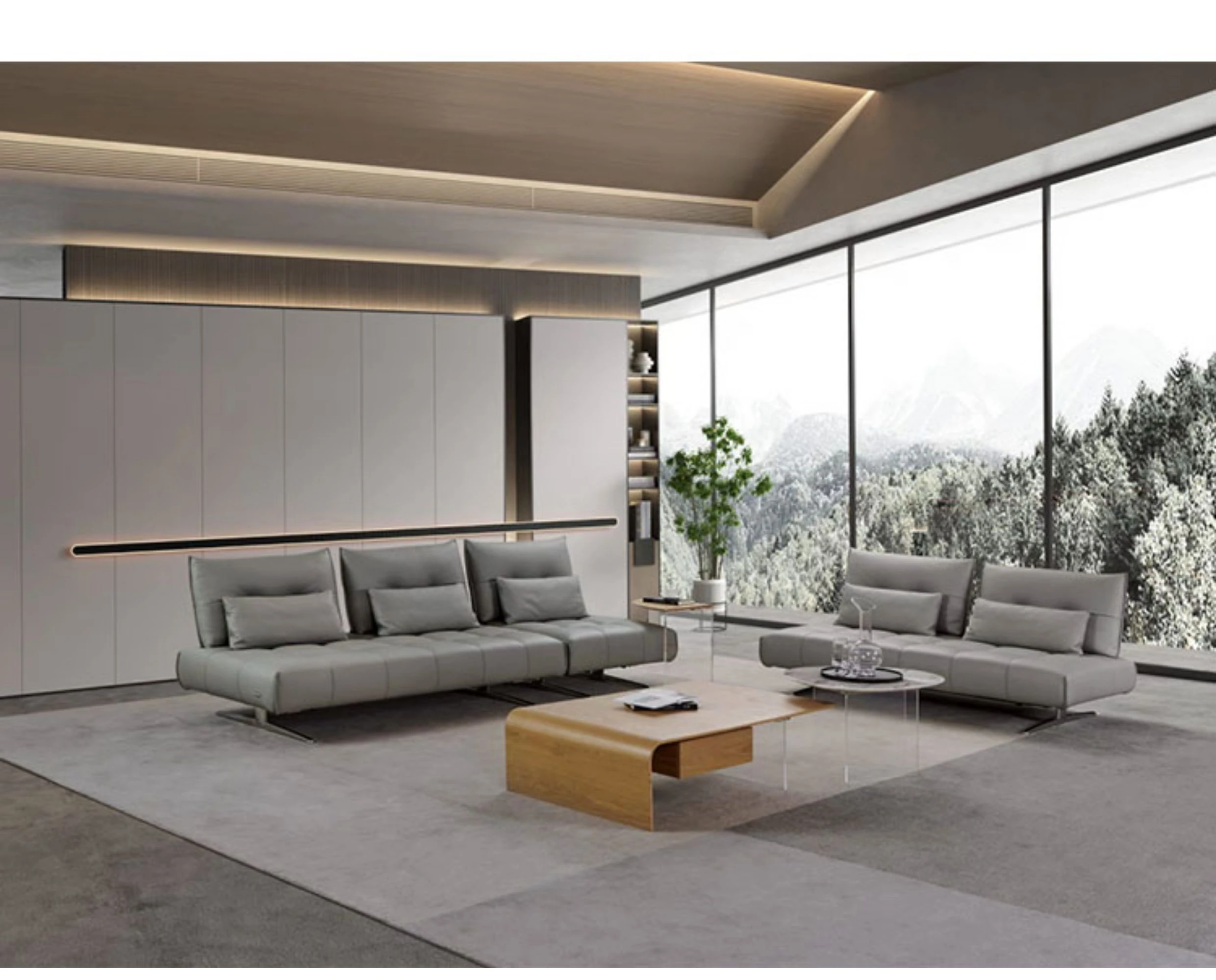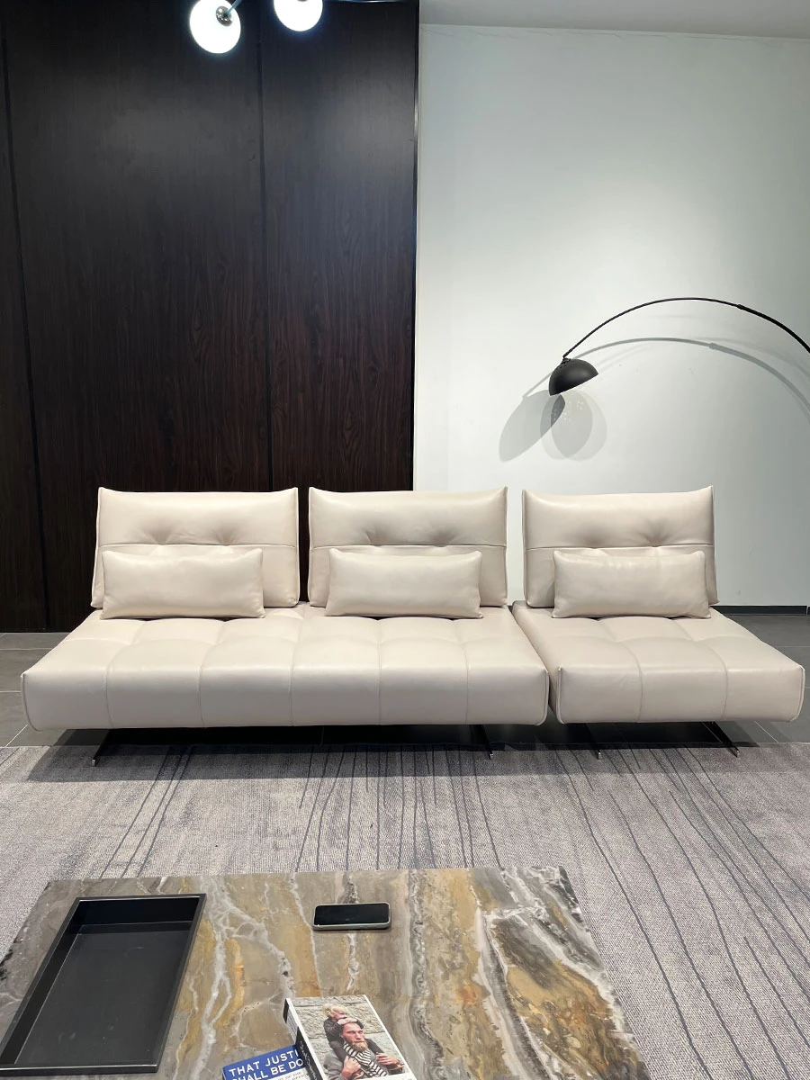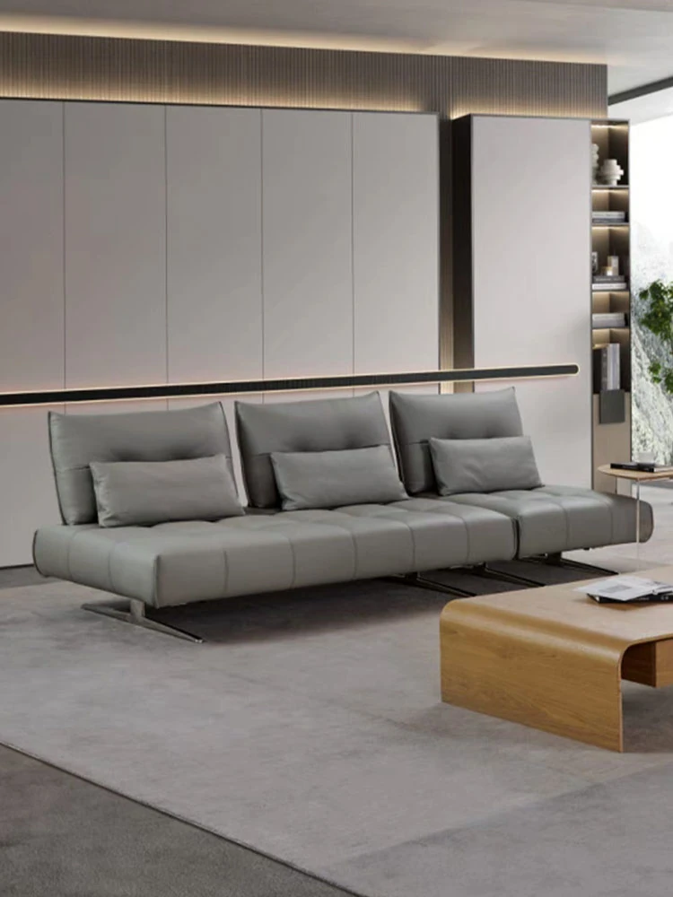 Italian Minimalist Genuine Leather Sofa - Premium Top-Grain Leather, Multi-Functional Luxury Style for Living Room and Study, Perfect for Small Spaces - Model EST560