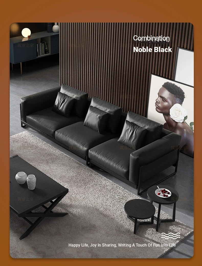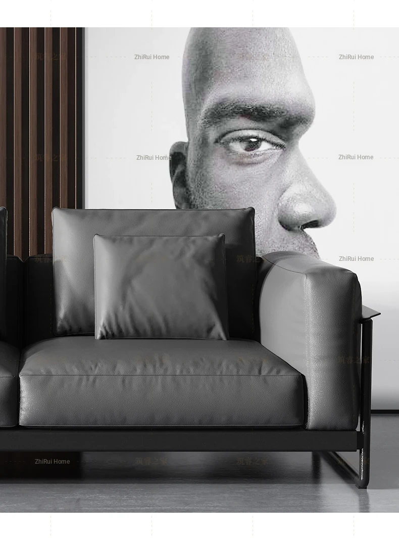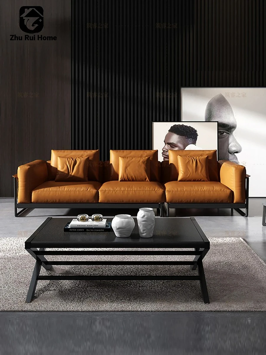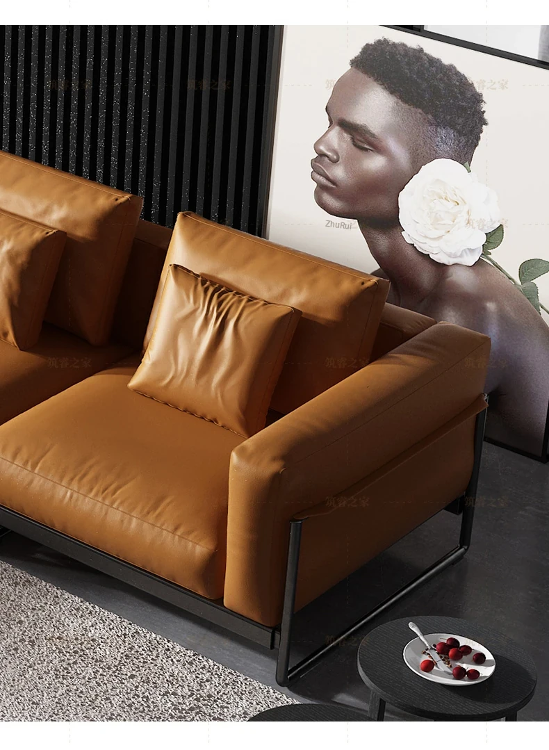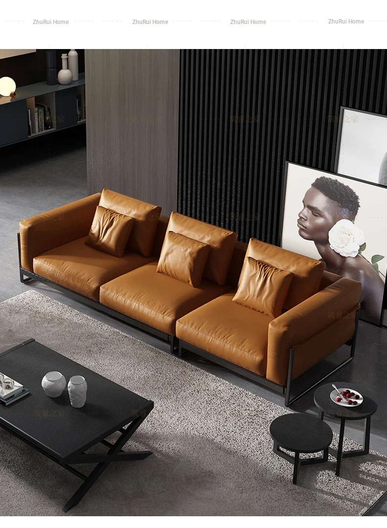 Italian Minimalist Genuine Leather Sofa - Top-Grain Cowhide, Straight-Line Design, Stainless Steel Frame, Down-Filled Cushion - Perfect for Small Spaces, Designed for Modern Living