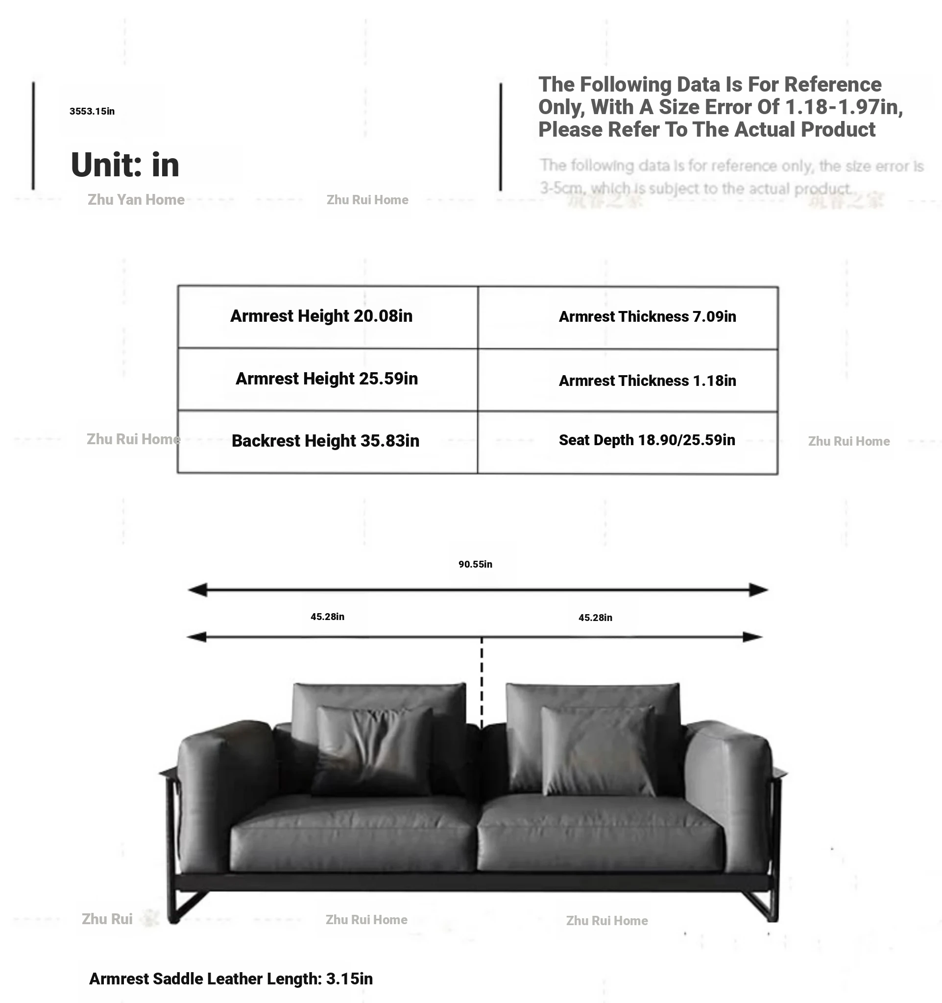 S-Class Medium Thickness Light Pressure Fall 360 Full Leather 0.07in + East Asian High Elastic Sponge + Russian Pine Frame Lifetime Warranty