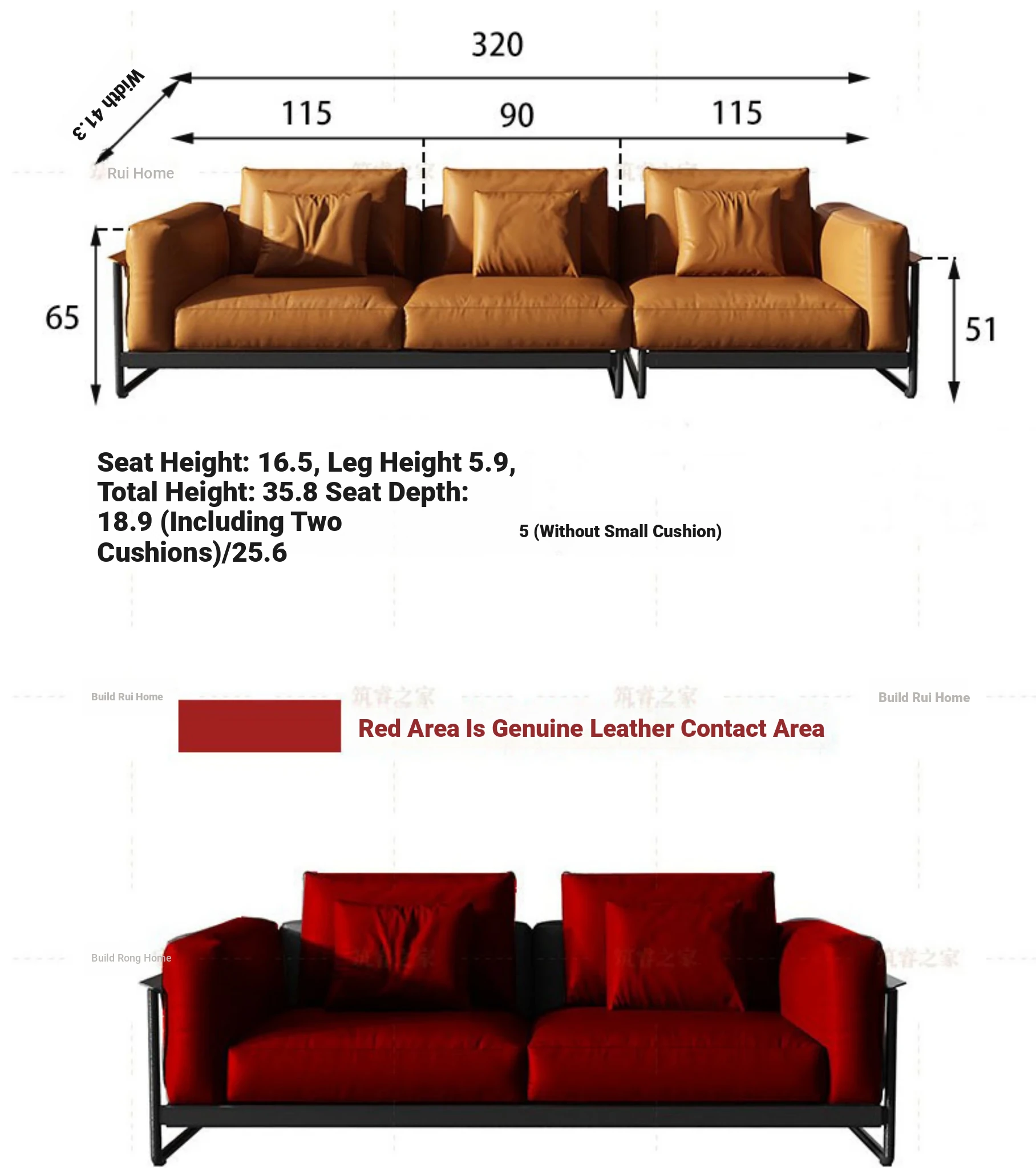 V-grade Napa contact surface leather 0.06in + East Asian high-elastic sponge + Russian pine frame lifetime warranty