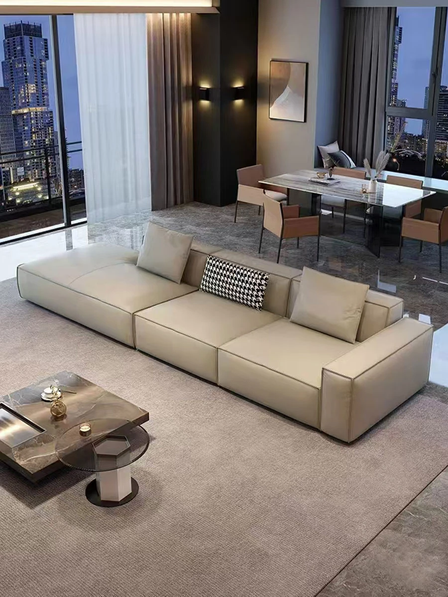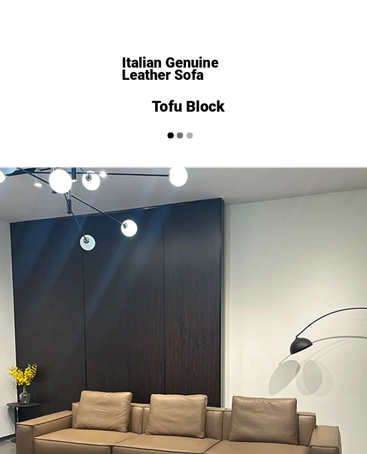 Italian Minimalist Genuine Top-Grain Leather Sofa - Luxurious Cream-Style Tofu Block Design for Small Living Spaces, Perfect for Chic Homes
