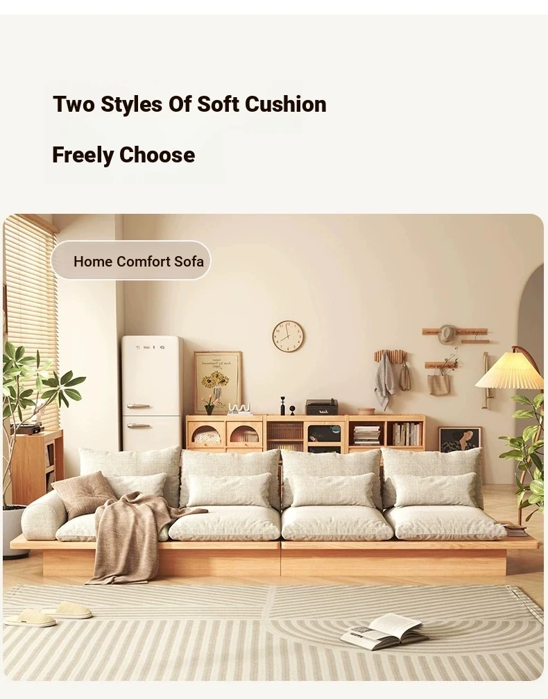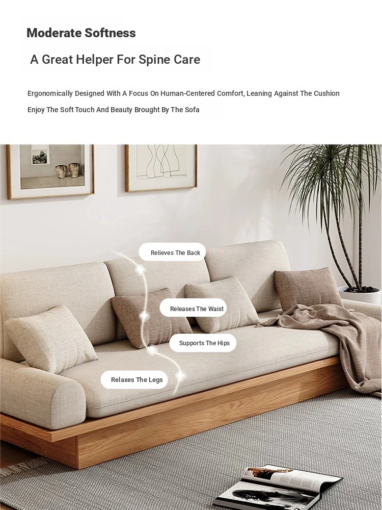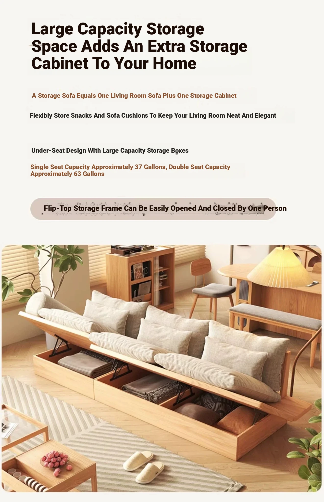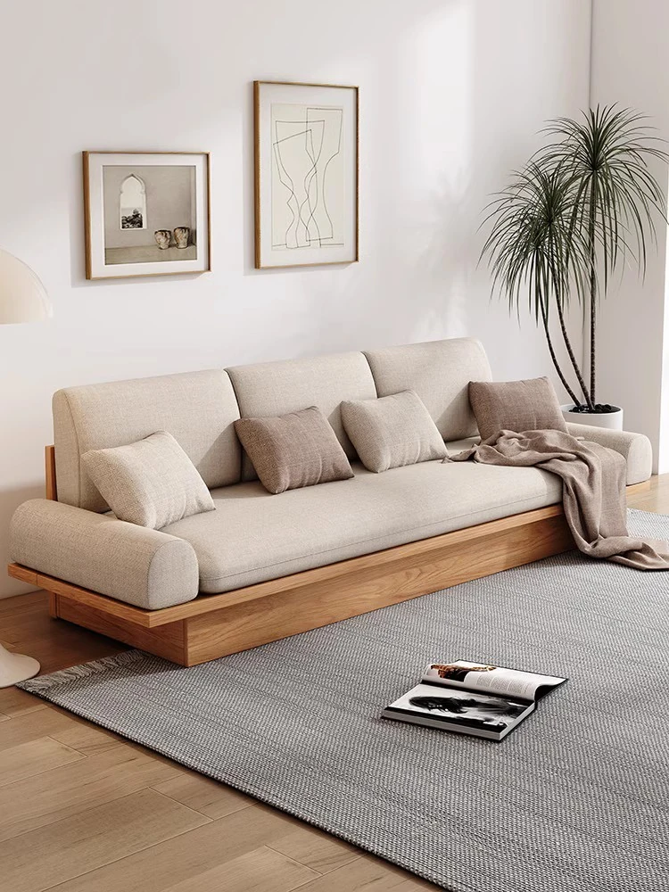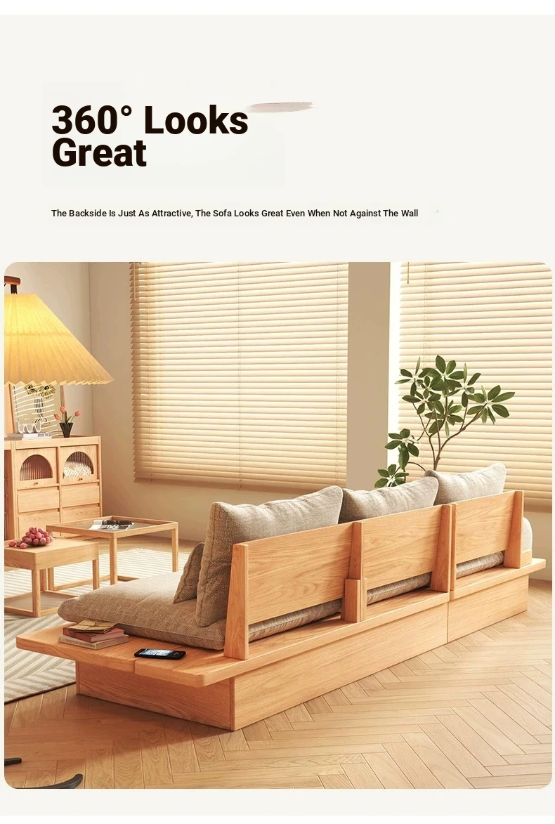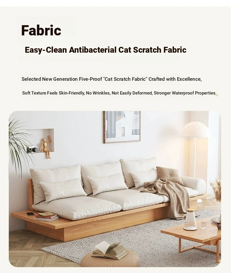 Japanese Style Solid Wood Large Board Minimalist Modern Three-Seater Sofa with Storage for Small Living Rooms, Upholstered Tatami Sofa