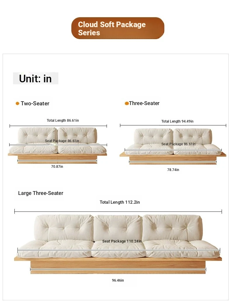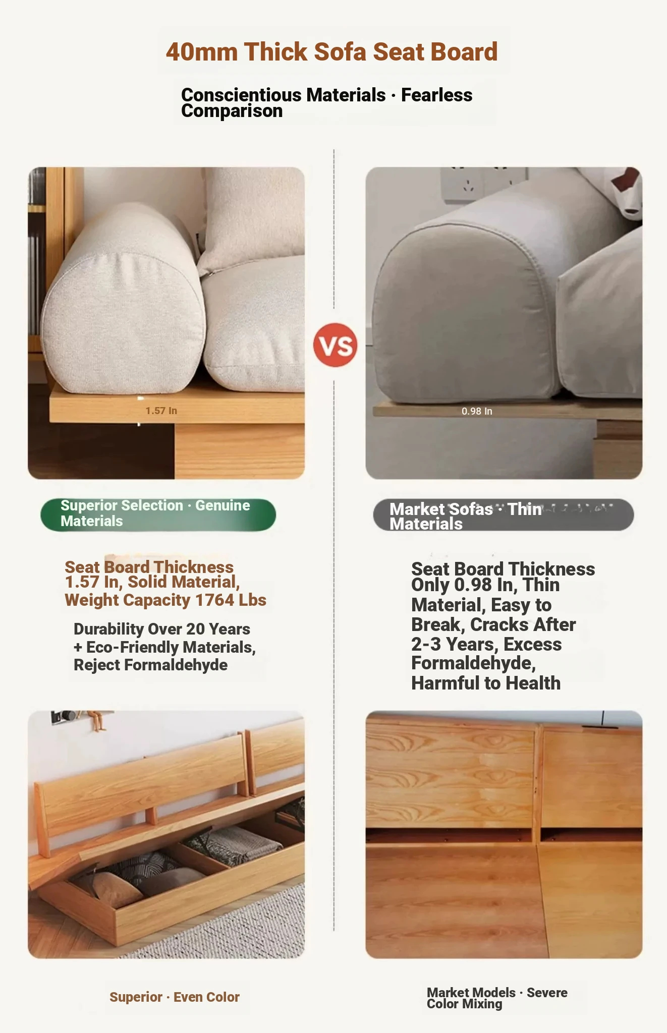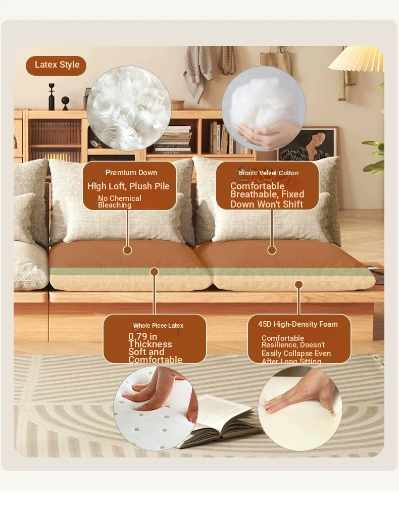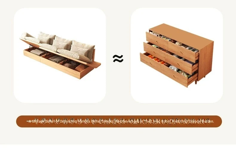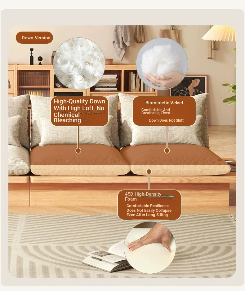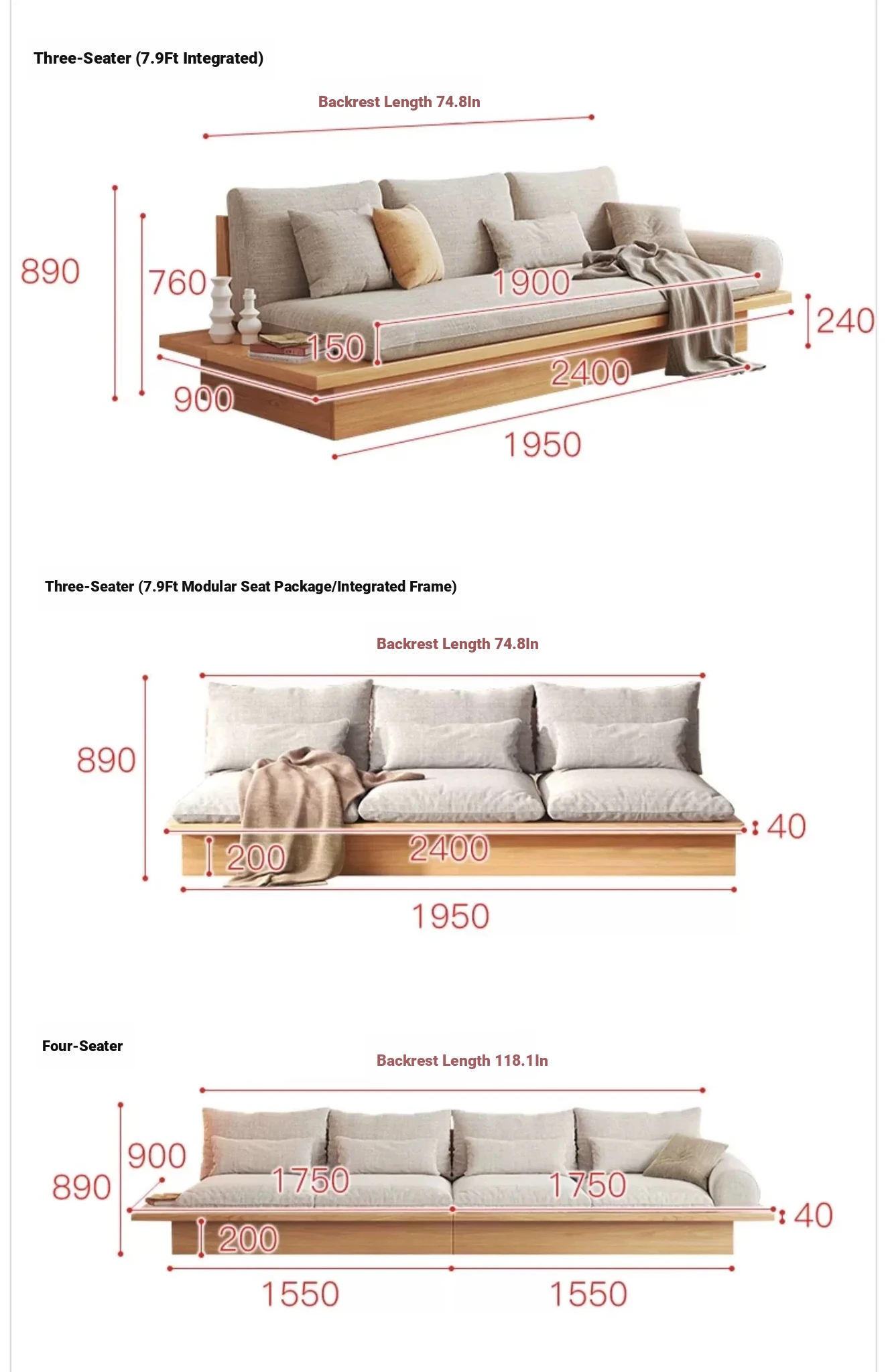 Japanese Style Solid Wood Large Board Minimalist Modern Three-Seater Sofa with Storage for Small Living Rooms, Upholstered Tatami Sofa