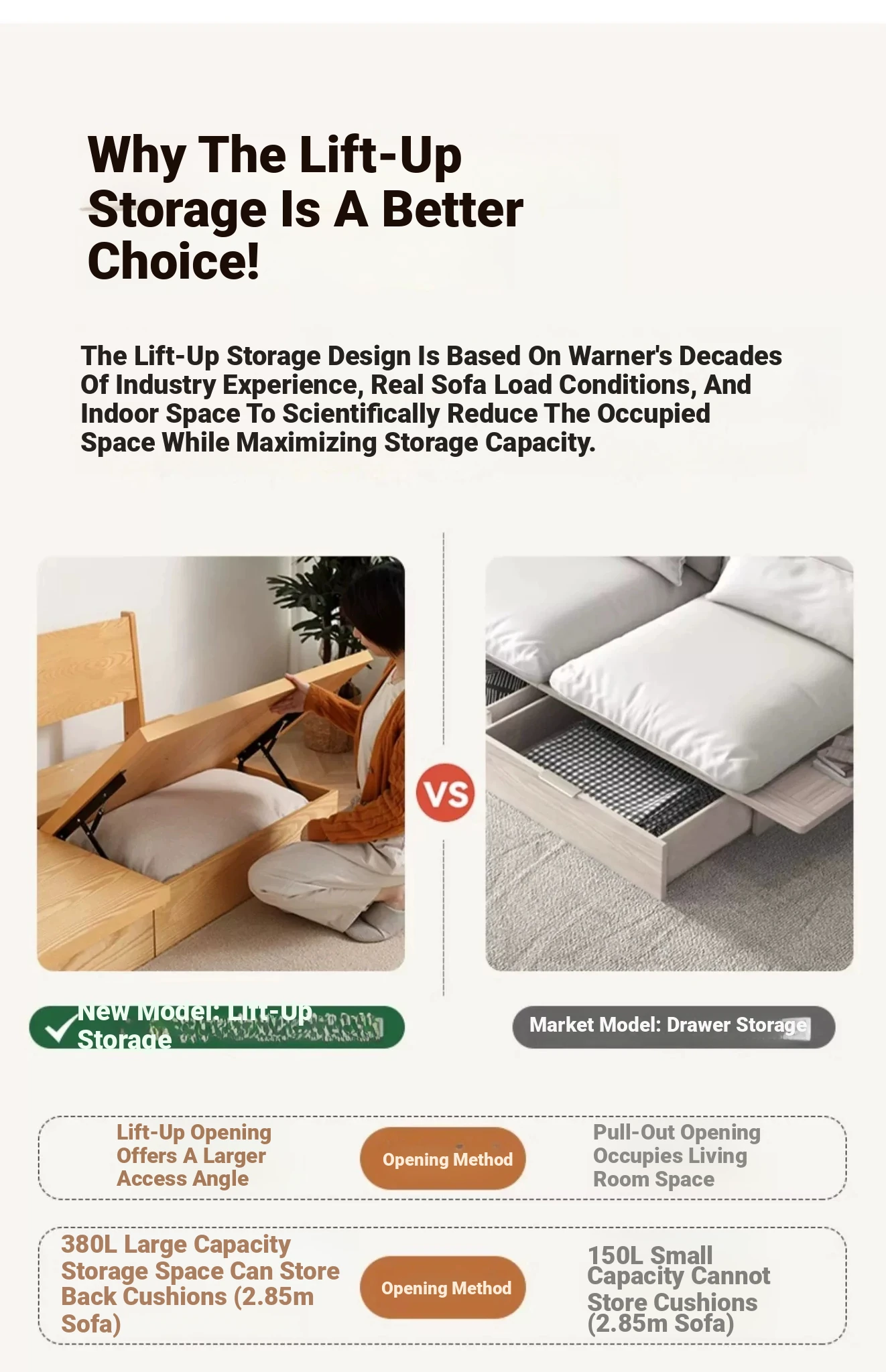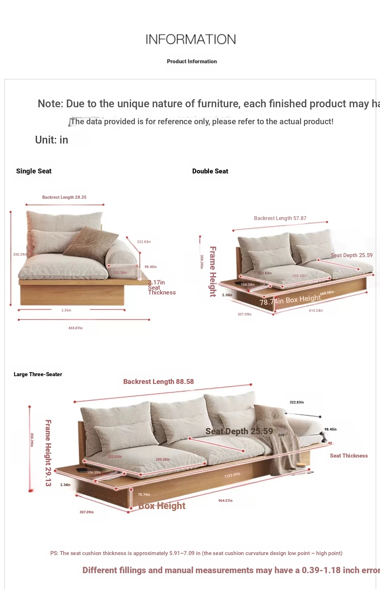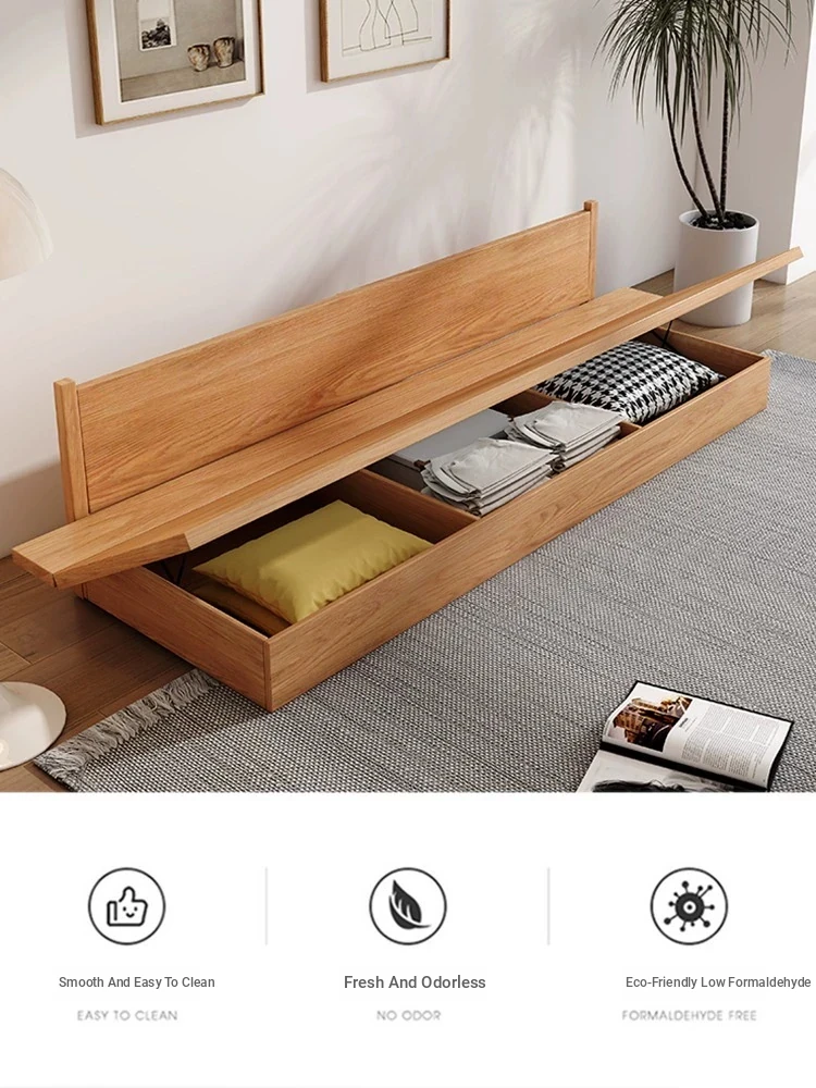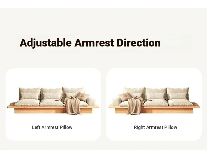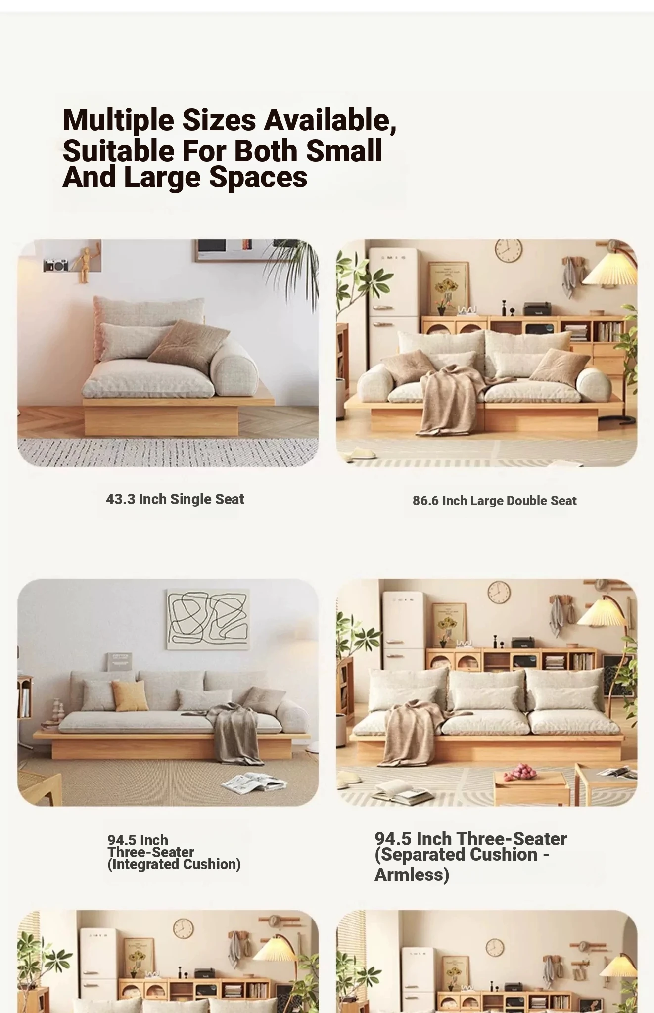 Japanese Style Solid Wood Large Board Minimalist Modern Three-Seater Sofa with Storage for Small Living Rooms, Upholstered Tatami Sofa