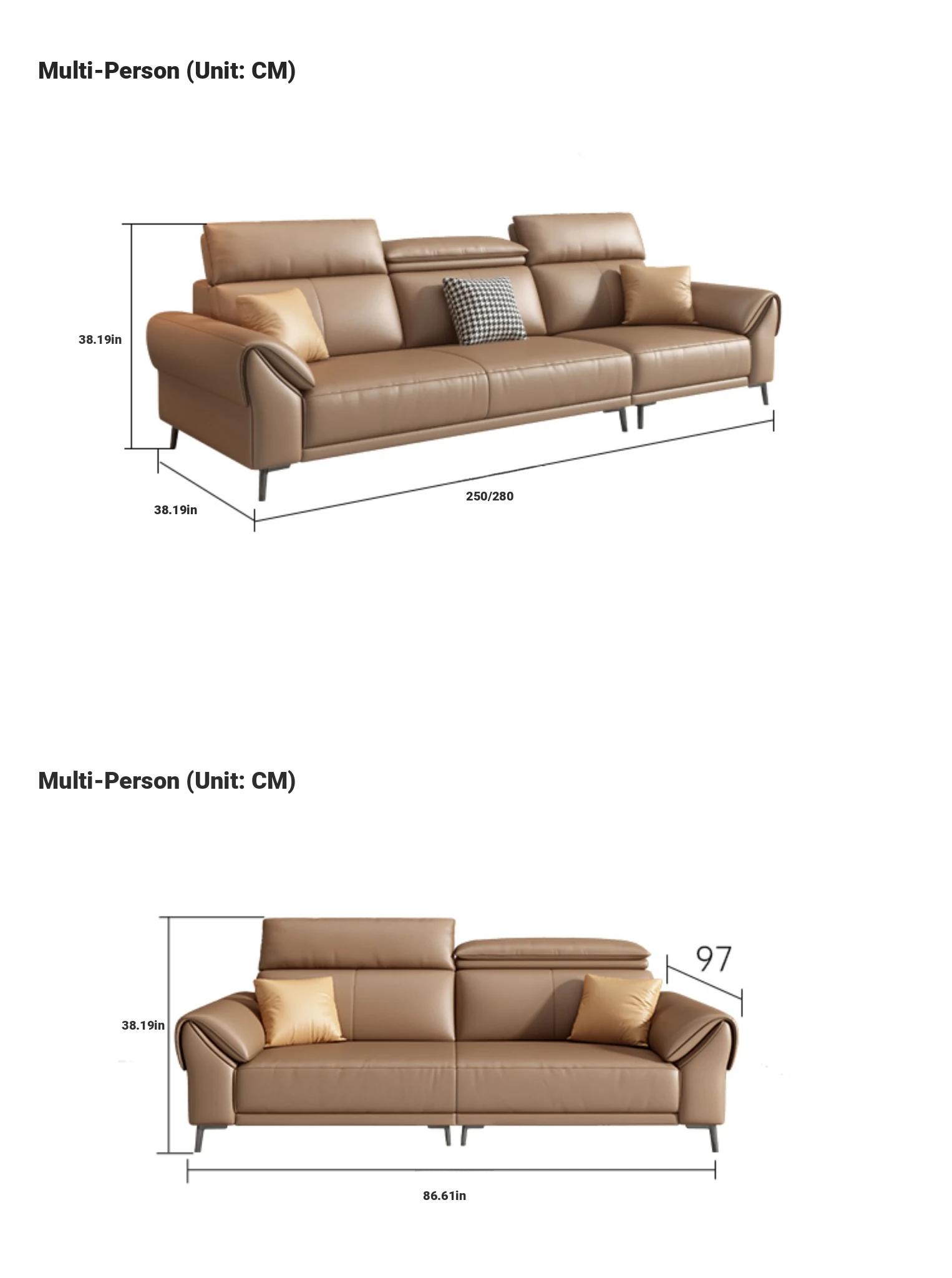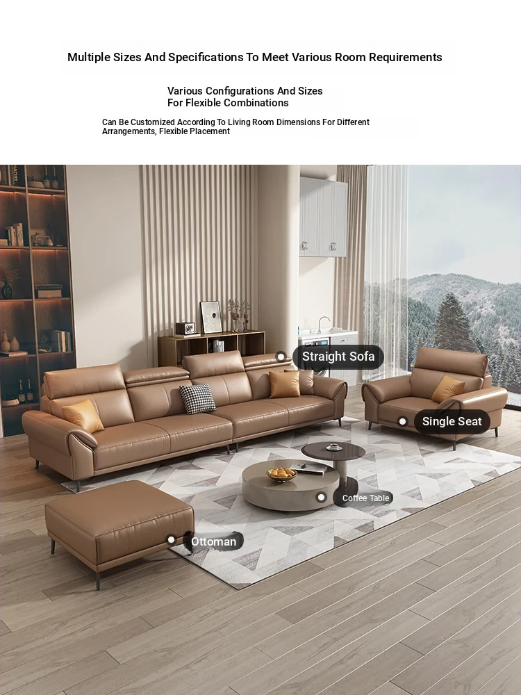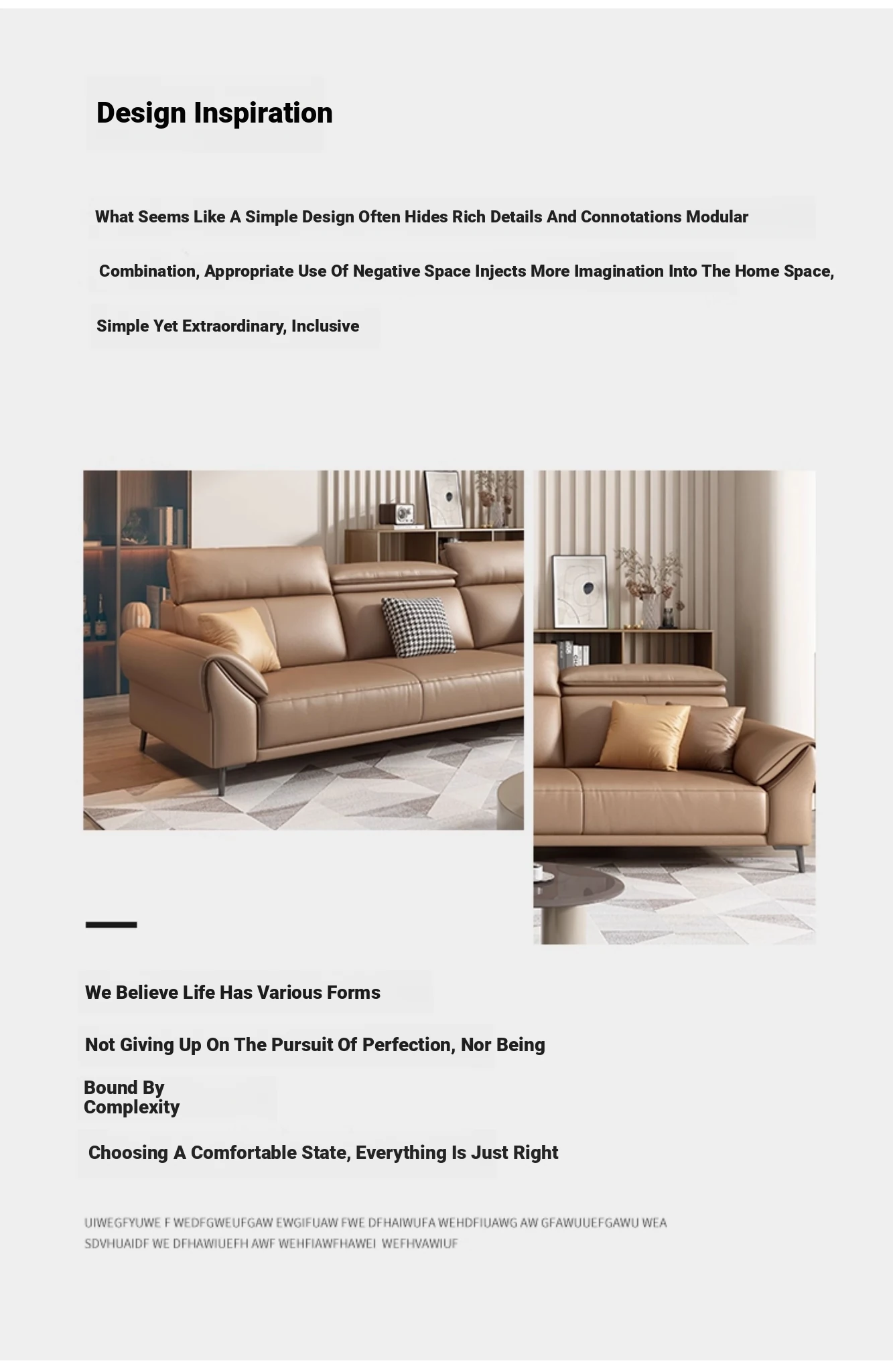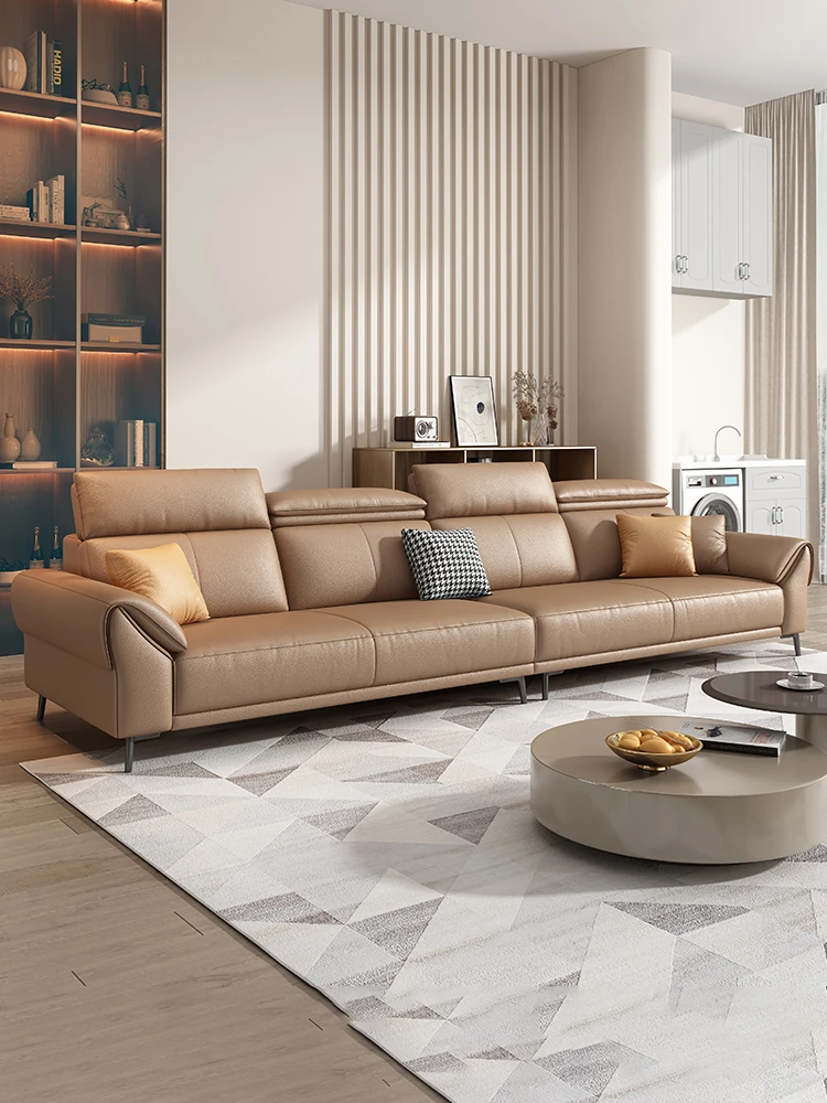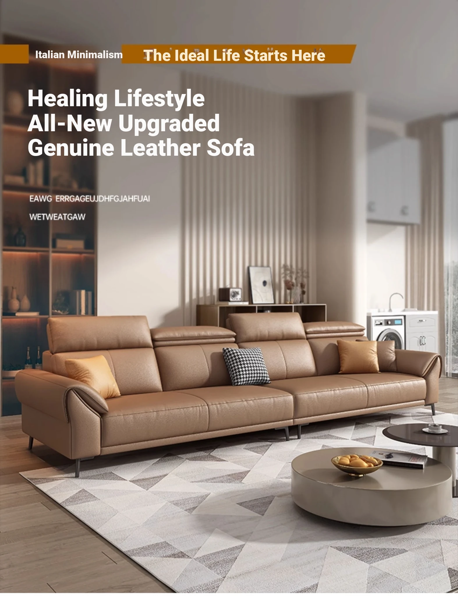 Jianye Genuine Leather Sofa - Italian Minimalist Retro Design for Small Living Rooms, Top Grain Cowhide, Straight-Line Three-Seat Leather Sofa