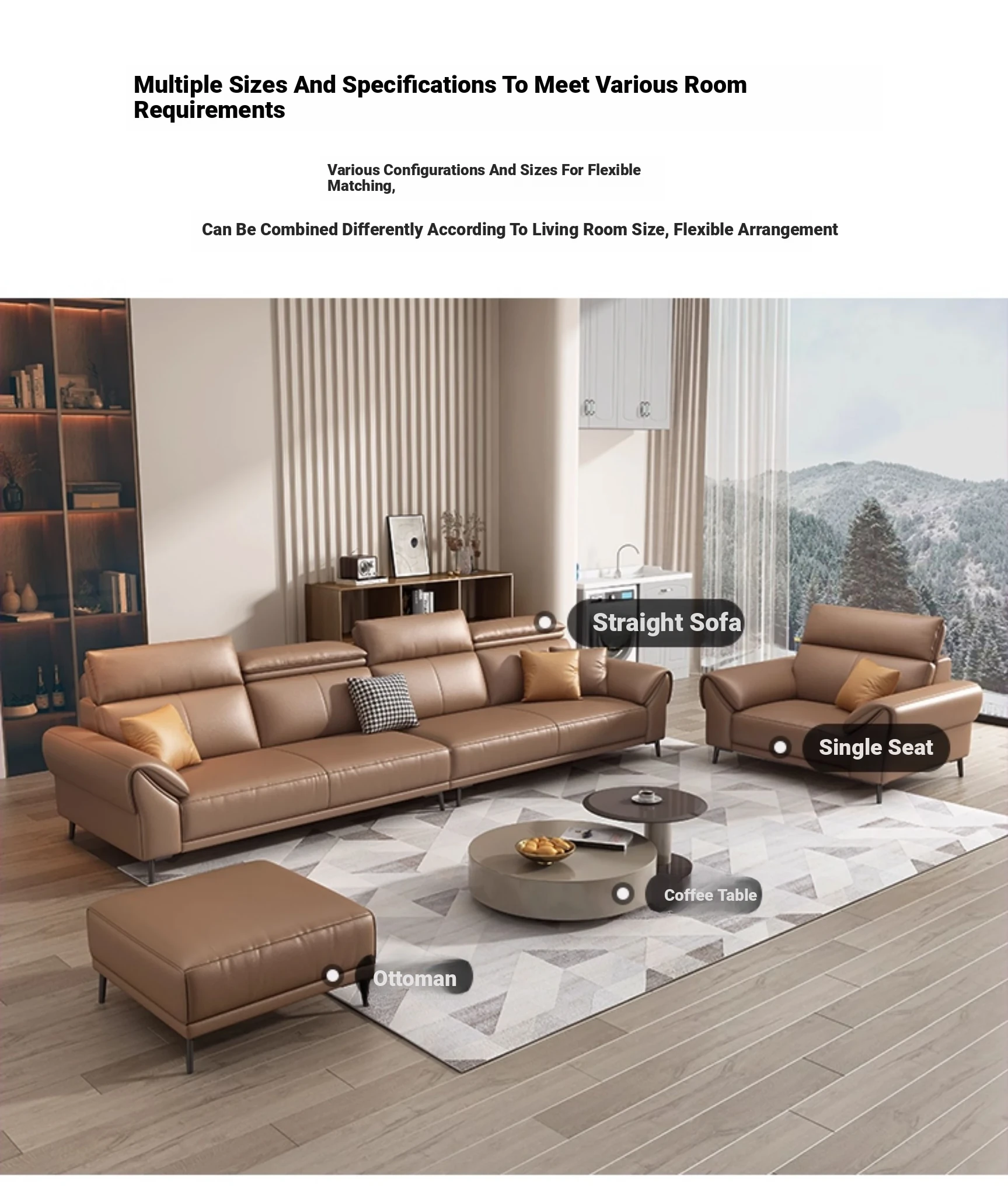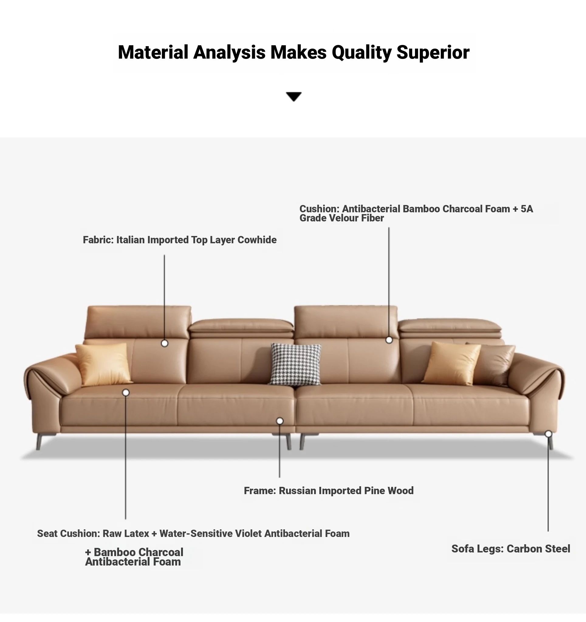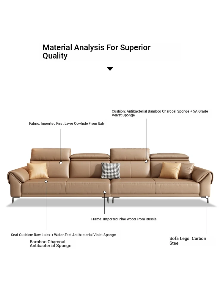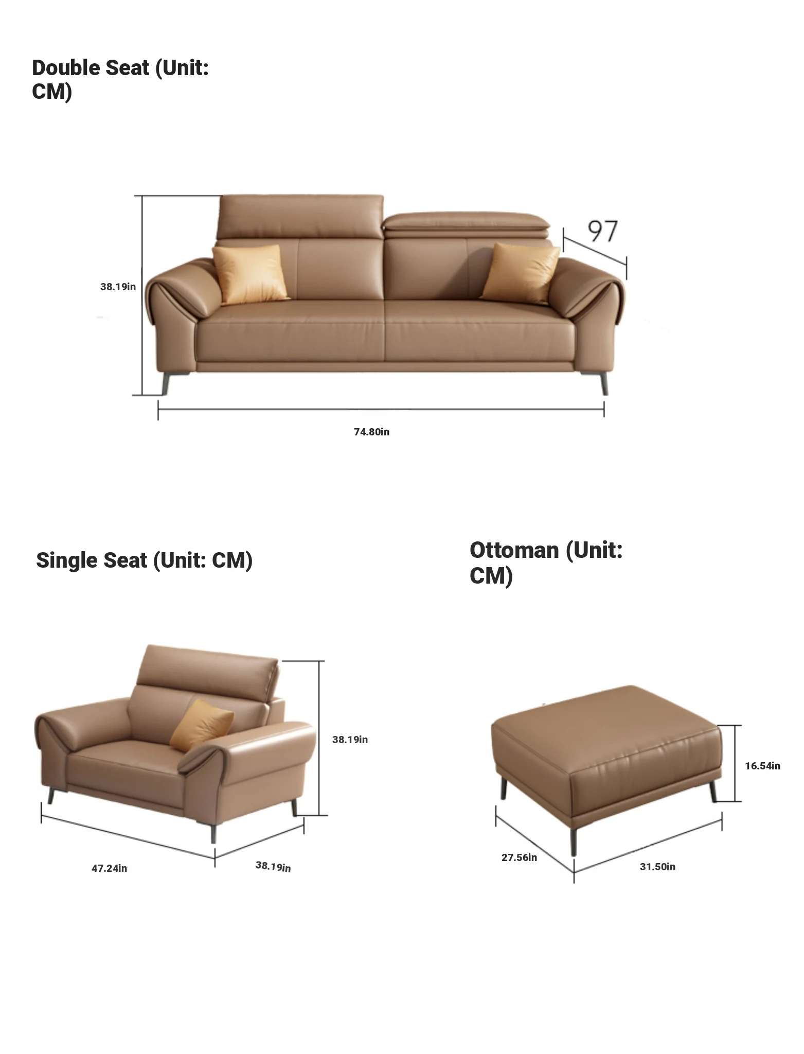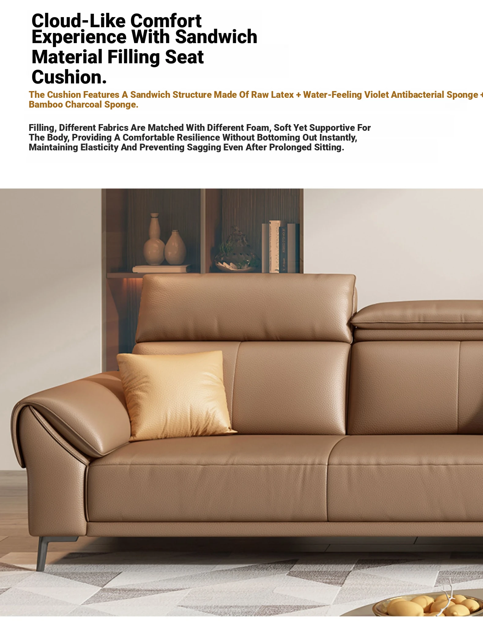 Jianye Genuine Leather Sofa - Italian Minimalist Retro Design for Small Living Rooms, Top Grain Cowhide, Straight-Line Three-Seat Leather Sofa