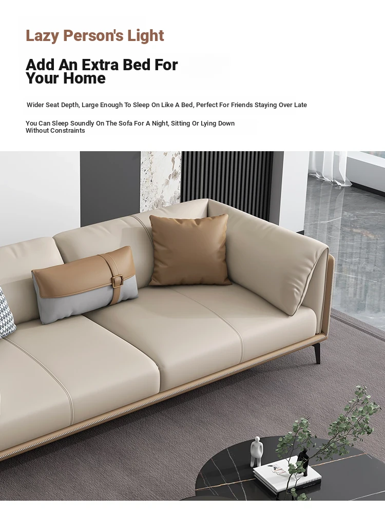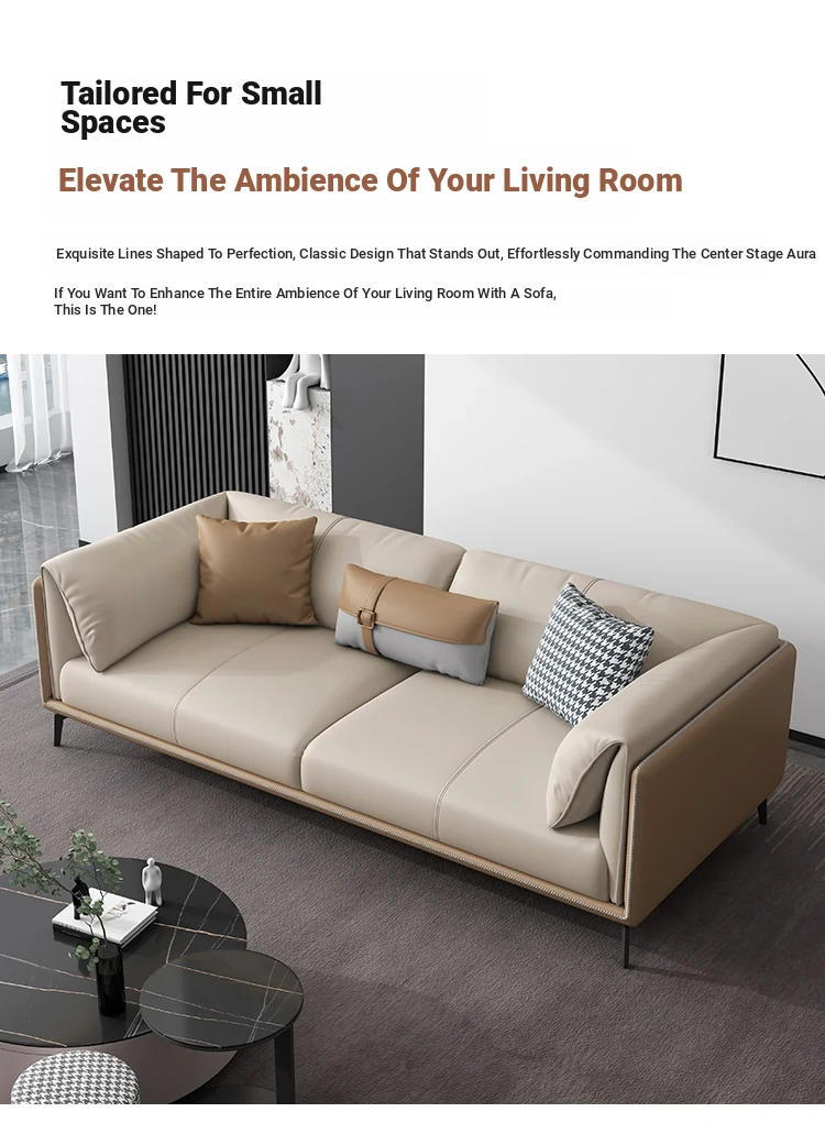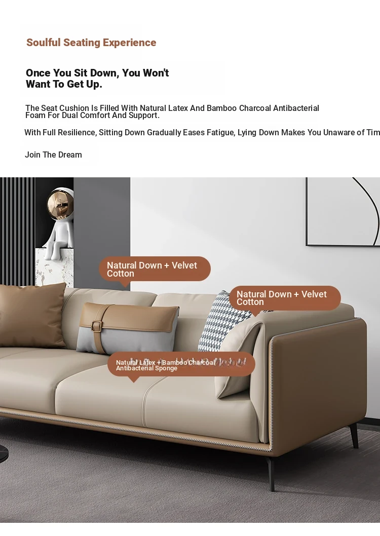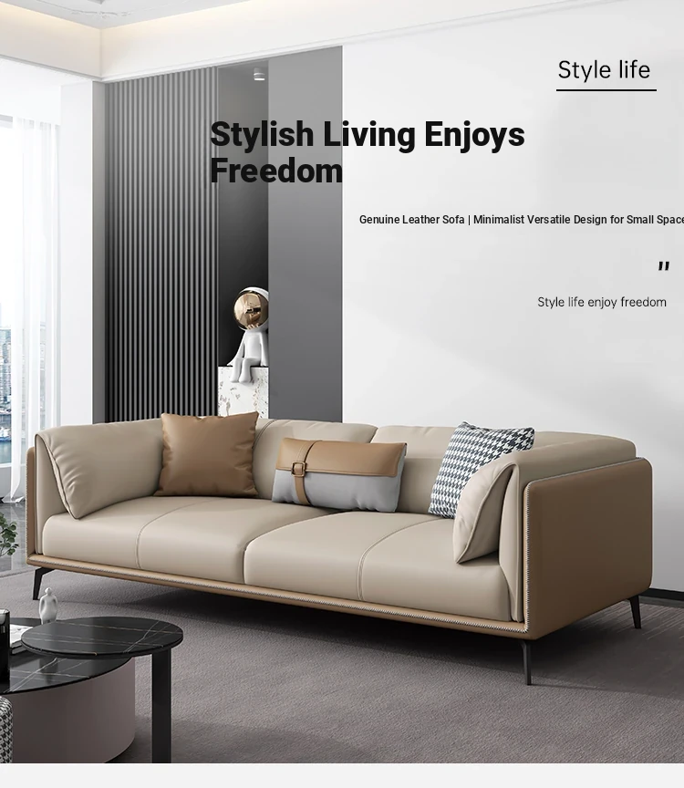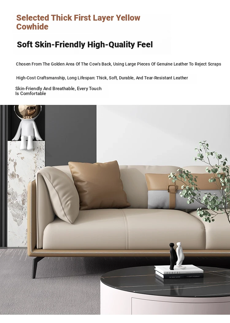 Jianye Italian Minimalist Genuine Leather Sofa - Luxurious Yet Simple Top-Grain Leather 3-Seater Sofa with Down-Feather Upholstery for Small Spaces