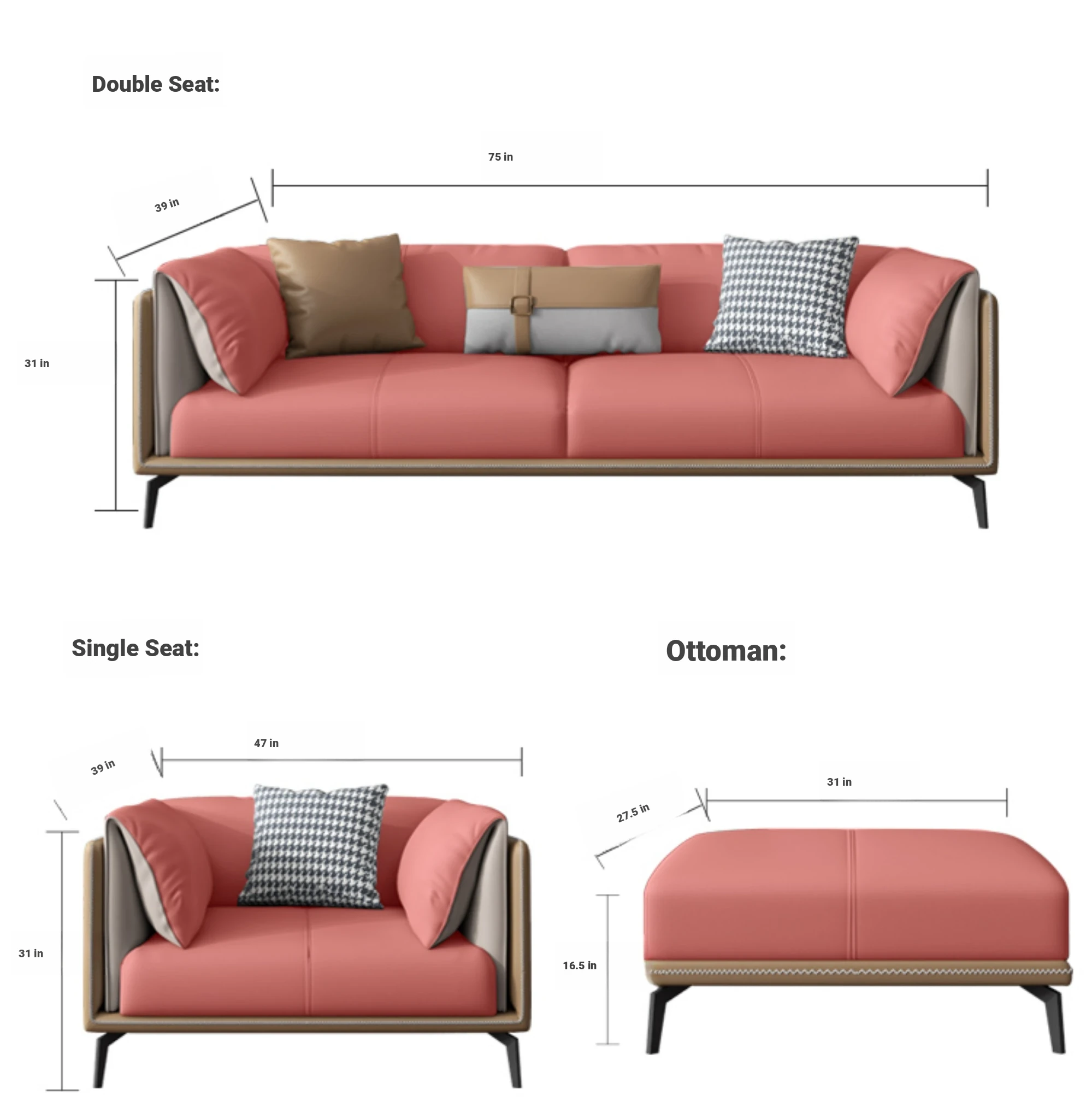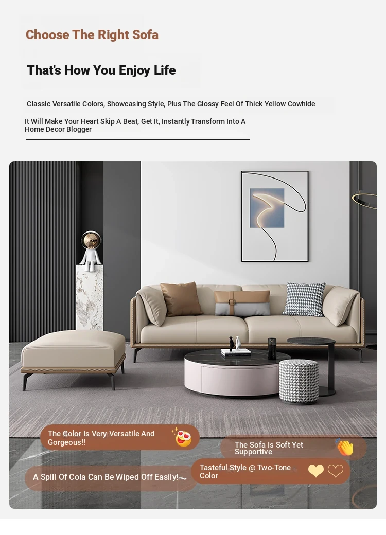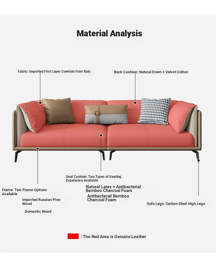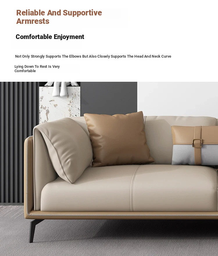 Jianye Italian Minimalist Genuine Leather Sofa - Luxurious Yet Simple Top-Grain Leather 3-Seater Sofa with Down-Feather Upholstery for Small Spaces