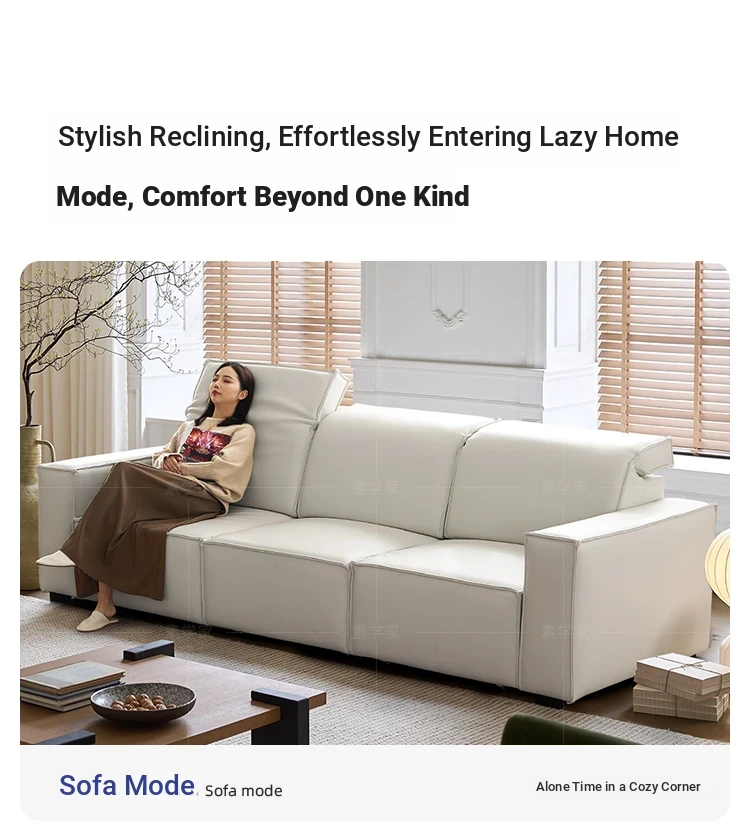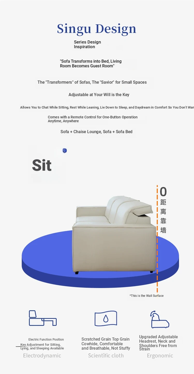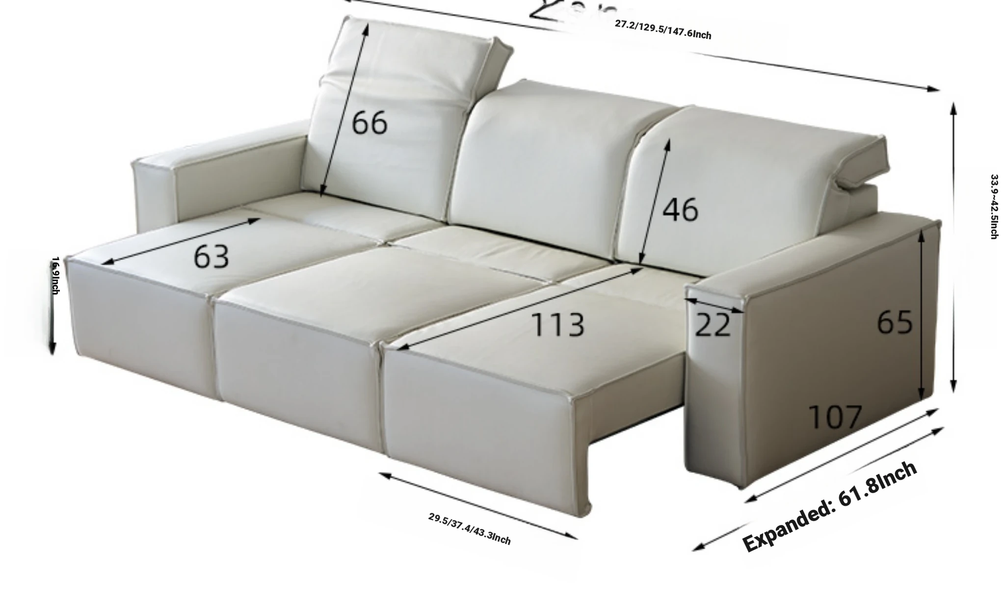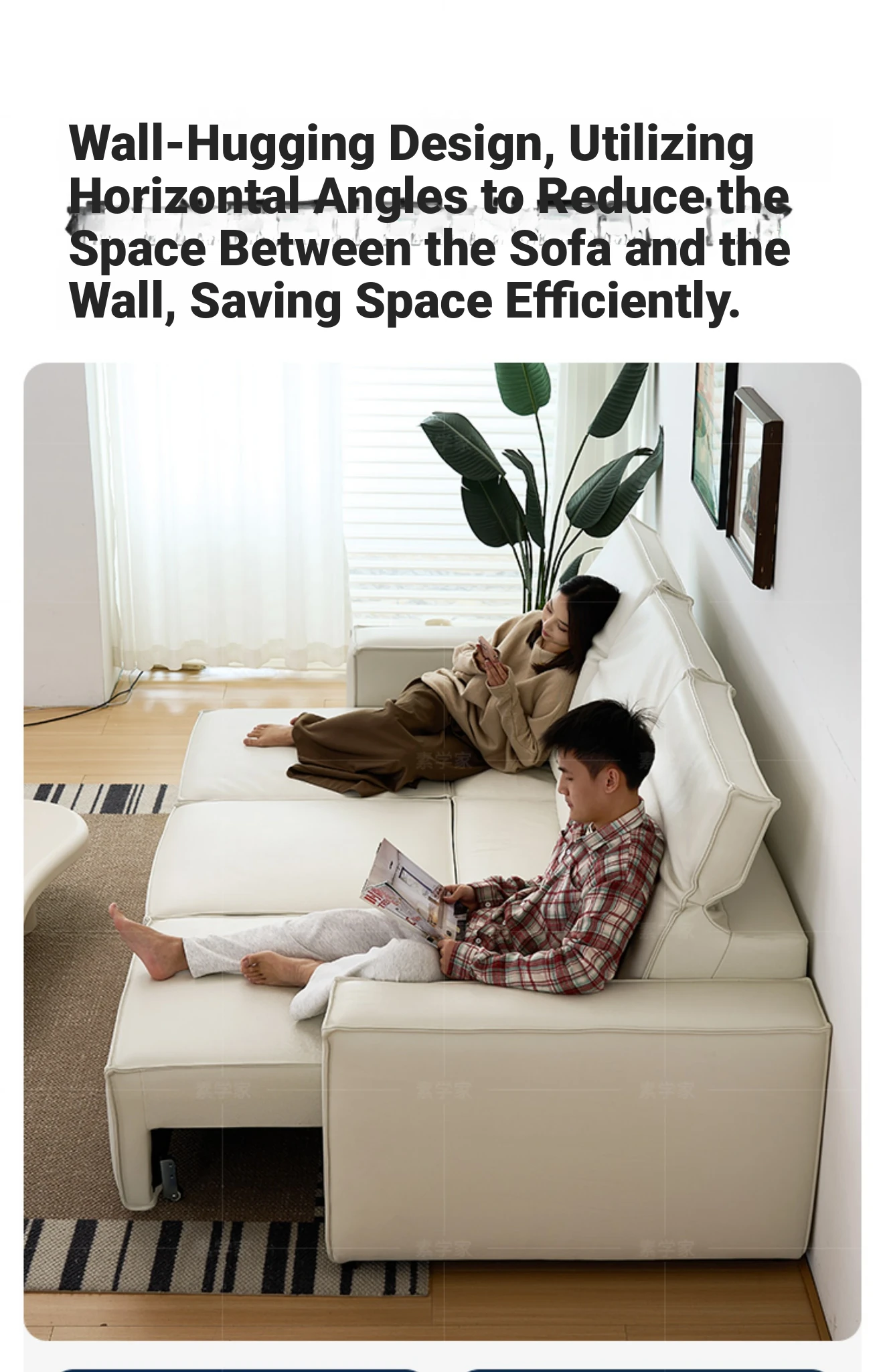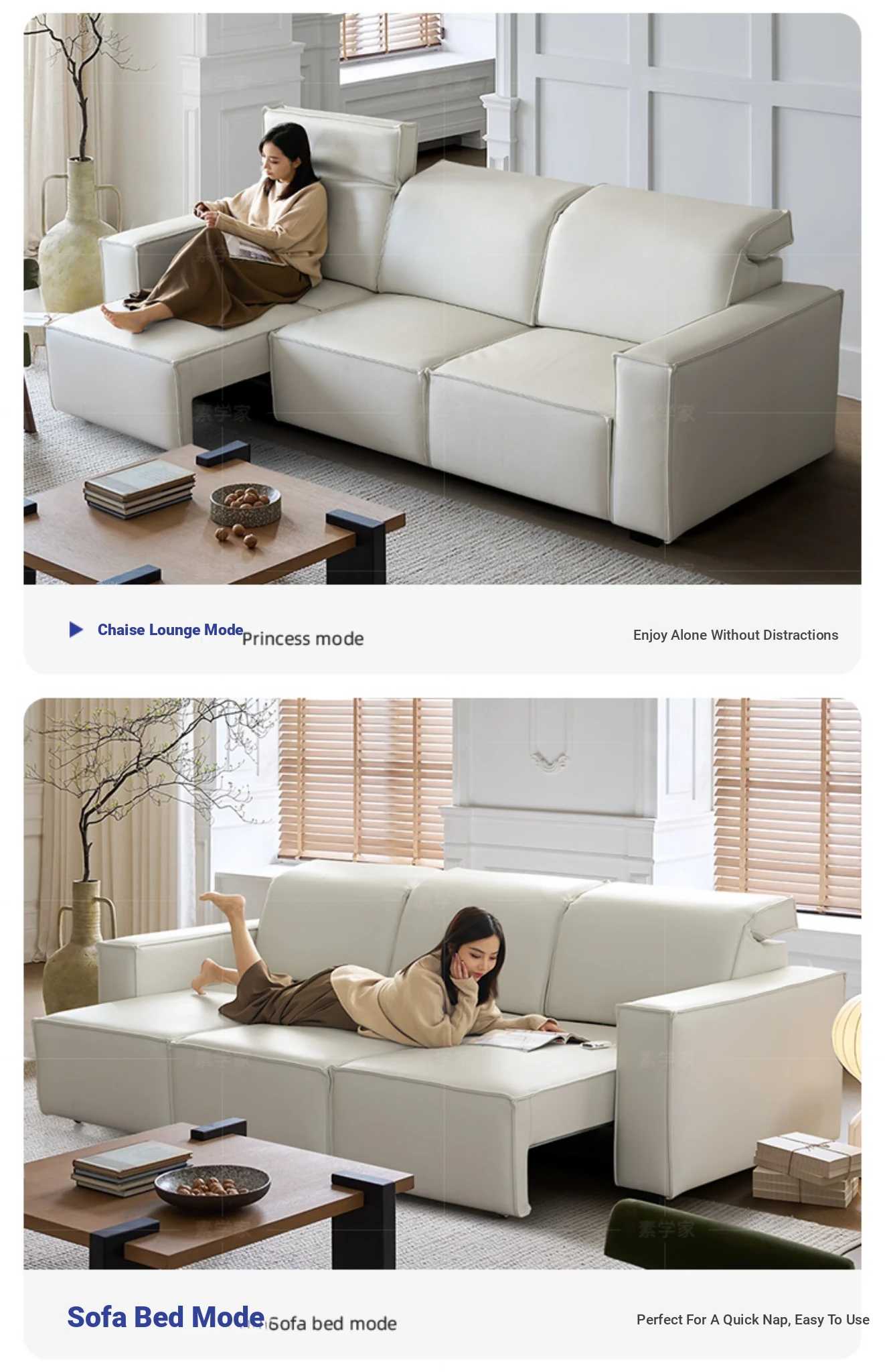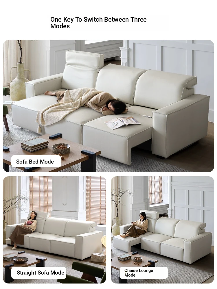 Luxury Real Leather Electric Sofa with Adjustable Backrest - Versatile Black Cowhide Sofa Bed with Retractable Function for Your Living Room
