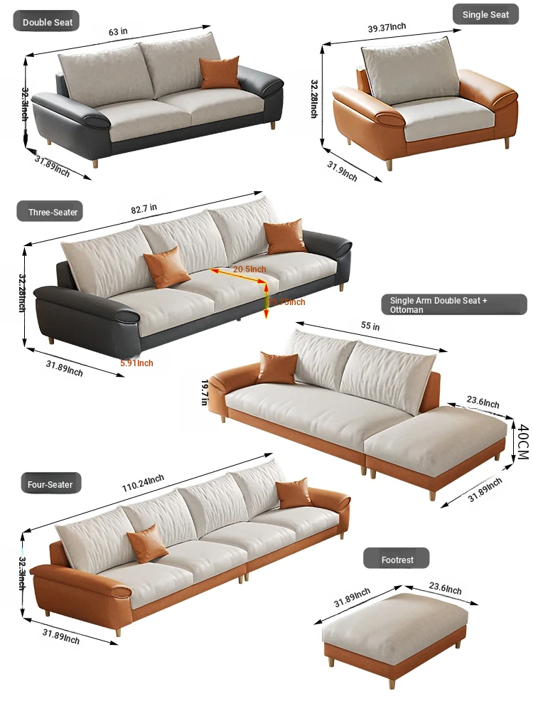 Technology布双人贵妃椅子+脚踏【竹炭海绵】