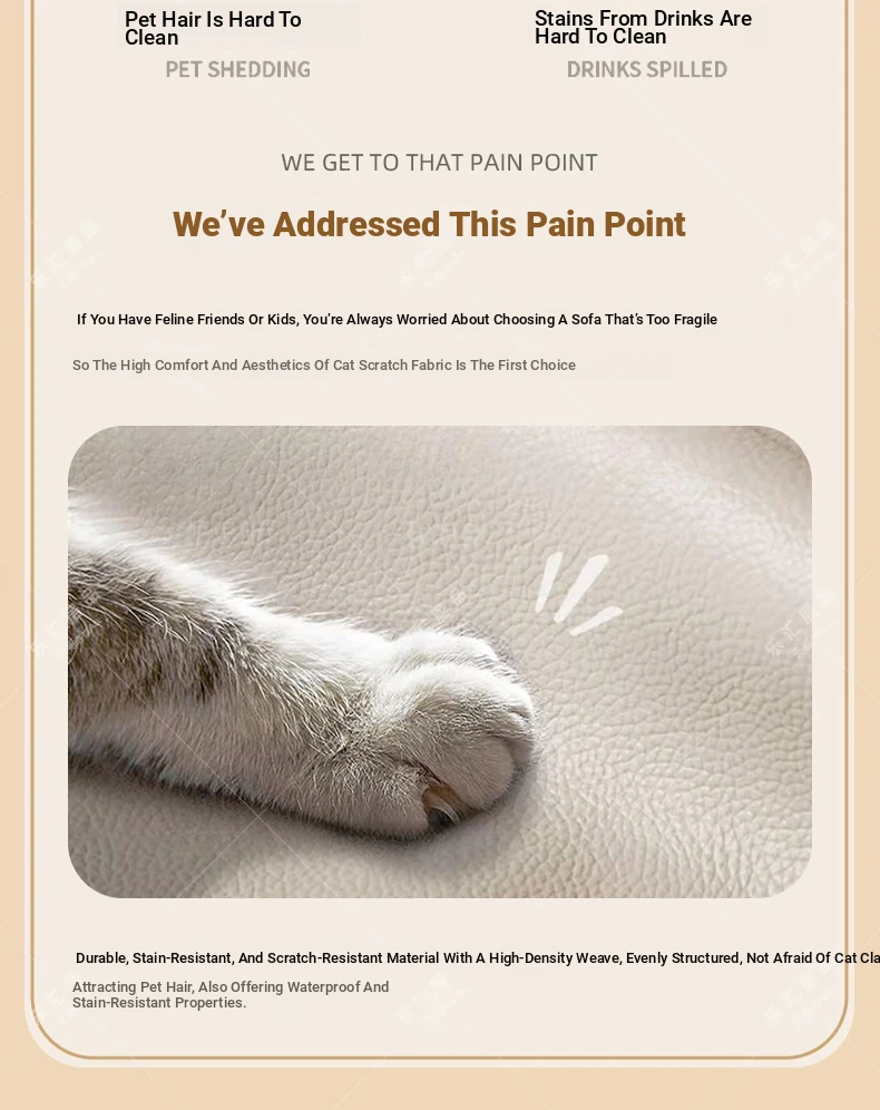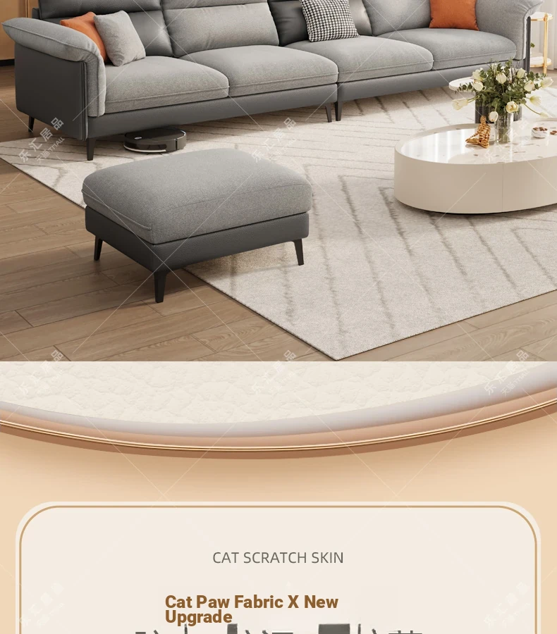New Italian Minimalist Cat Paw Leather Sofa - Removable Cotton Linen Upholstery, Perfect for Small Living Spaces, Stylish Modular Design for Home Use