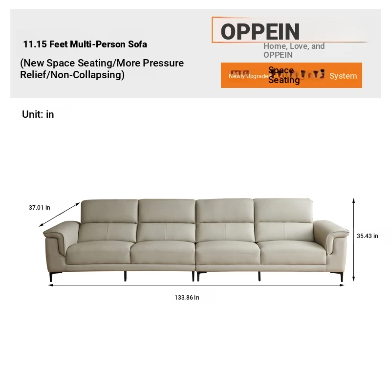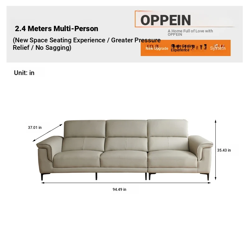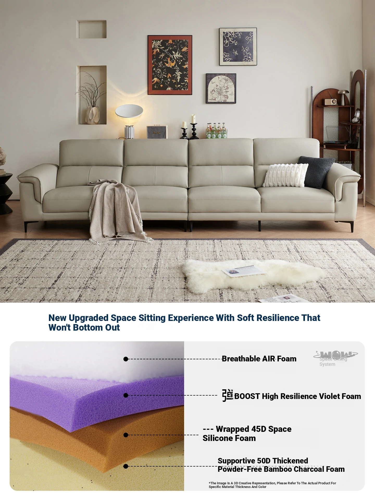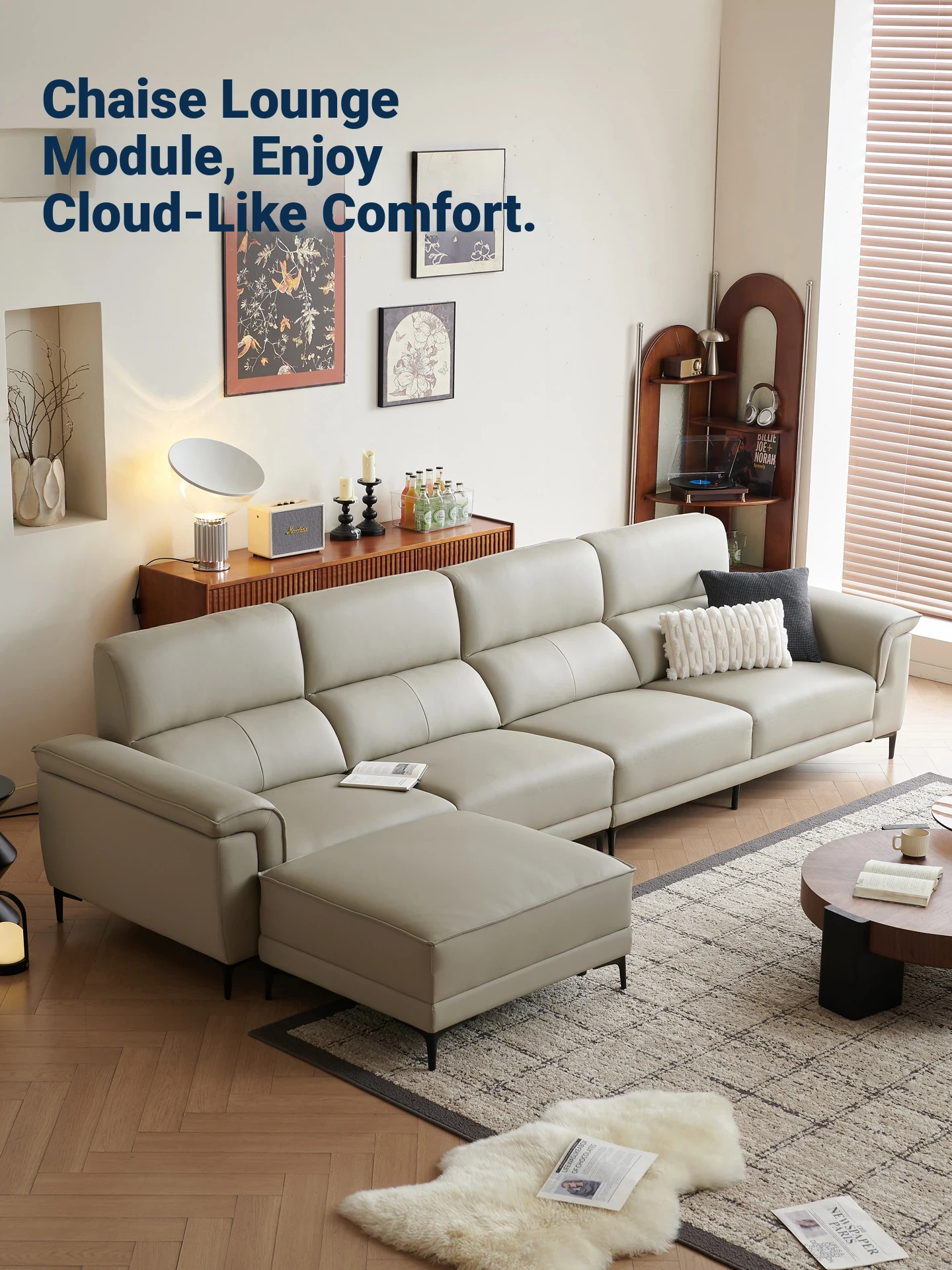 Oupai Modern Minimalist Genuine Leather Sofa - Multi-Seat Top-Grain Cowhide Living Room Italian Style Sleek Design