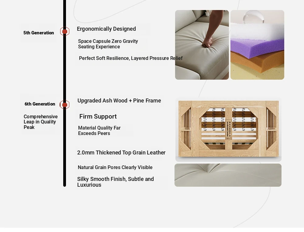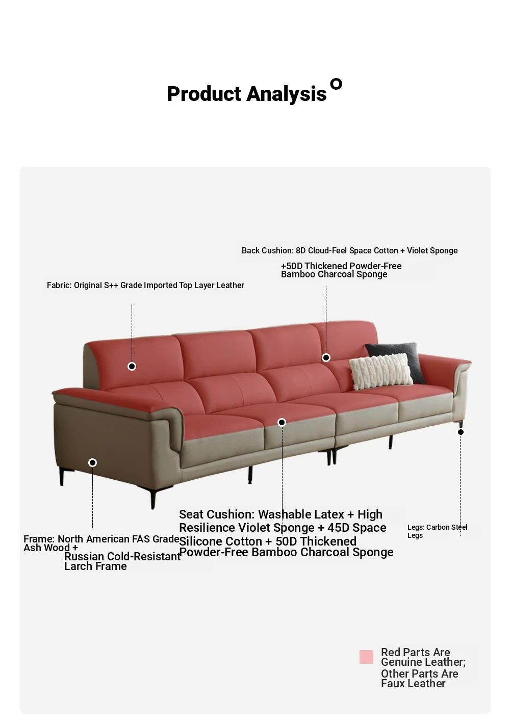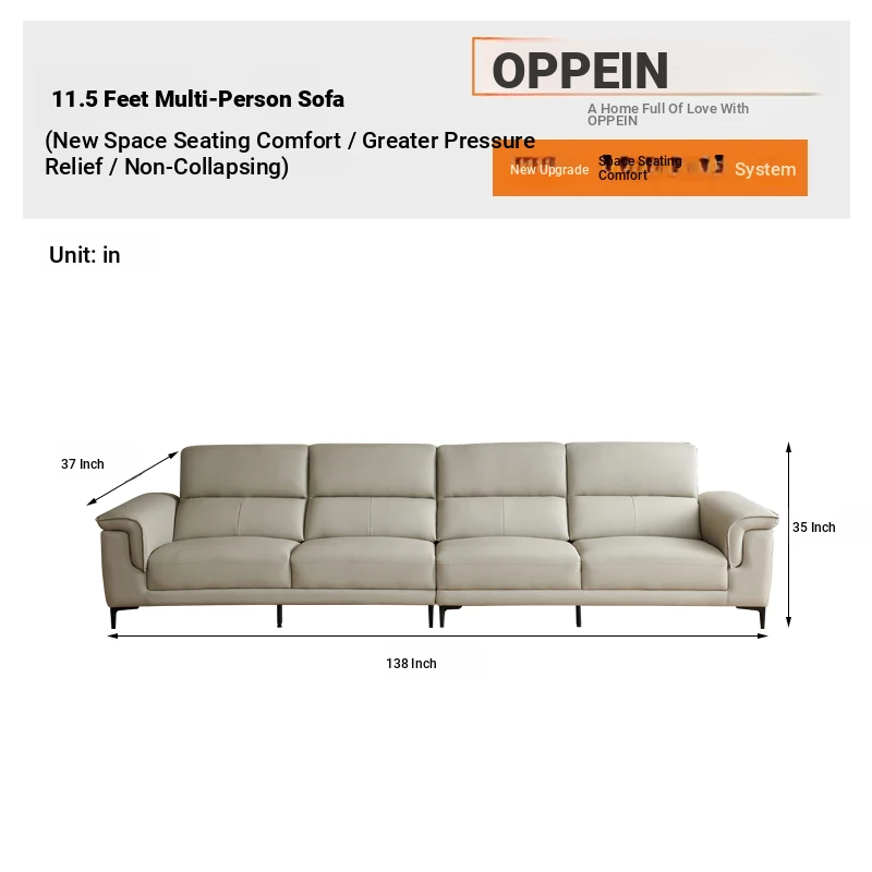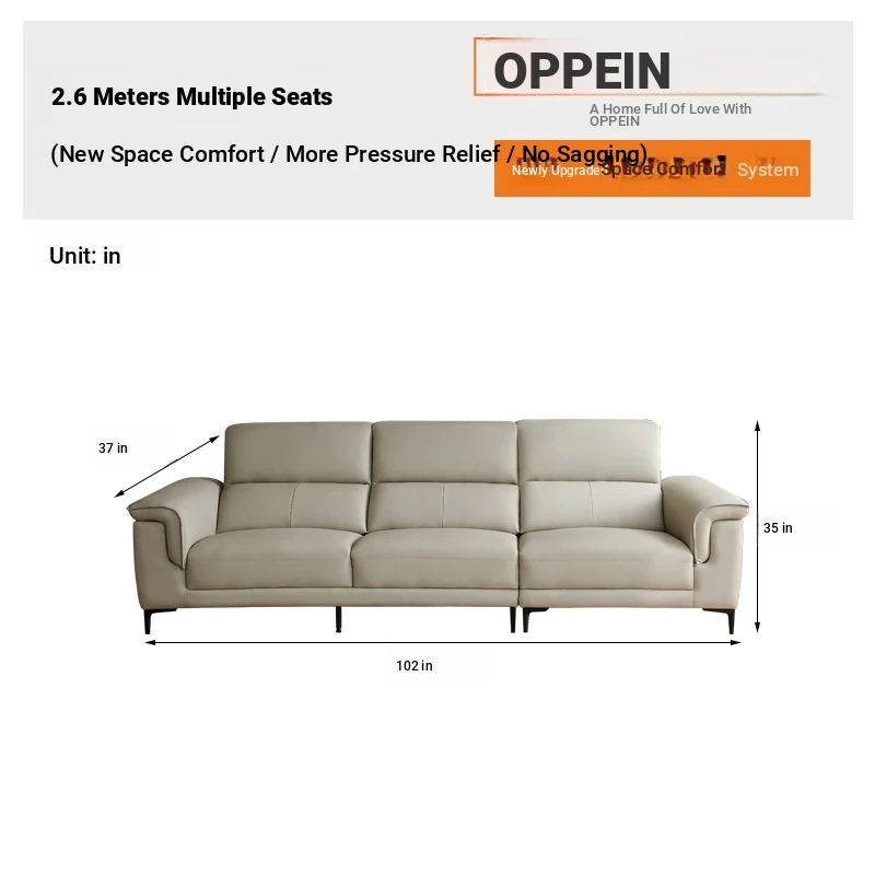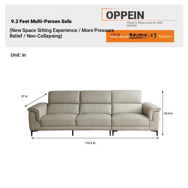 Oupai Modern Minimalist Genuine Leather Sofa - Multi-Seat Top-Grain Cowhide Living Room Italian Style Sleek Design
