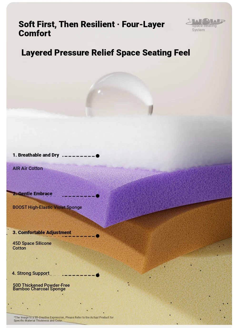 More than 94.49 ins of people [new space sitting feeling/More Pressure Relief/no collapse]]