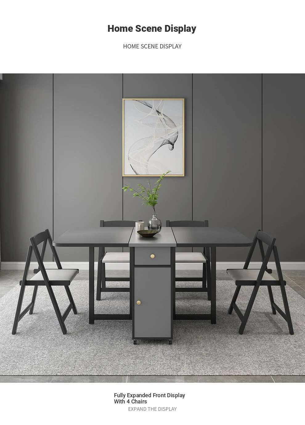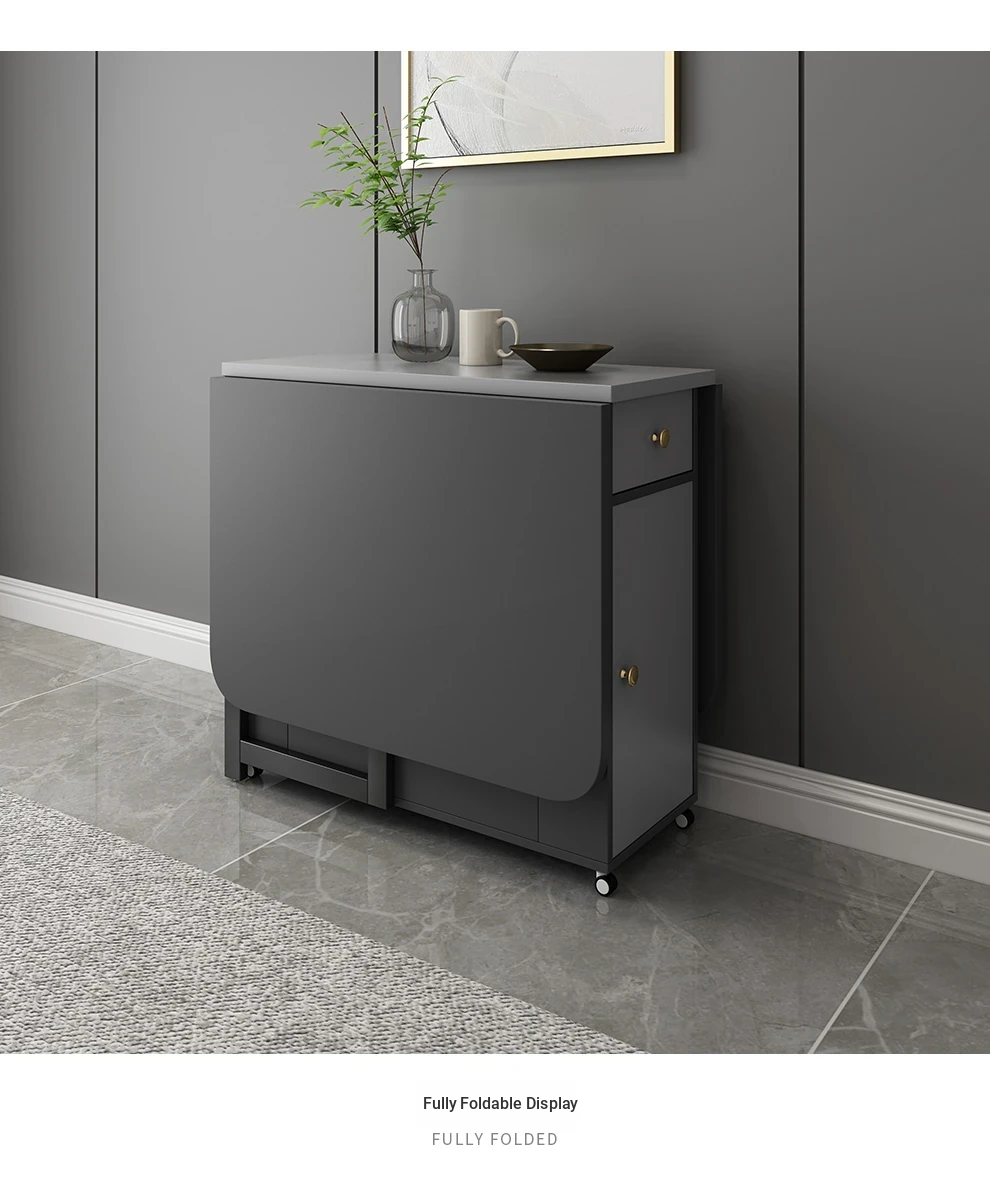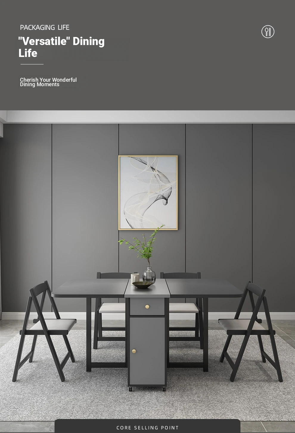 Portable Foldable Dining Table with Wheels - Expandable & Multifunctional Modern Rectangular Design for Space-Saving Convenience