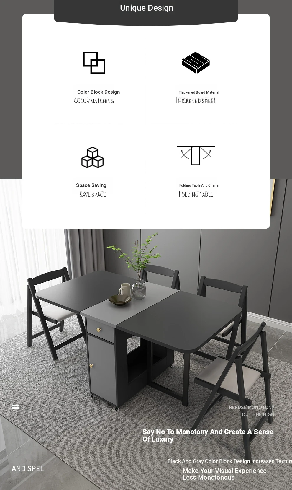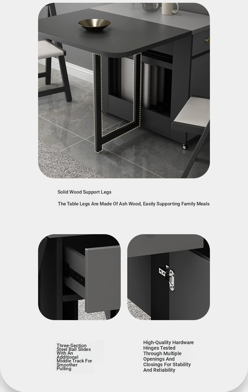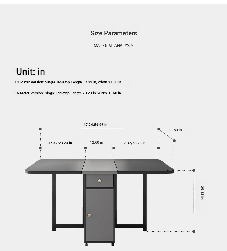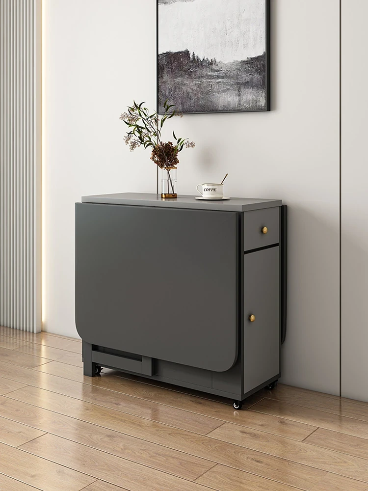 Portable Foldable Dining Table with Wheels - Expandable & Multifunctional Modern Rectangular Design for Space-Saving Convenience