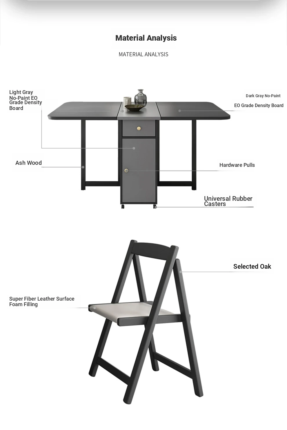 [Gentleman Grey] 47.24 in Folding Table +6 Oak Chairs [No Installation]]