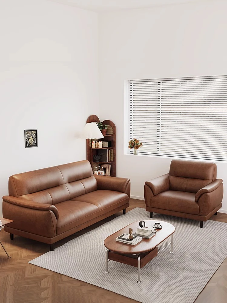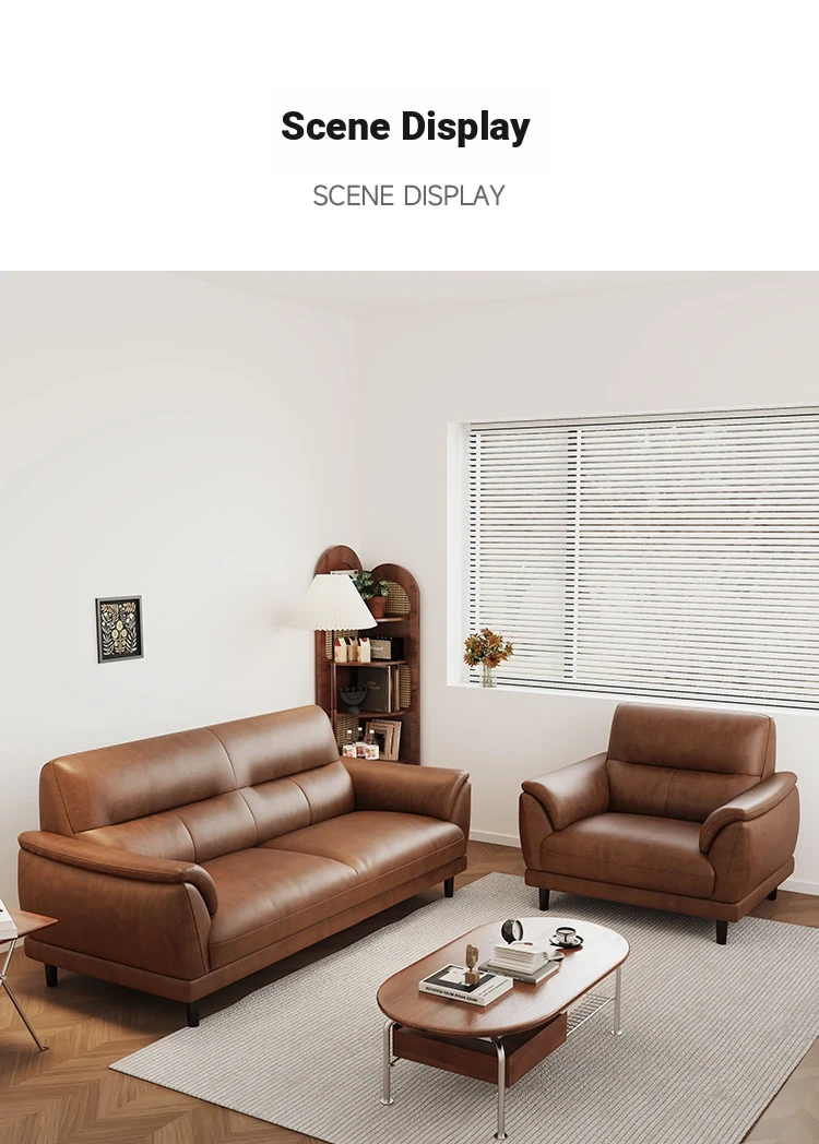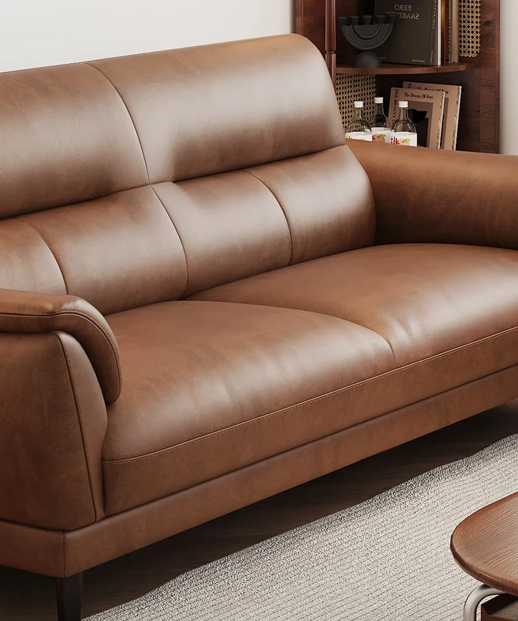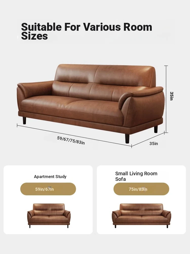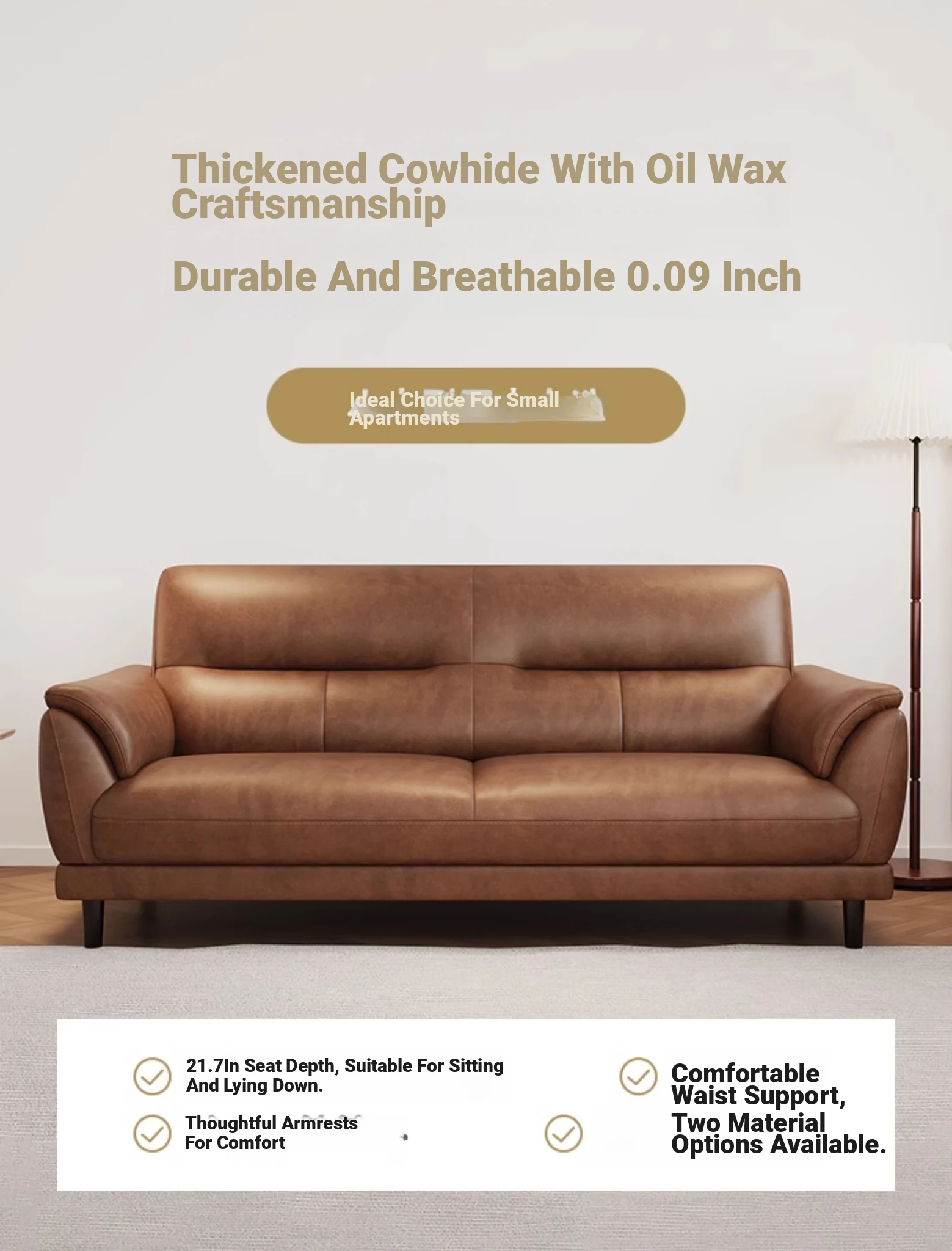 Stylish Dual-Person Leather Sofa for Small Spaces - Luxurious Top-Grain Cowhide Living Room & Study 3-Seater - 2025 New Arrival