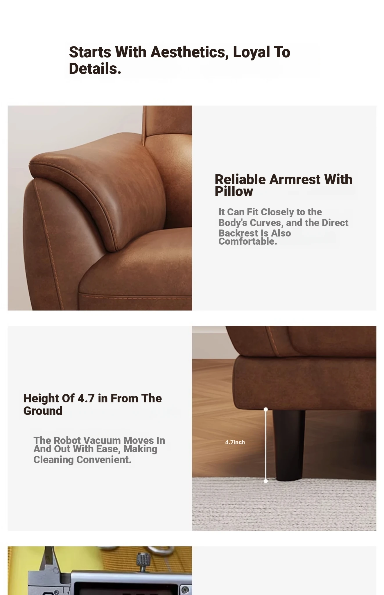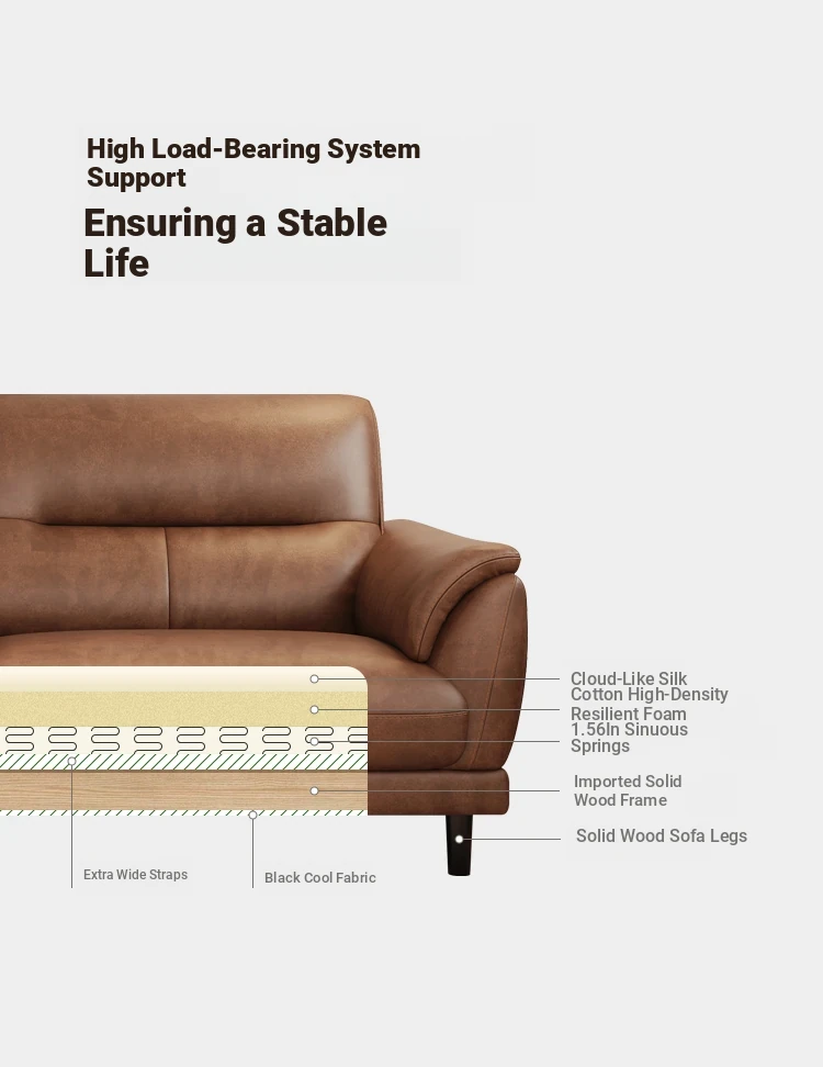 Limited Term - Quality Edition [Eco Cow Leather ≈0.07in] (Three Ranks 74.80in) 45D High Reverse Sponge + Wooden Frame (Coke Sugar)