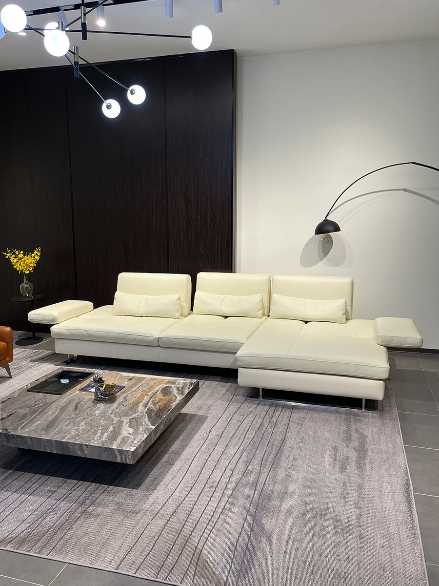ZhiRui Home Genuine Leather Sofa - Italian Minimalist Design with Movable Backrest and Spacious Deep Seat, Crafted from Top-Grade Cowhide - Serina Collection