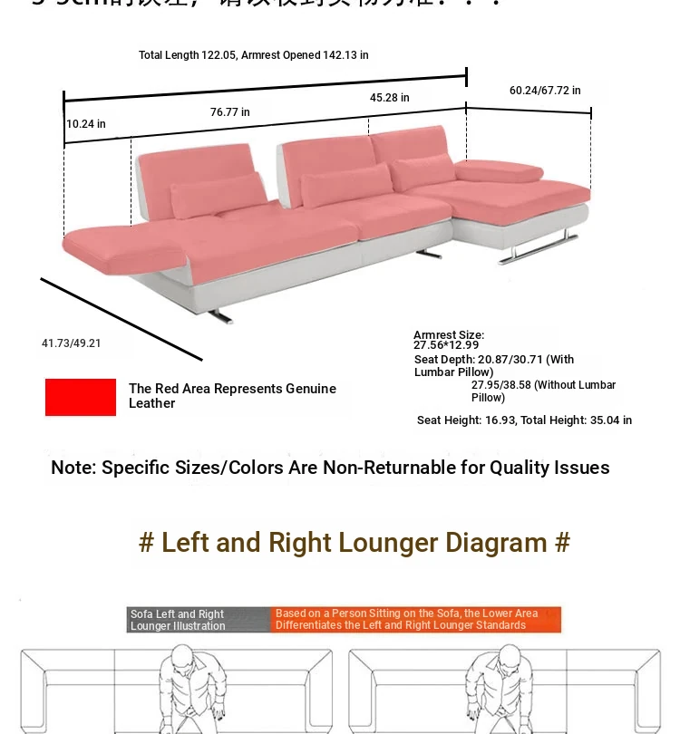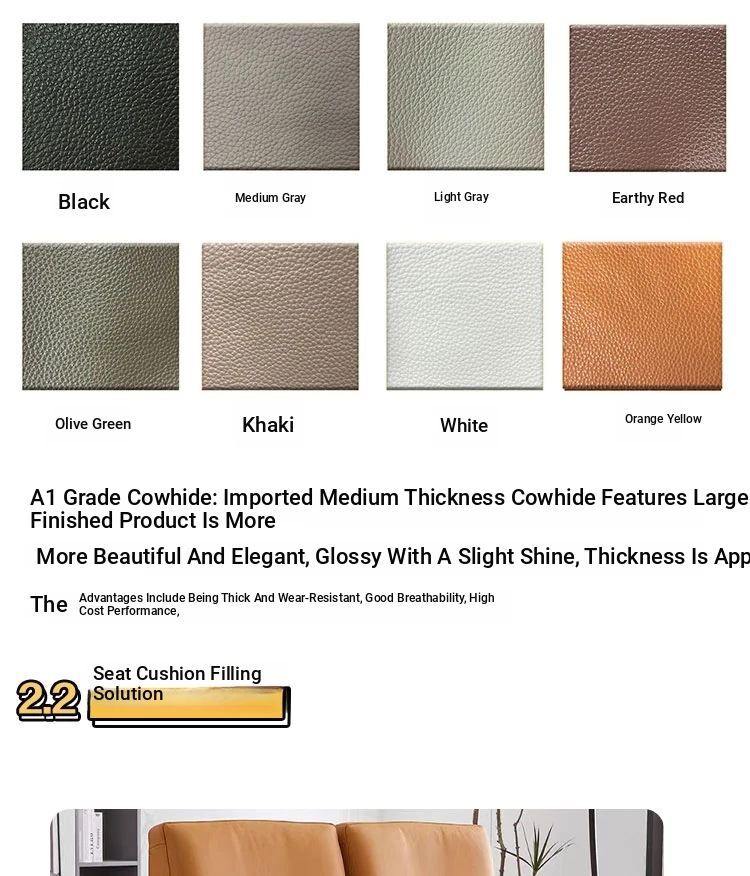 S-Class Medium Thickness Light Pressure Fall 360 Full Leather 0.07in + East Asian High Elastic Sponge + Russian Pine Frame Lifetime Warranty