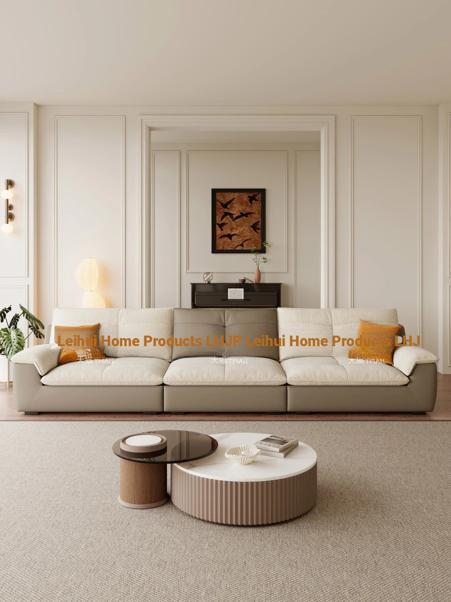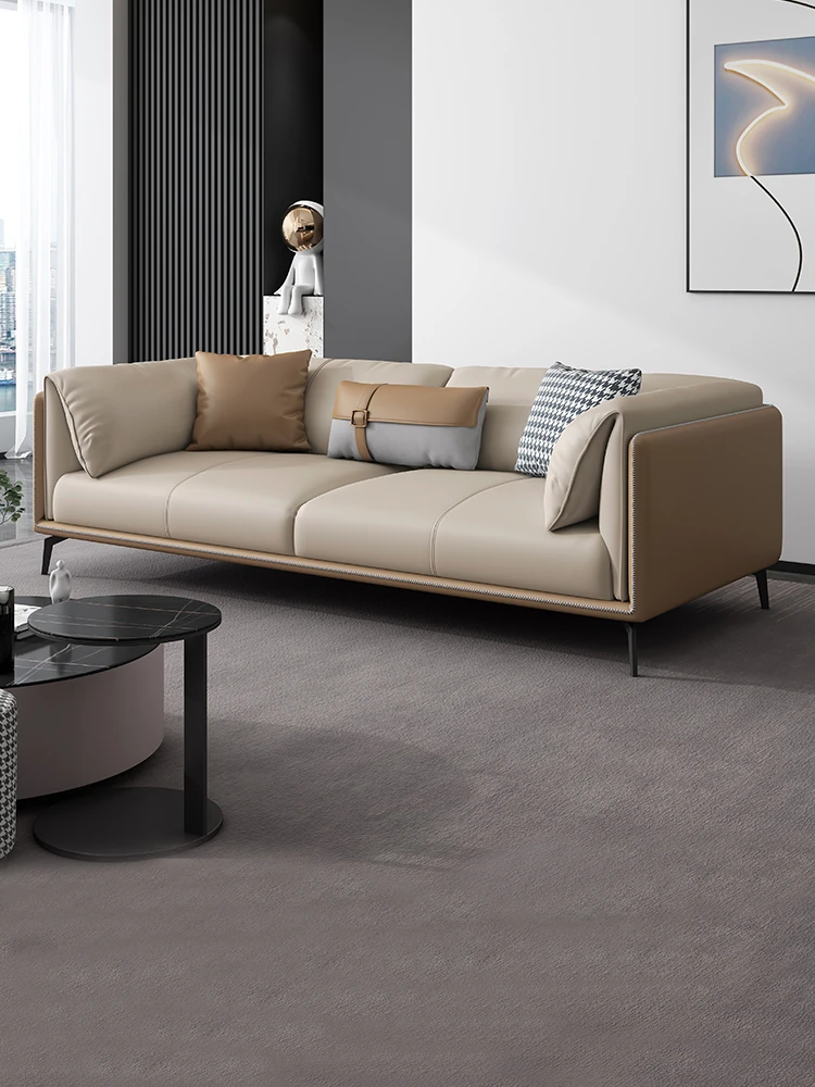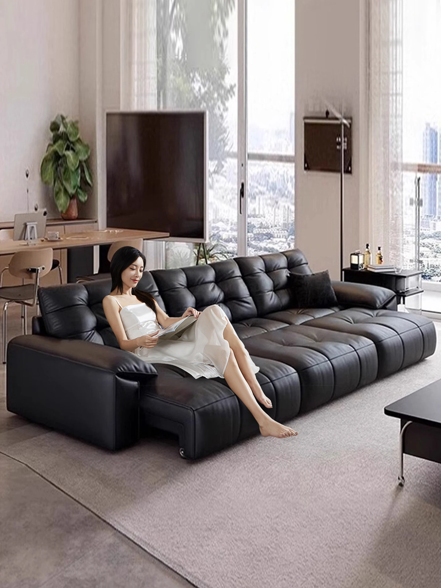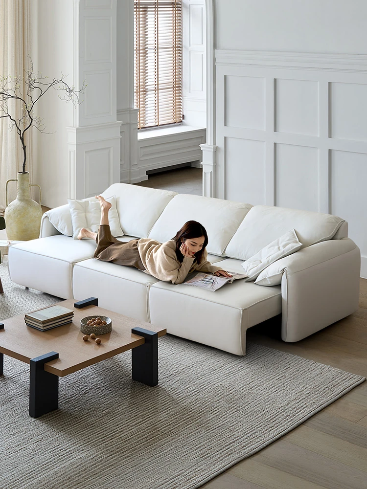 Italian Minimalist Electric Leather Sofa - Moon Goddess Wide Seat Depth Luxurious Living Room Straight Three-Seater Combination