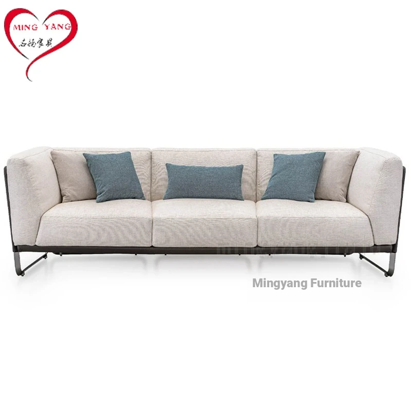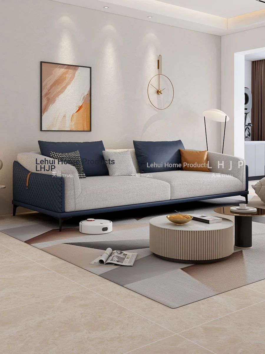New Italian Minimalist Fabric and Leather Three-Seater Sofa with Stainless Steel Frame - Stylish Designer Living Room Sofa Set