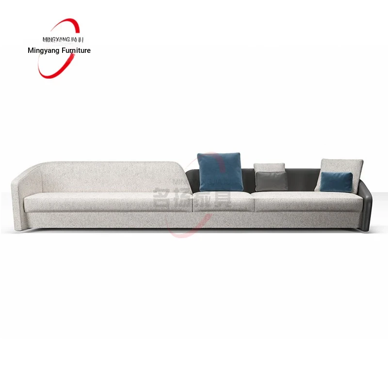 Contemporary Designer Hotel Living Room Sofa - Nordic Minimalist Luxurious Fabric and Leather Corner Sofa for 2-3 People, Perfect for Stylish Spaces
