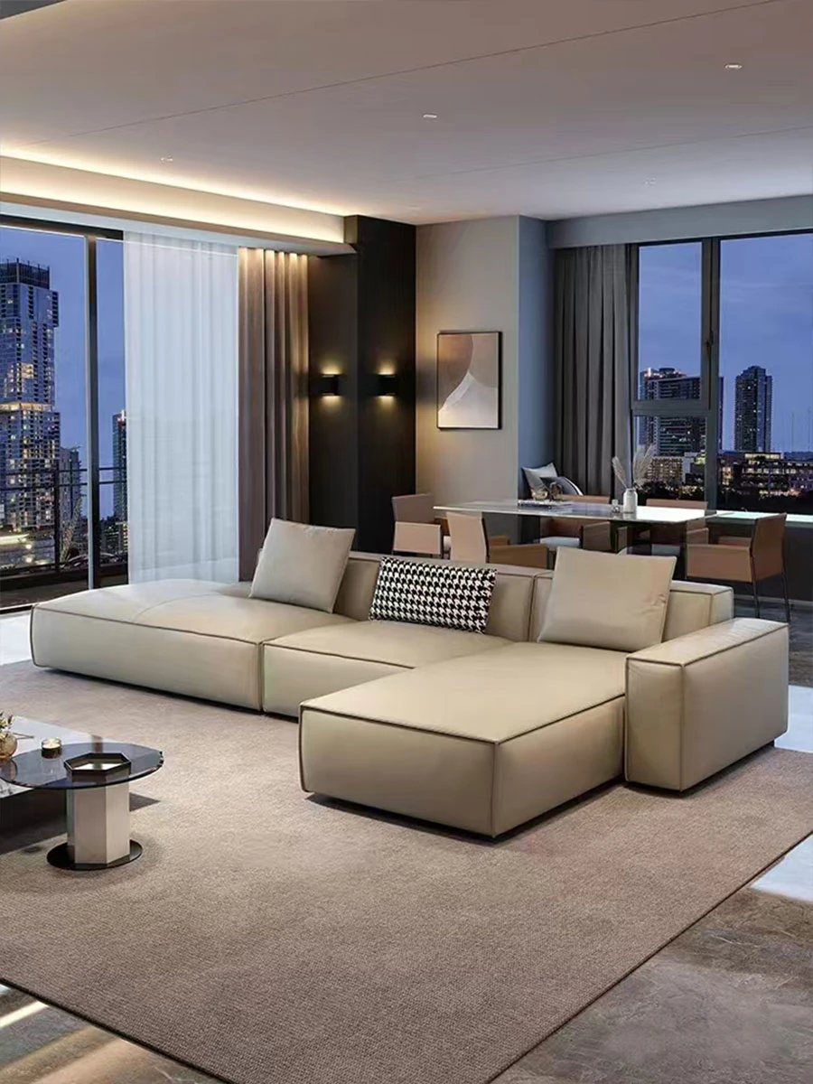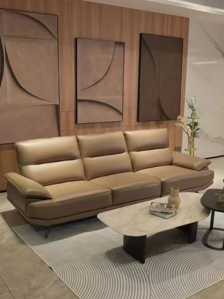 Luxury Genuine Leather Sofa - Italian Minimalist Design with Top-Grade Cowhide, Feather-Soft Cushions for an Elegant Living Room Experience.