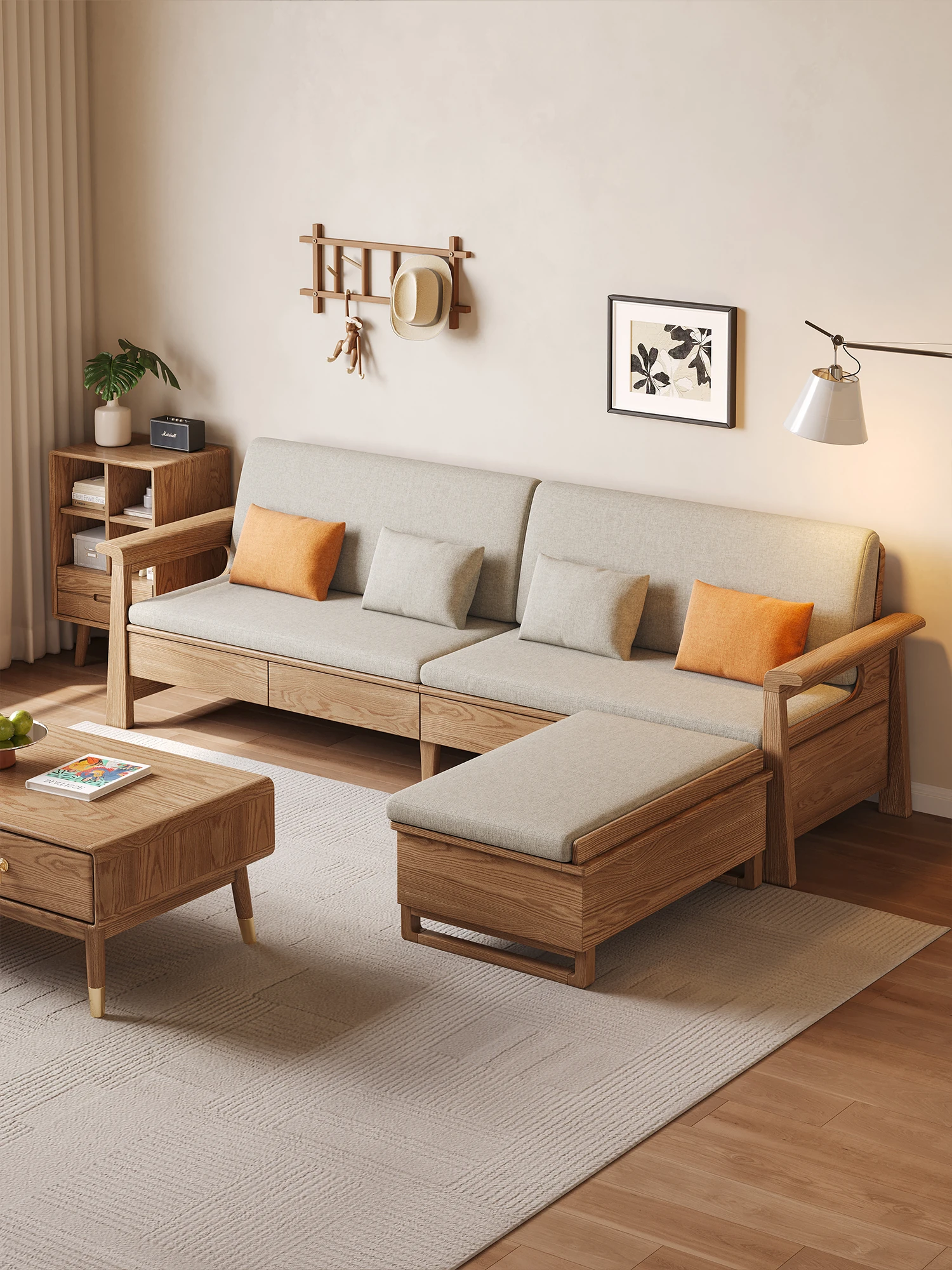 Nordic Solid Wood Sofa - Modern Minimalist Modular Design with Ash Wood, Versatile for All Seasons, Featuring Drawers for Storage - Perfect for Small and Medium Spaces