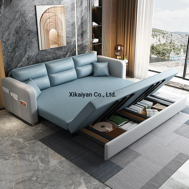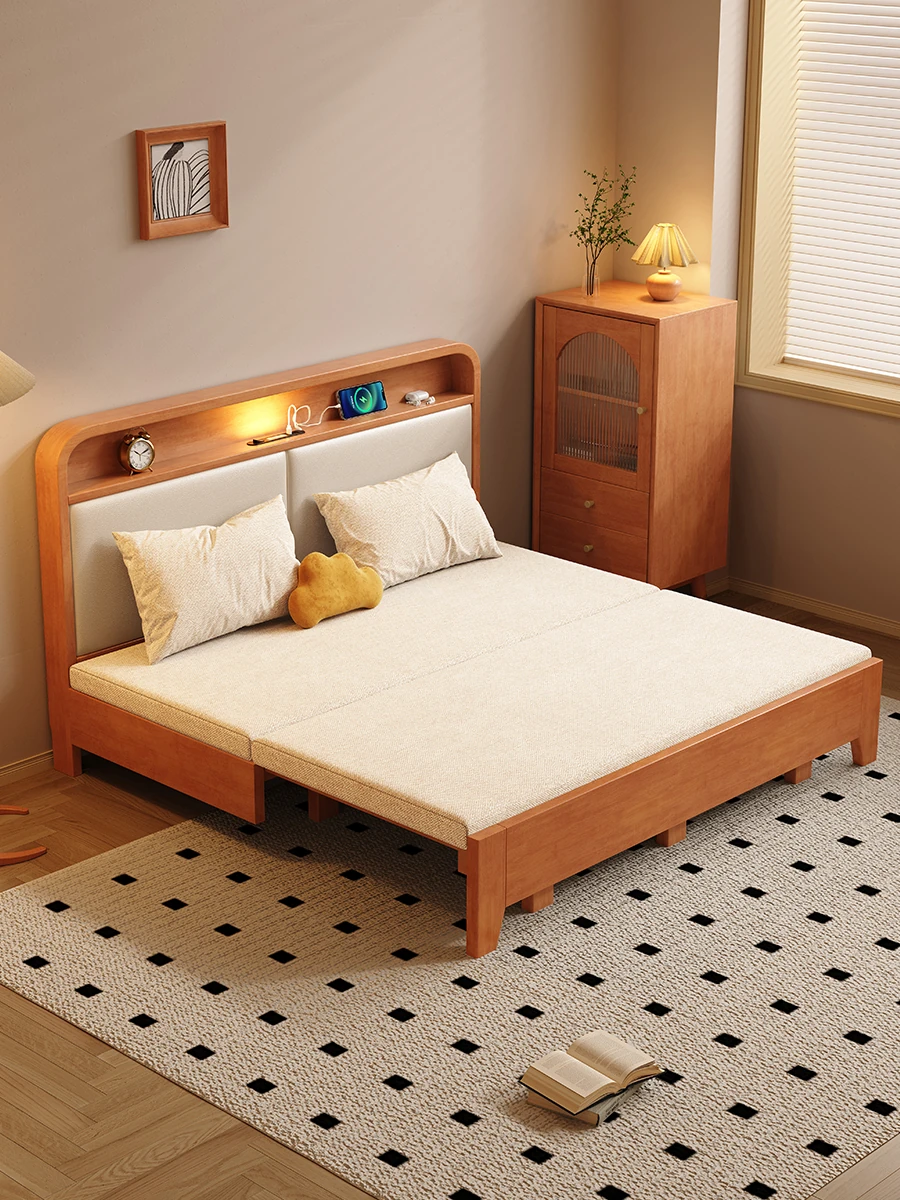 Compact Full Solid Wood Sofa Bed: 1.5m Width Multifunctional Pull-Out and Expandable Sofa Bed, Space-Saving Foldable Design for Small Living Rooms