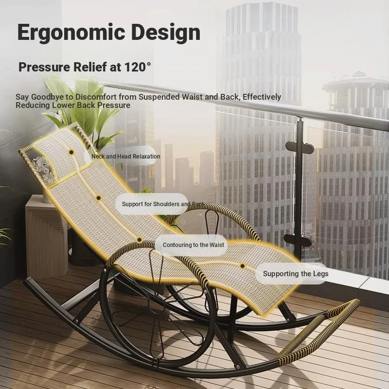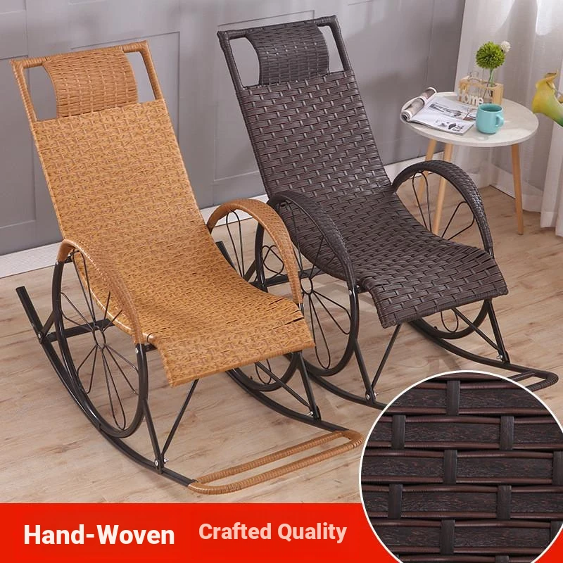 Cozy Balcony Recliner Chair - Perfect for Home Relaxation, Lazy Lounging, and Afternoon Naps. Ideal for Adults and Seniors, This Stylish Rattan Rocking Chair Offers Ultimate Comfort for Your Living Room.