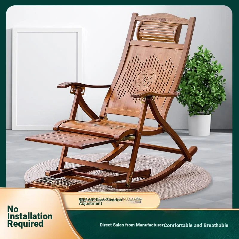 Foldable Bamboo Rocking Chair for Home Use - Perfect for Elderly Naps and Relaxation on the Balcony, Made with Rattan and Solid Wood for Lazy Comfort