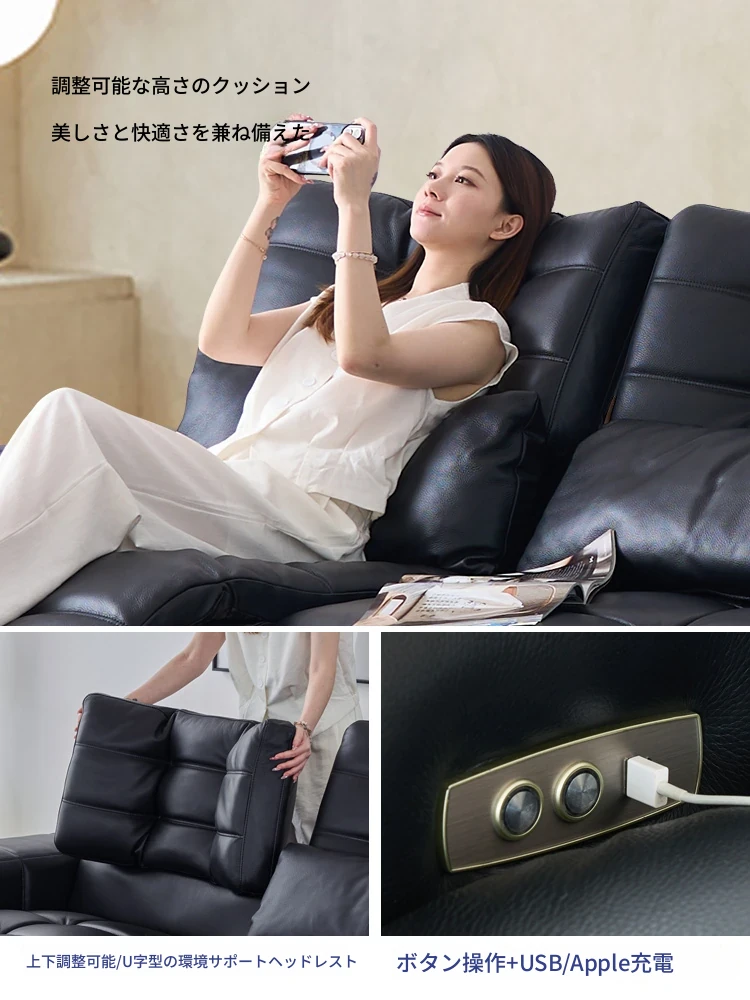 素学家の電動調節可能なローレンス本革ソファ - 2025年新モデル、広東省仏山市の高級ソファ。快適さとスタイルを兼ね備えた贅沢なリビング空間を演出します!