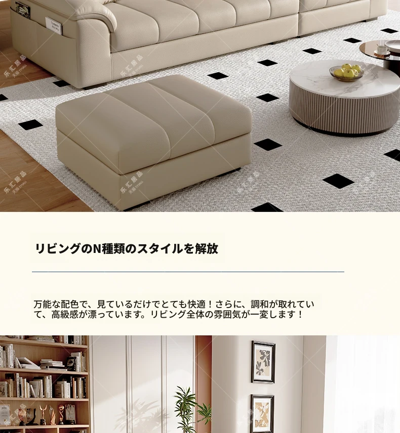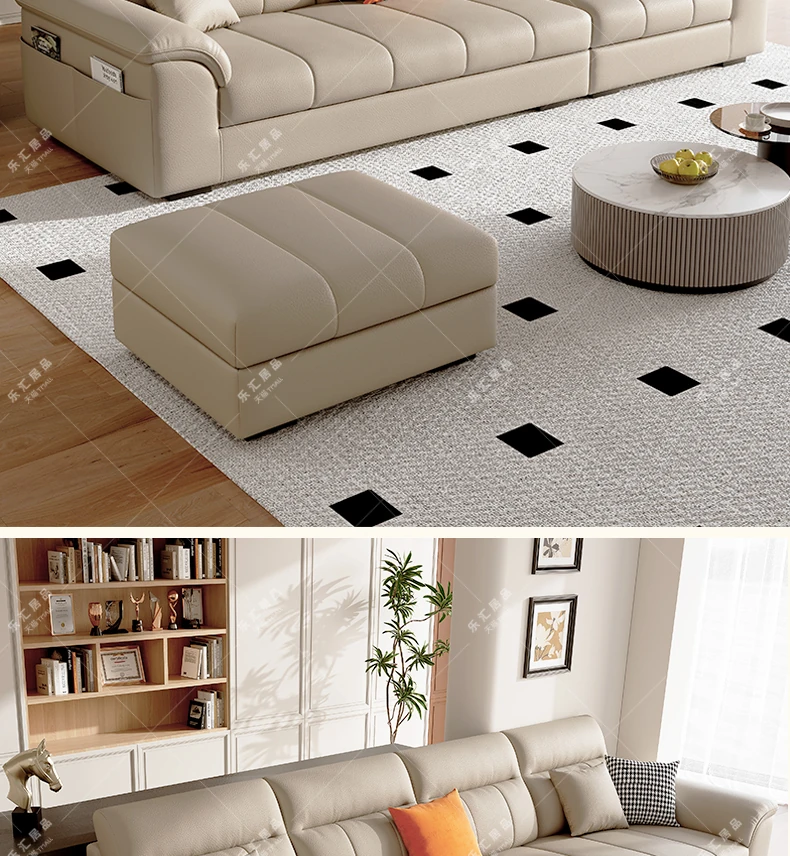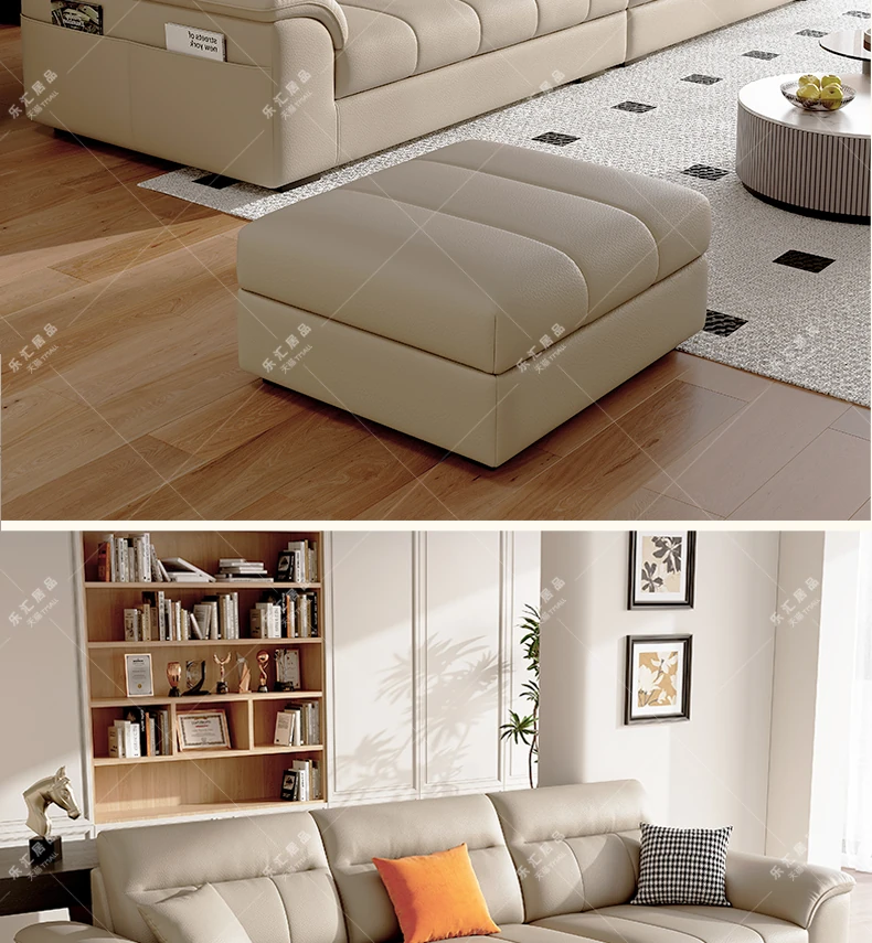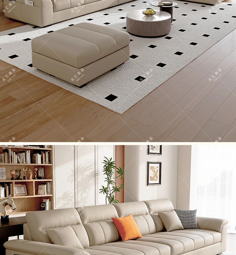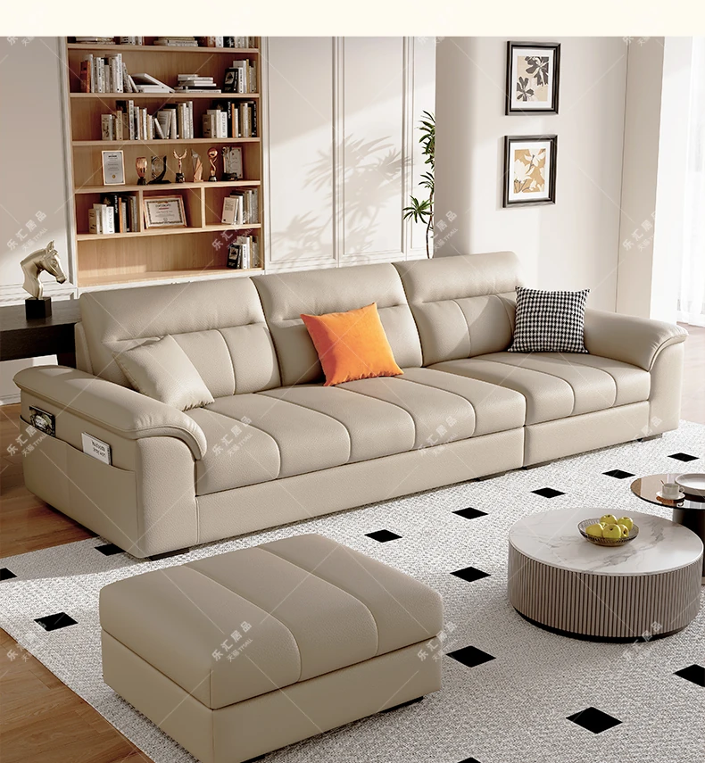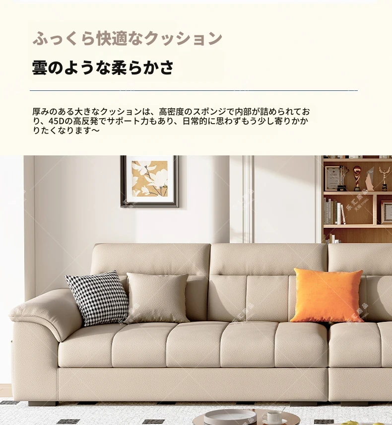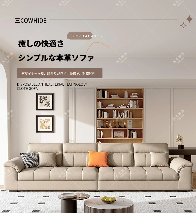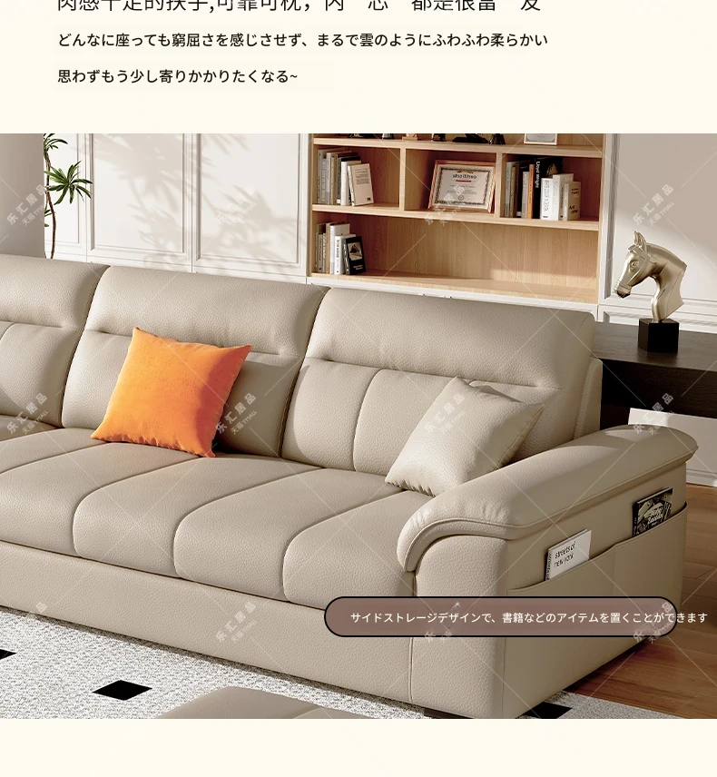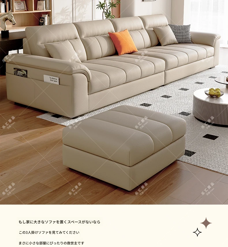 2025年新作!クリーム風味の一層牛革ソファー - モダンでシンプルなデザイン、小型リビングに最適!広々とした快適さを提供し、あなたの空間を美しく演出します。広東省仏山から直送!