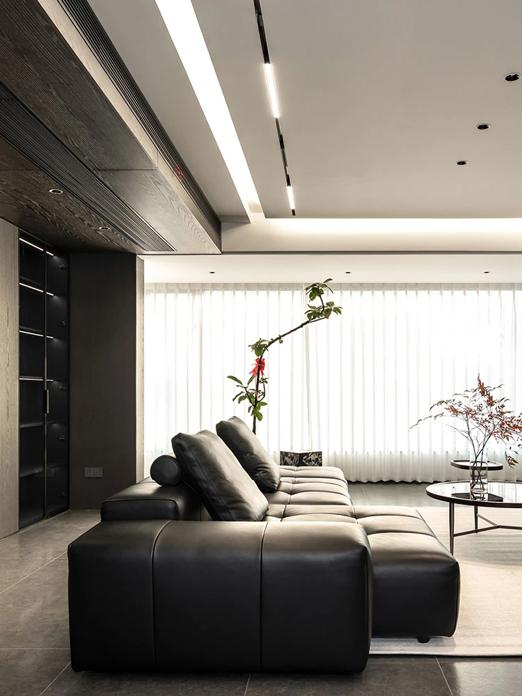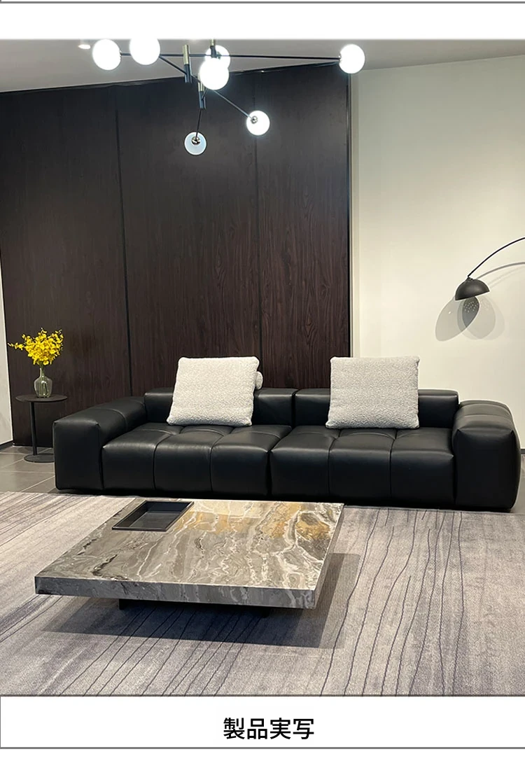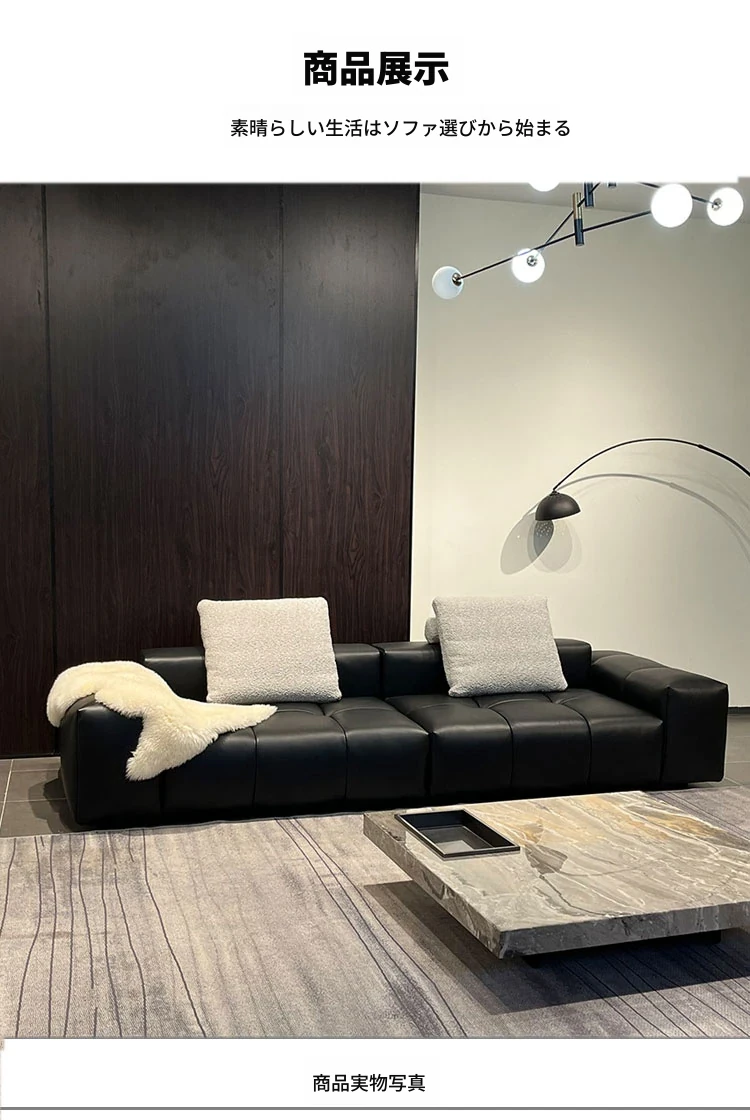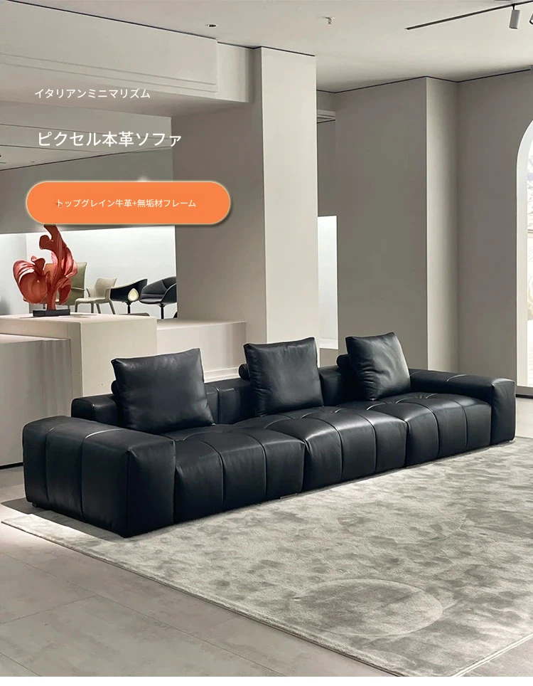 2025年新作!サバピクセルソファ - イタリアンミニマリズムデザインの高級モジュラーモデル。ブラックの本革仕立てで、洗練されたリビング空間を演出します。あなたのスタイルを格上げする一品!